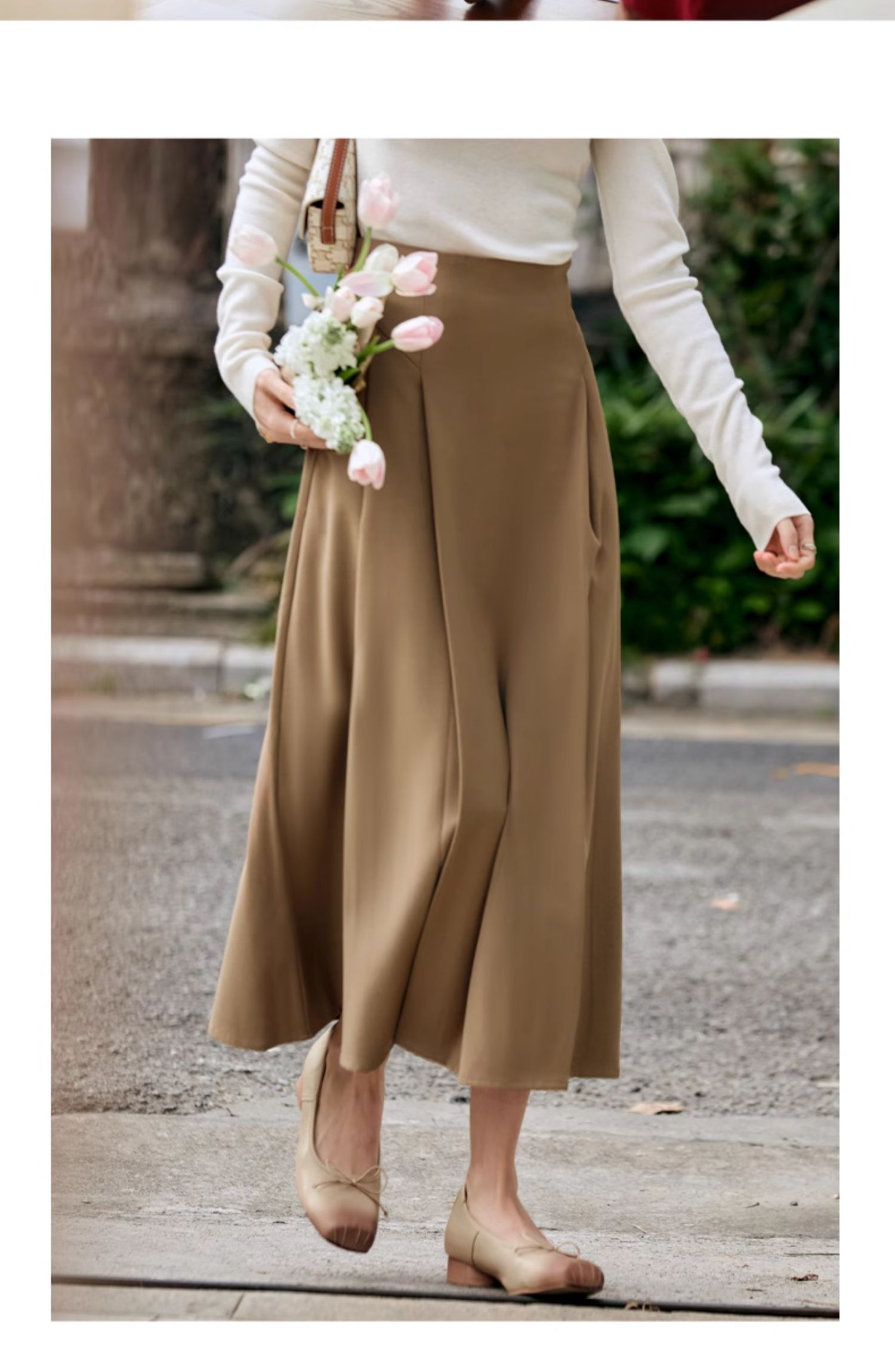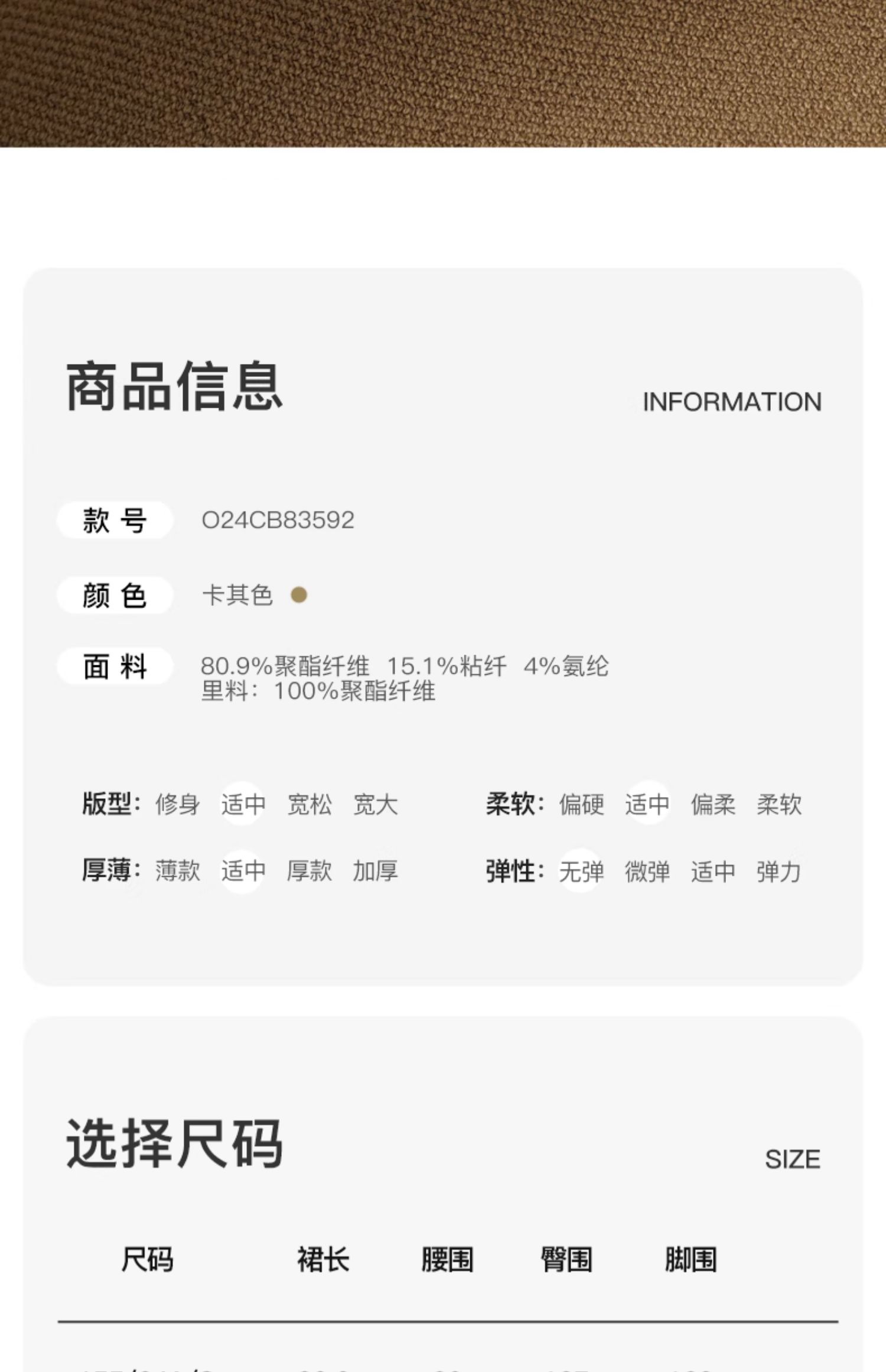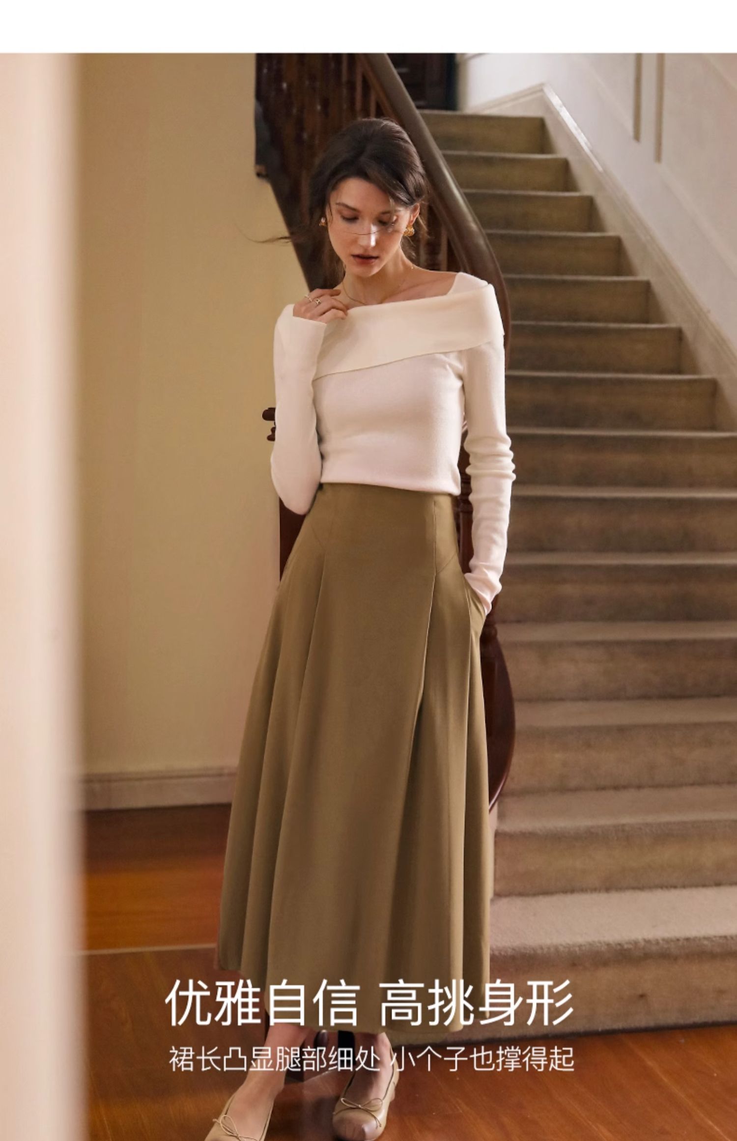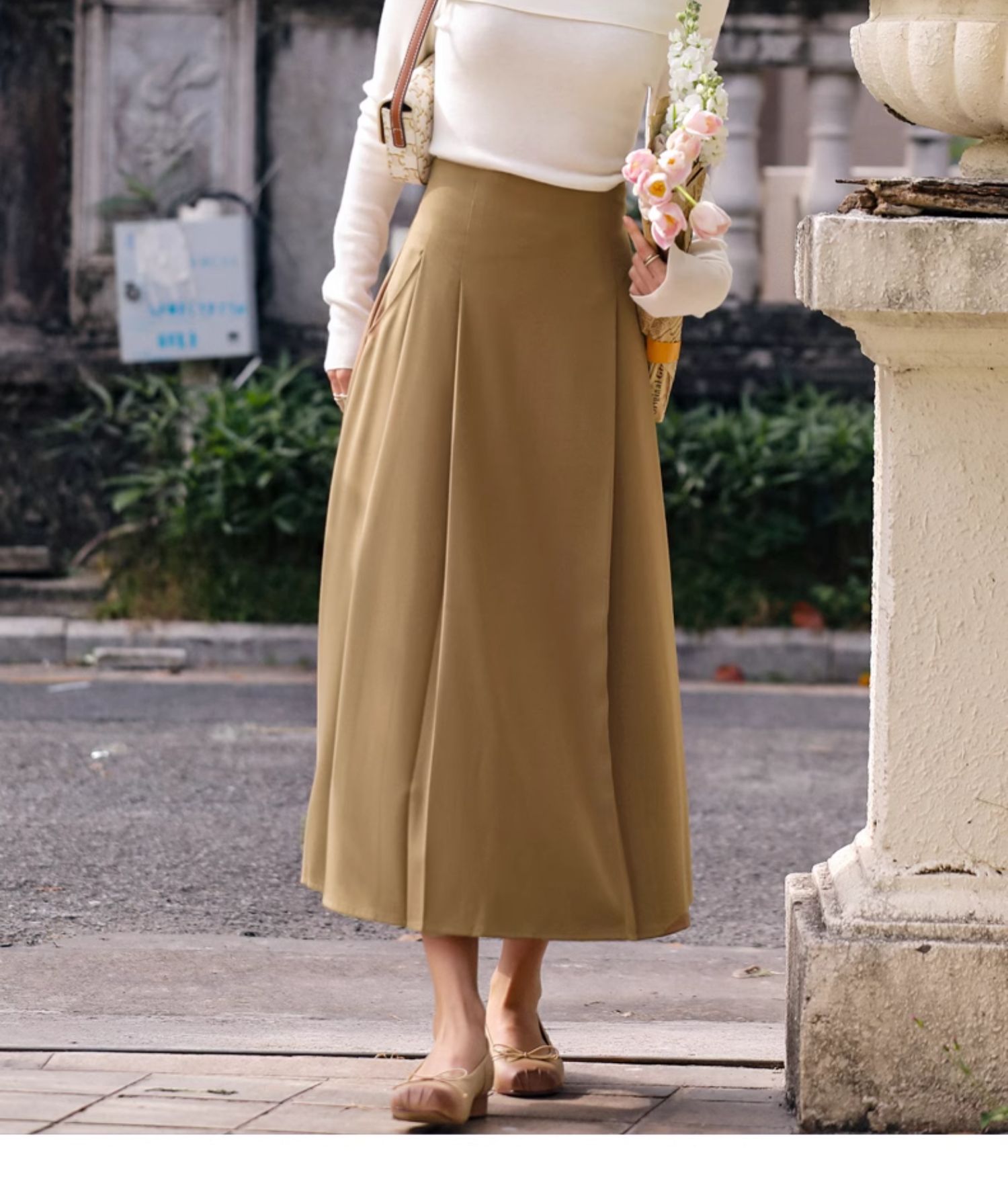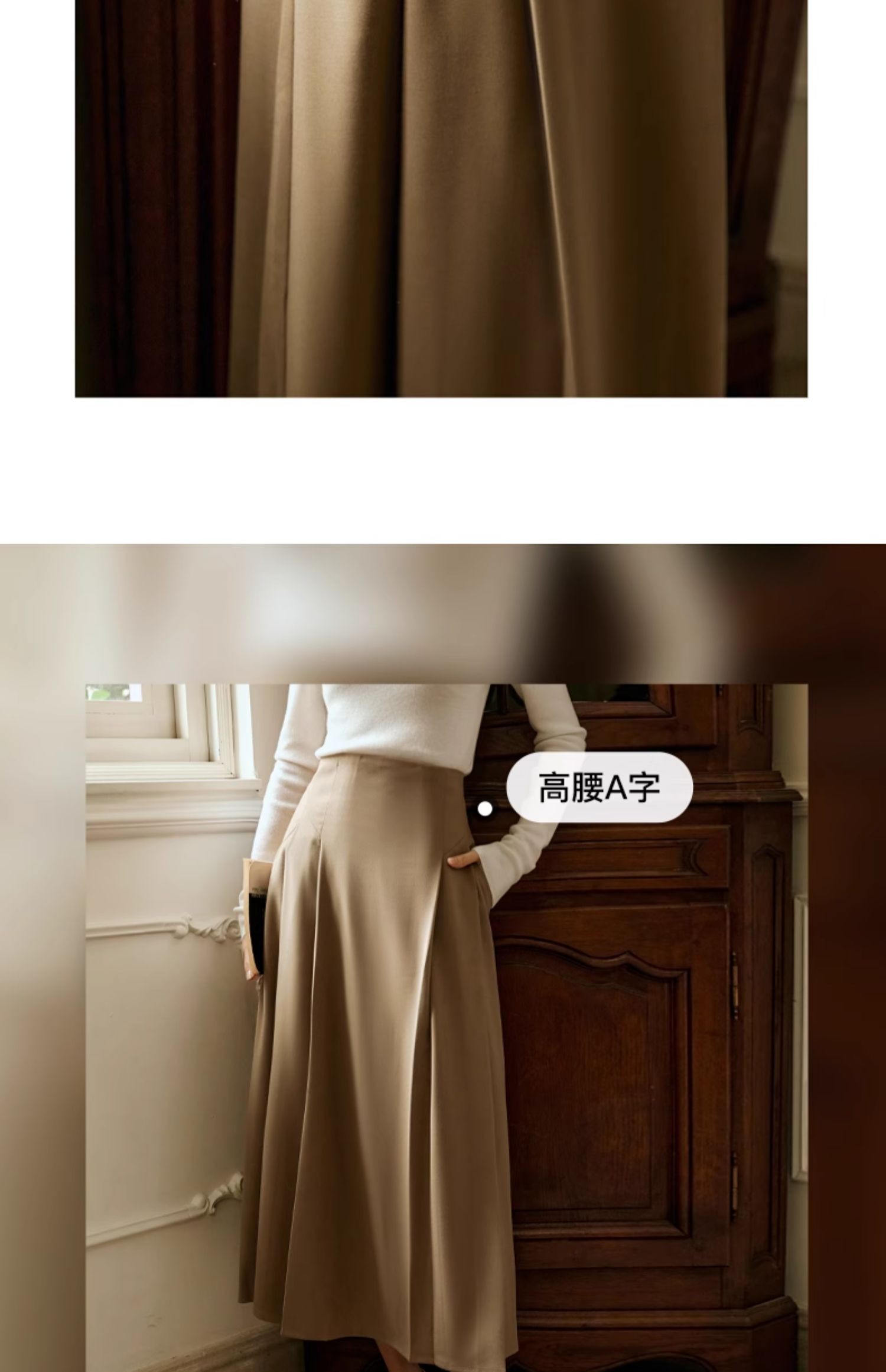 OLrain欧芮儿卡其色半身裙女春季2024年新款气质优雅通勤马面裙