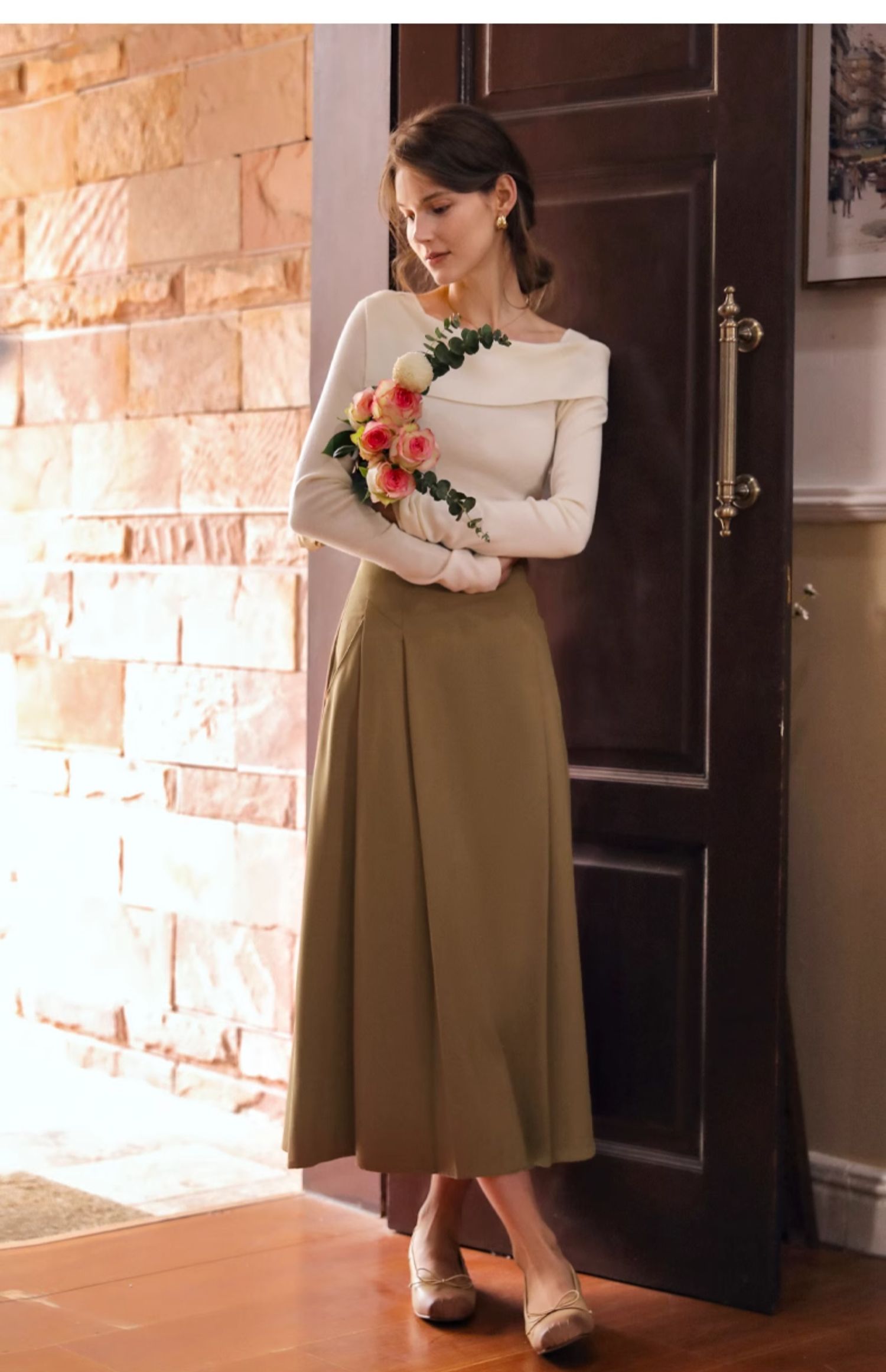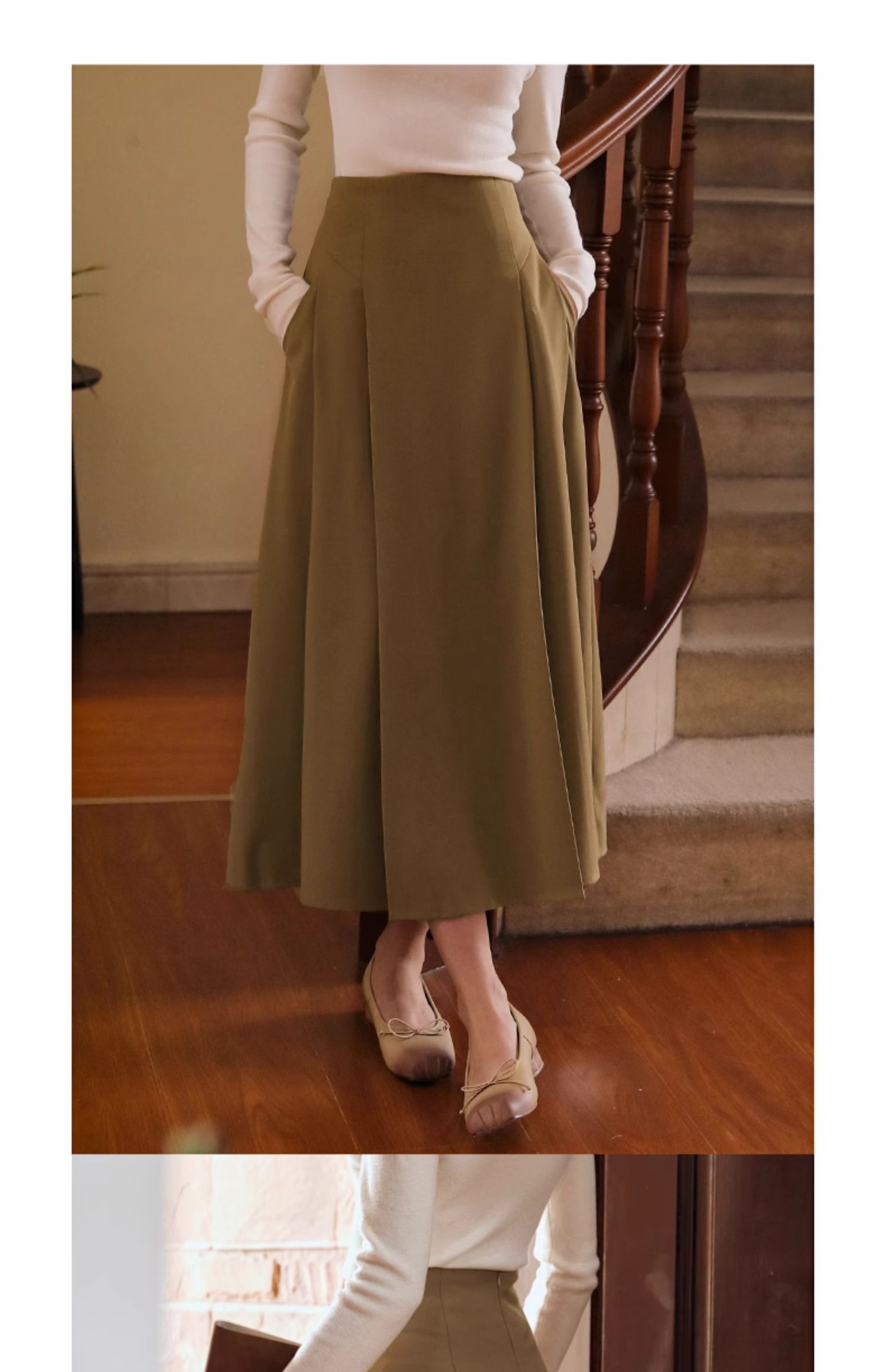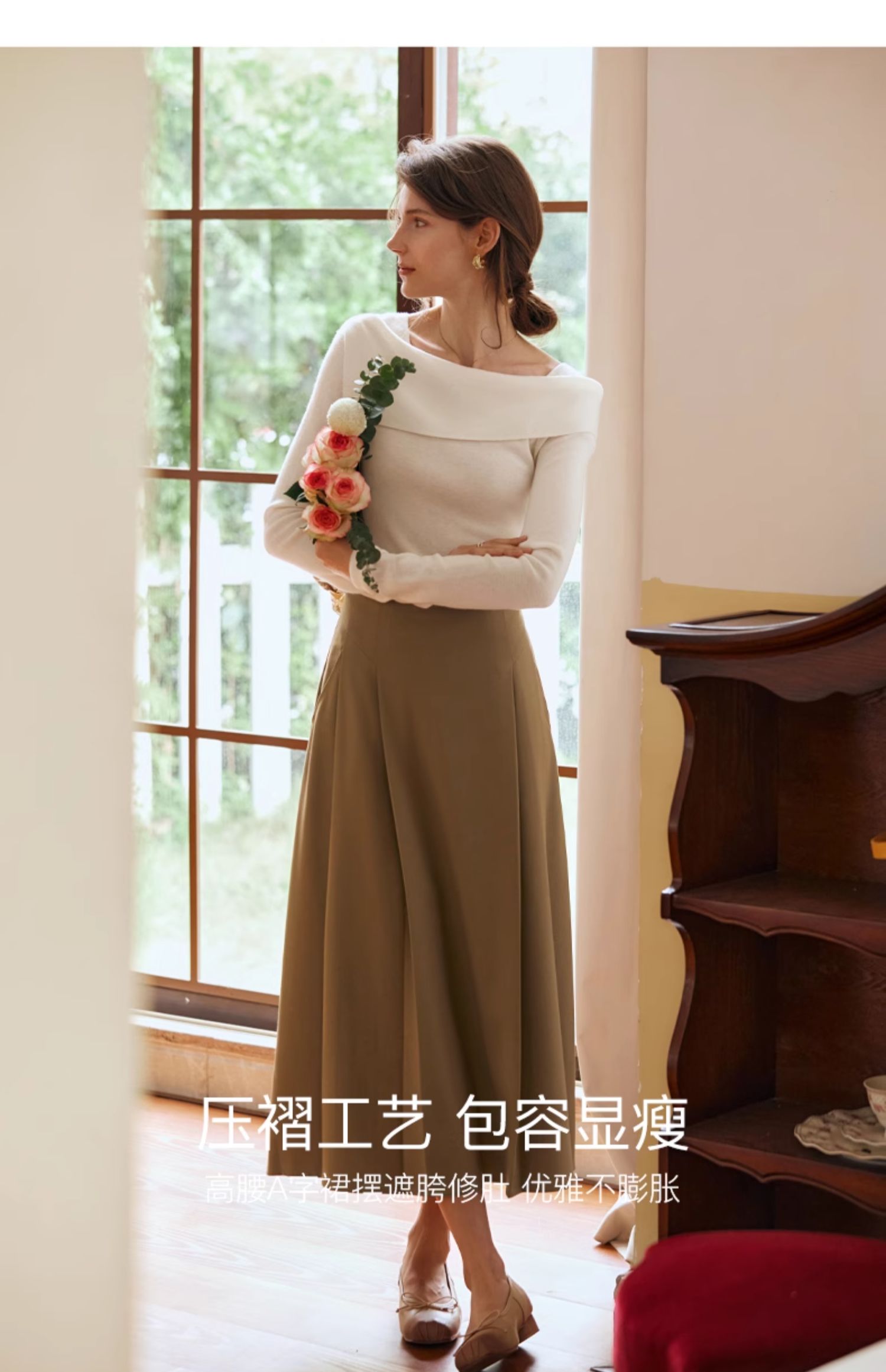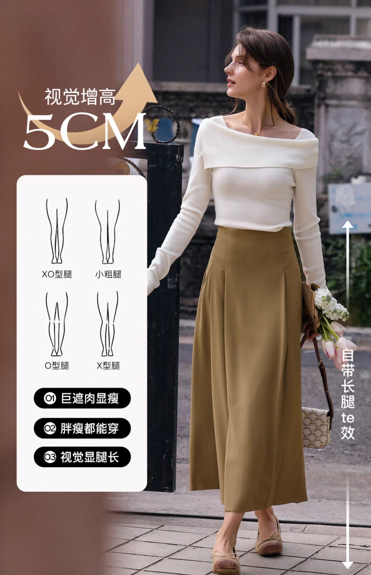 OLrain欧芮儿卡其色半身裙女春季2024年新款气质优雅通勤马面裙