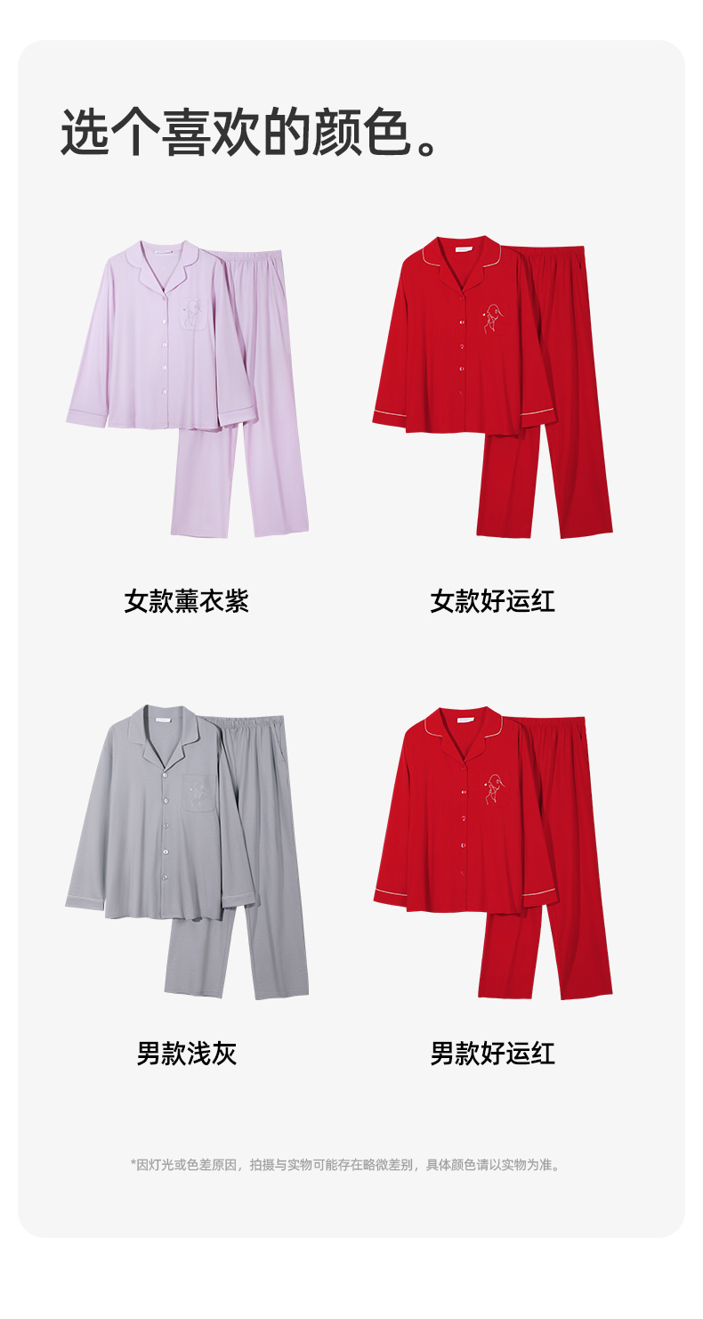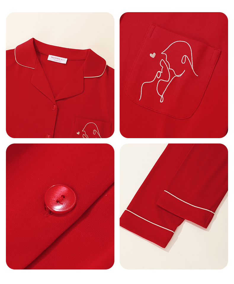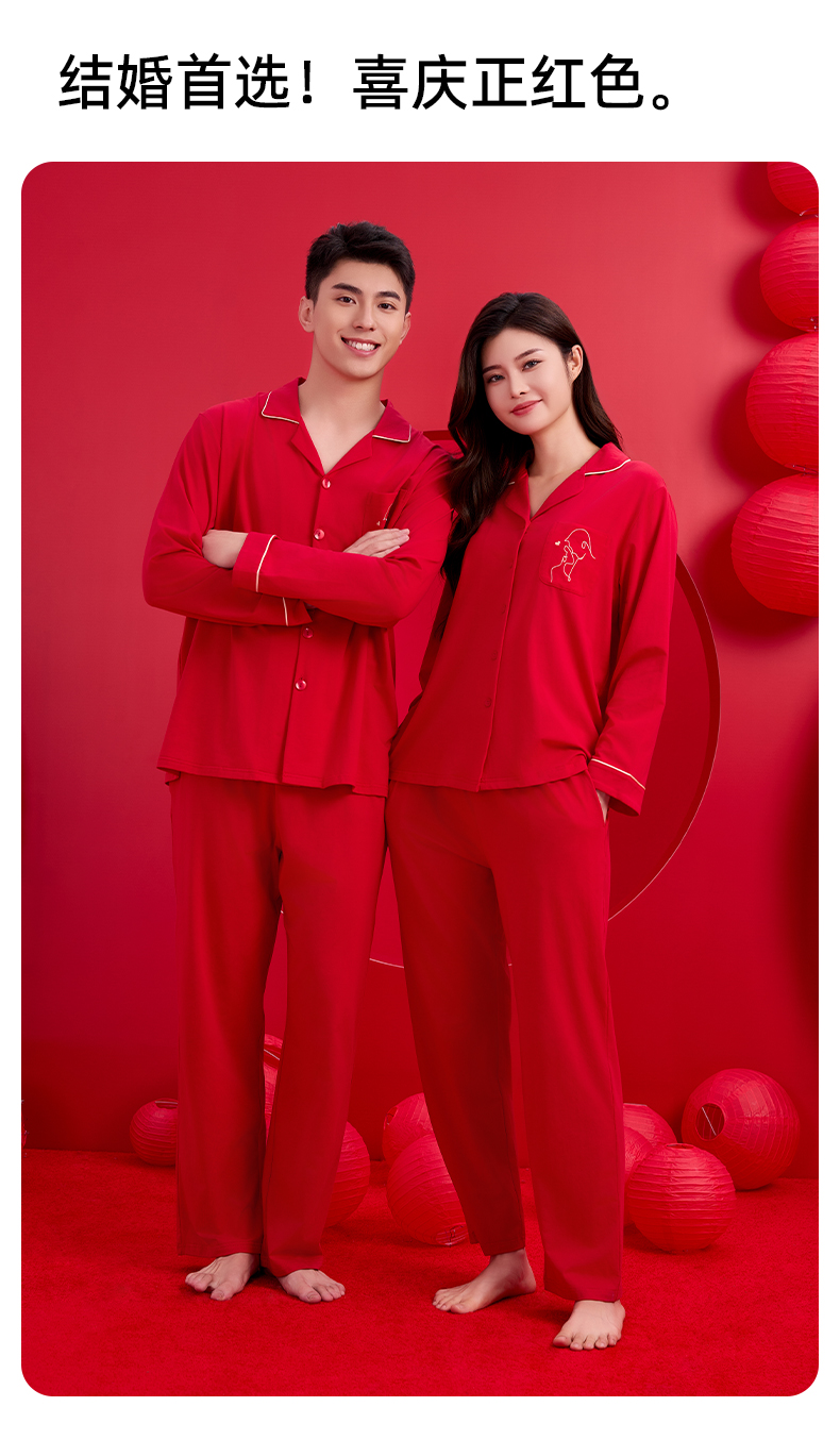【商场同款】熳洁儿 结婚红品情侣家居服喜庆红开衫长袖长裤套装舒适莫棉24703209/24703909