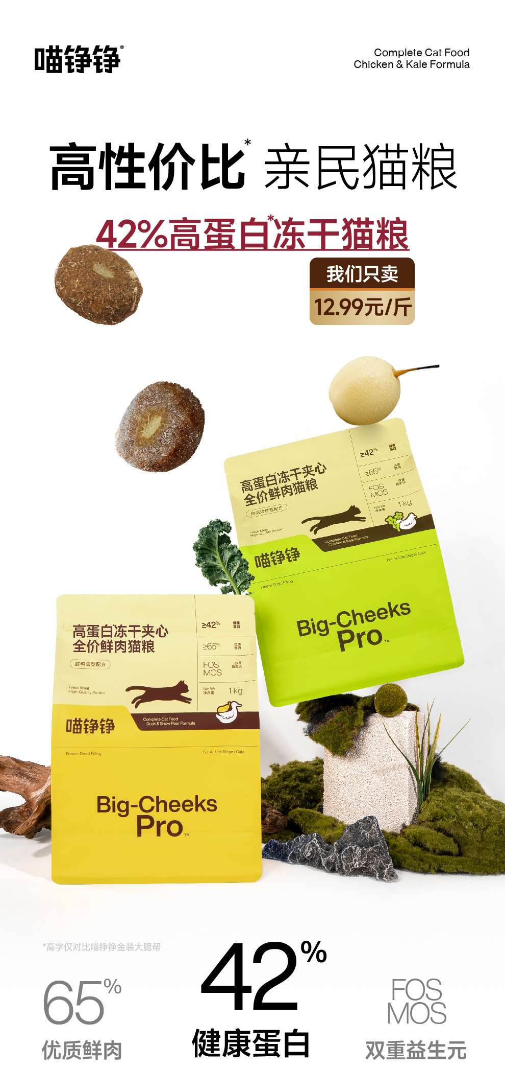 【首发】喵铮铮高蛋白冻干夹心全价鲜肉猫粮成猫幼猫益生元亲民猫粮