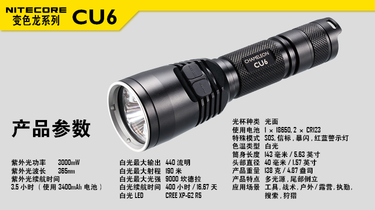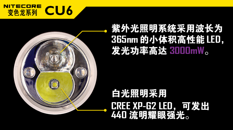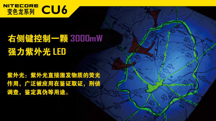 NITECORE奈特科尔CU6紫外光手电筒3000mW