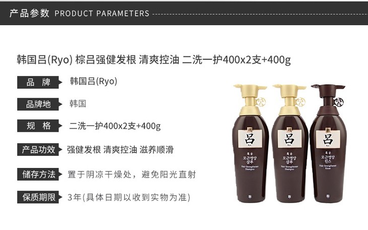 RYOE/吕 棕吕含光耀护损伤修护 洗发水 400ML*2 + 护发素 400ML 组合装保税JPY带授权招加盟代理