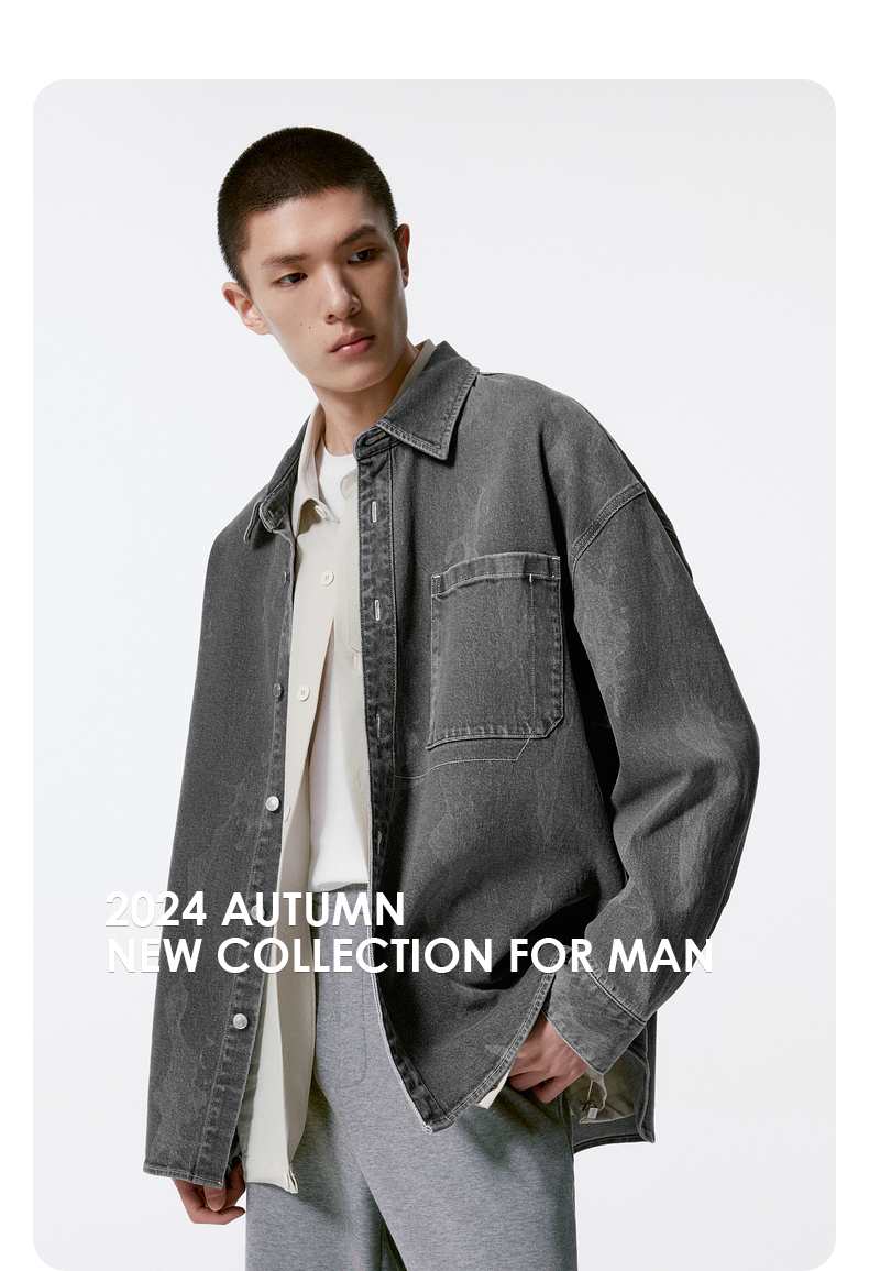 GXG男装 花色时尚年轻牛仔衬衫外套男士24年秋季热卖G24XE93003