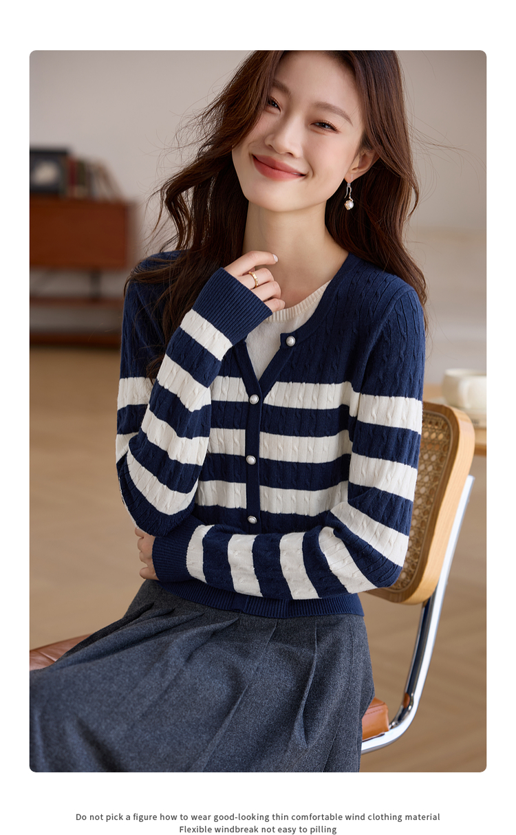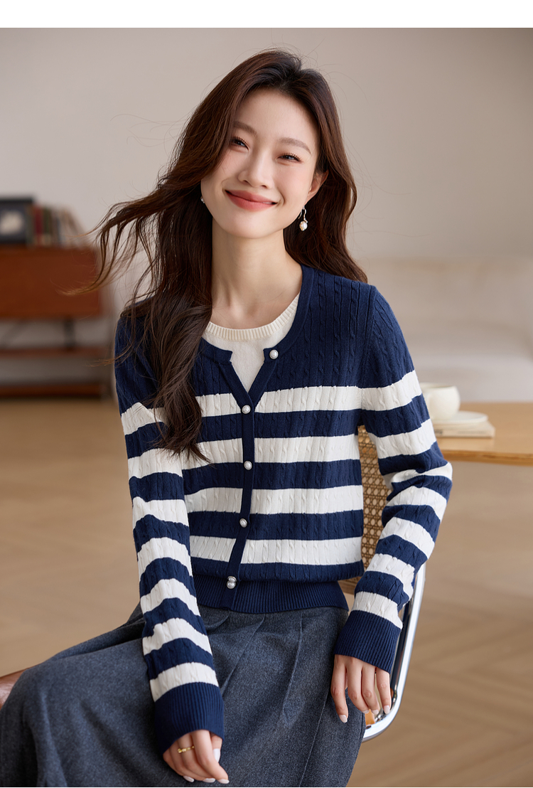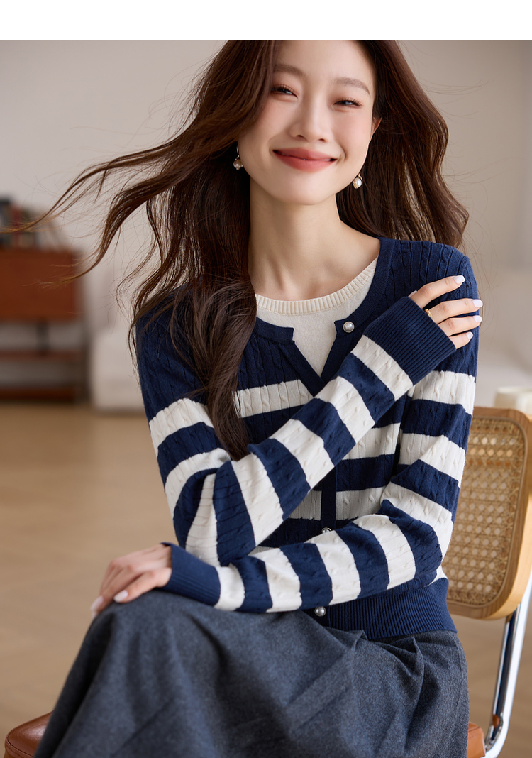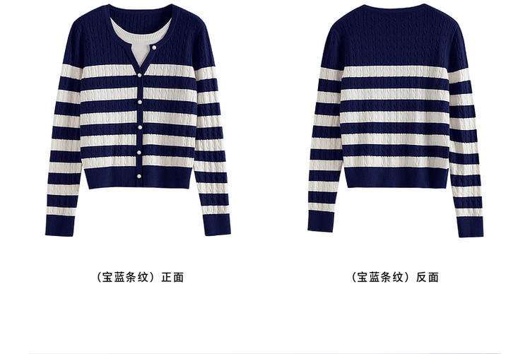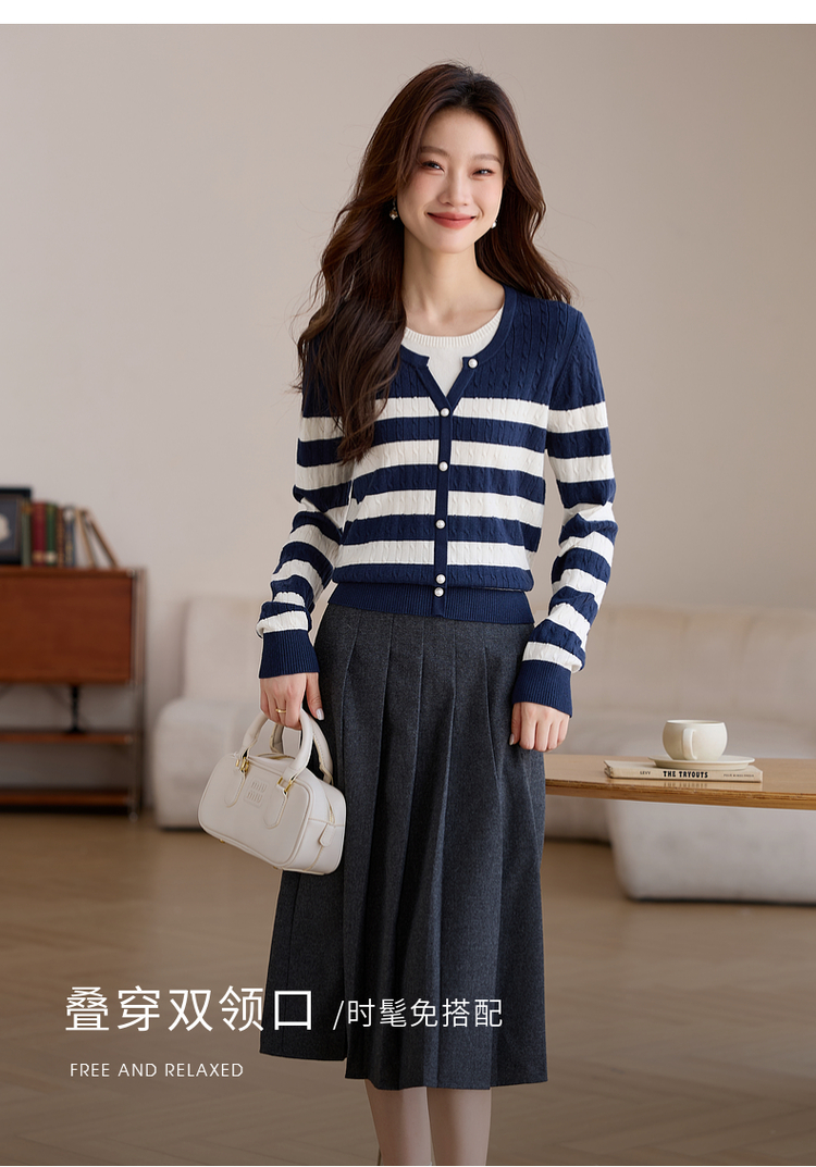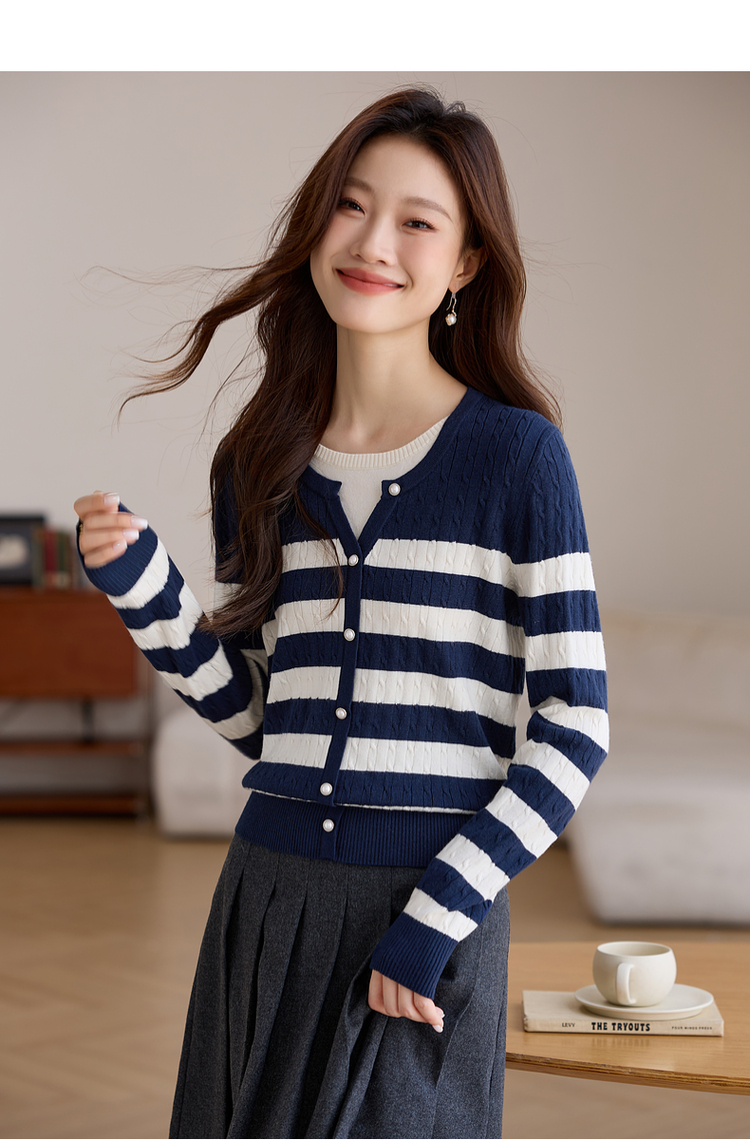 【69元福袋,不支持退换】熙世界2025秋冬款女装高级感气质长袖撞色条纹假两件针织衫毛衣