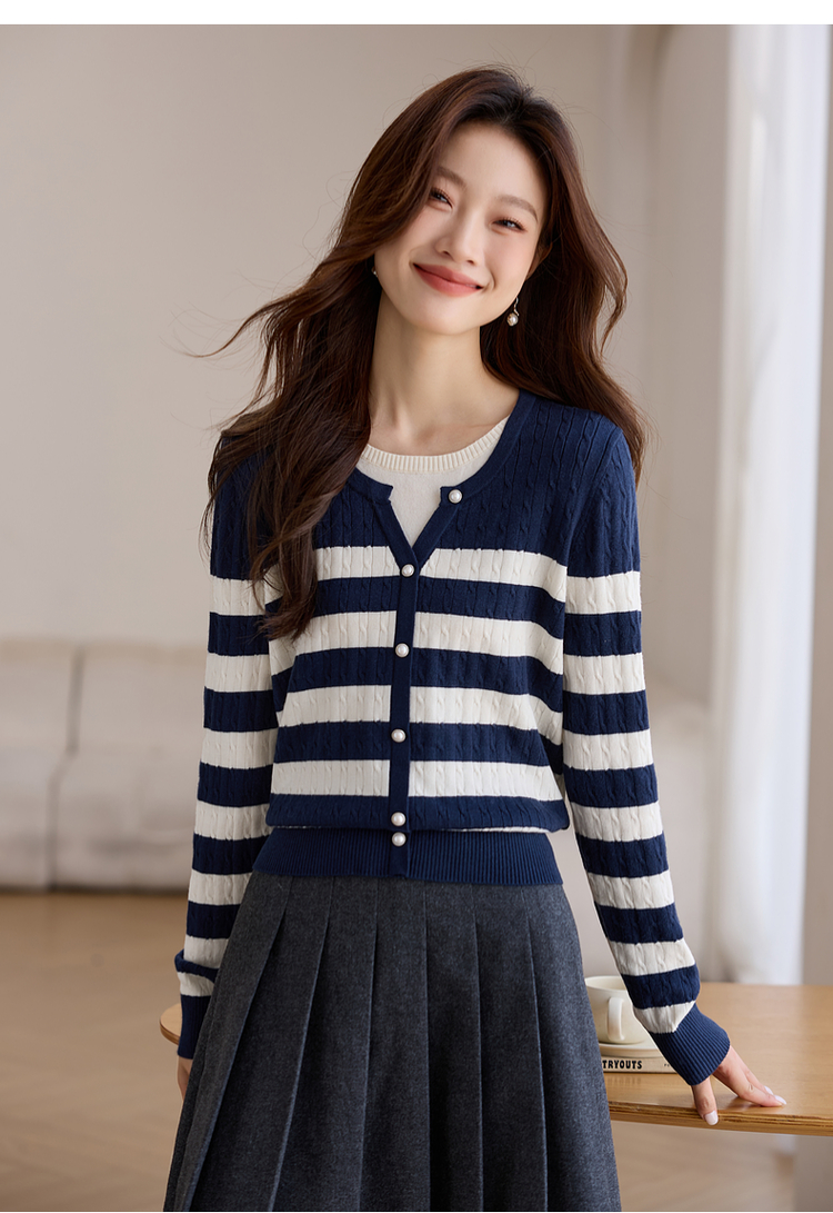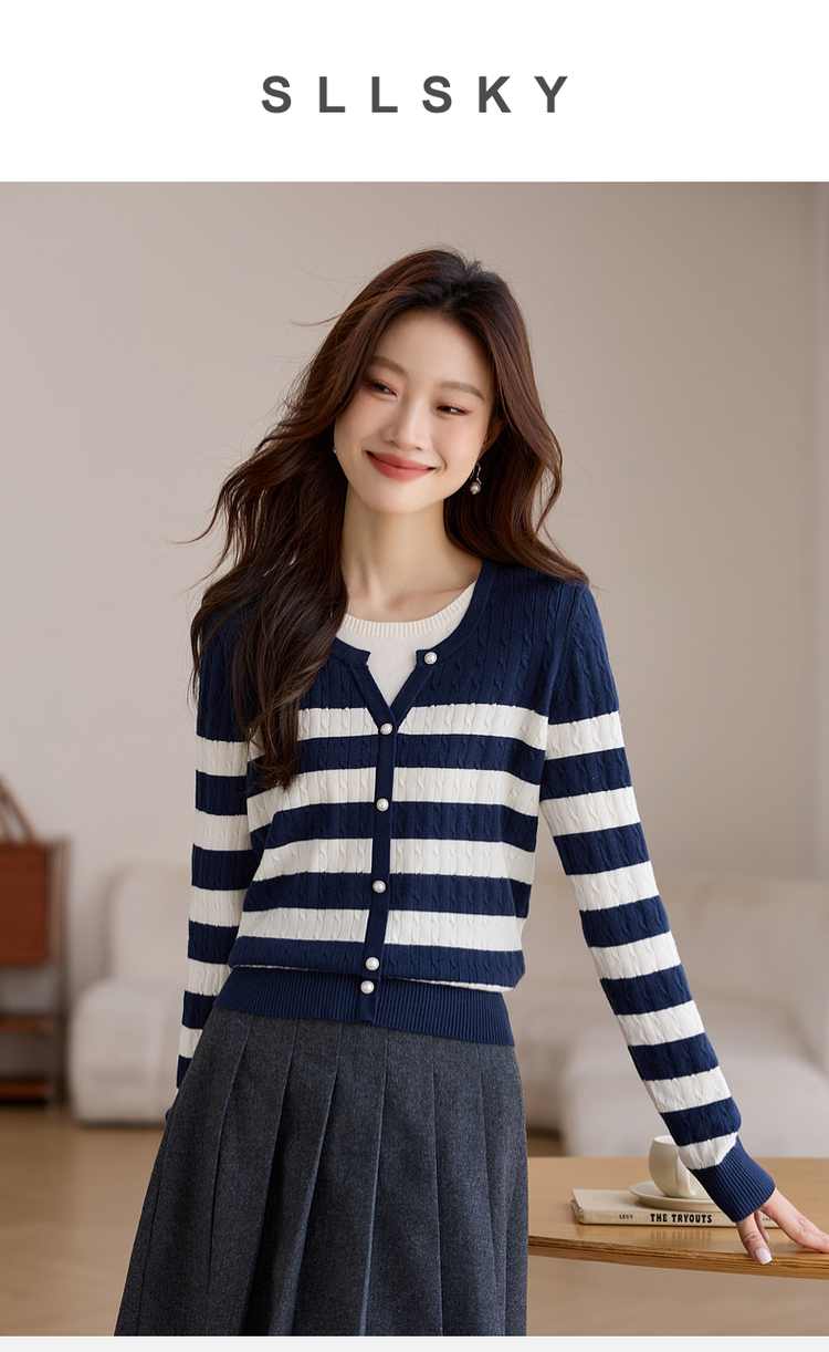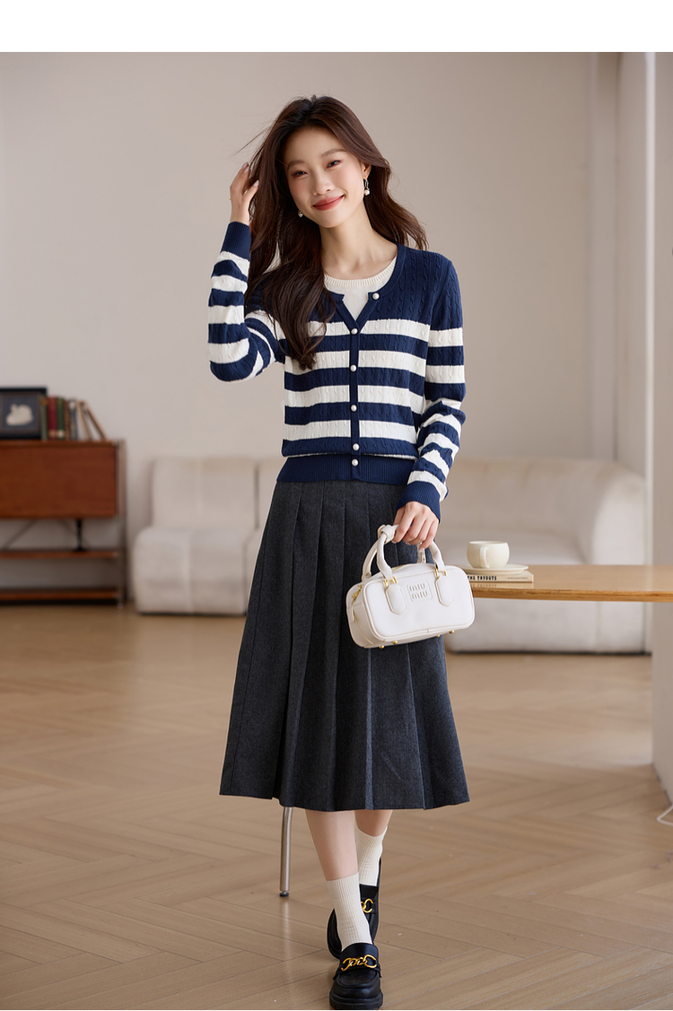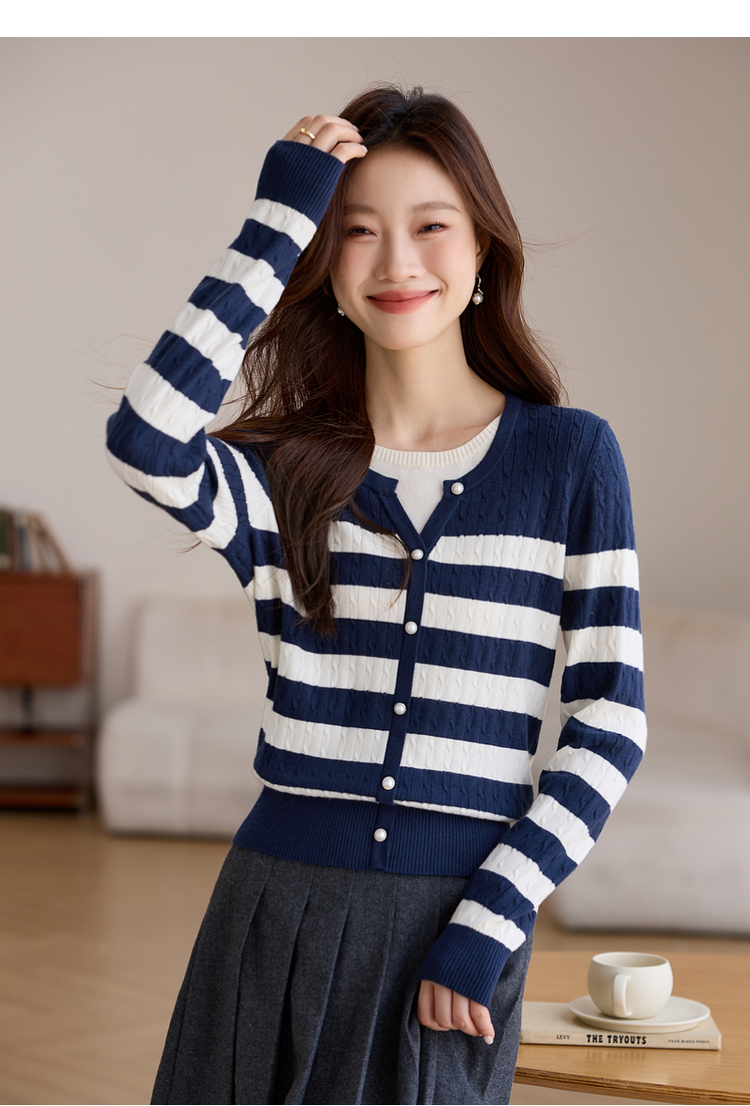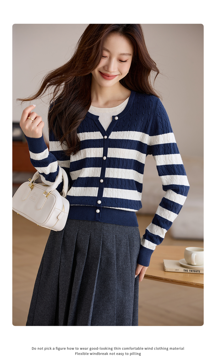 【69元福袋,不支持退换】熙世界2025秋冬款女装高级感气质长袖撞色条纹假两件针织衫毛衣