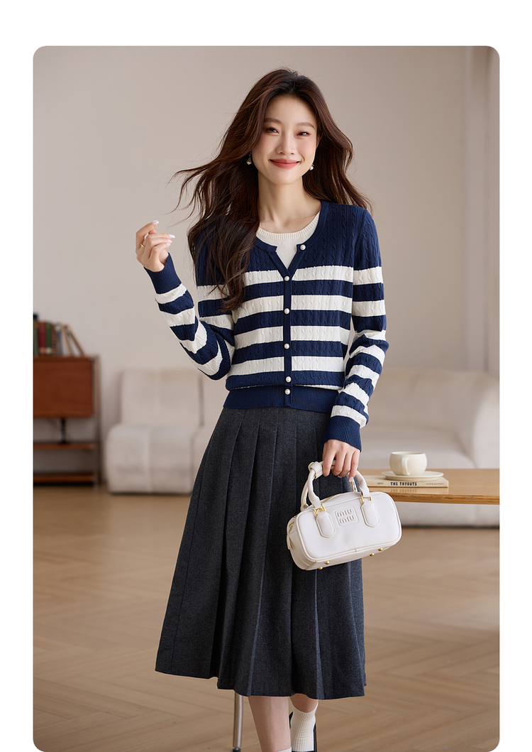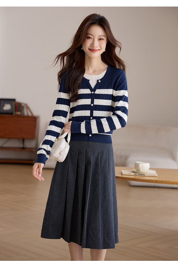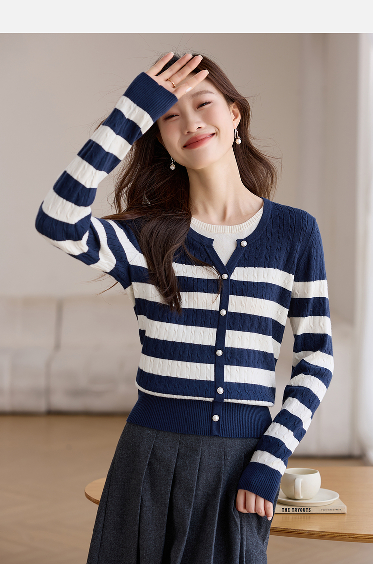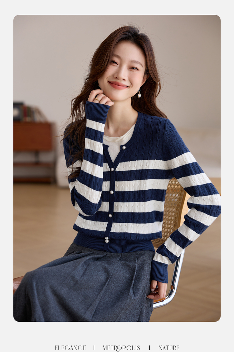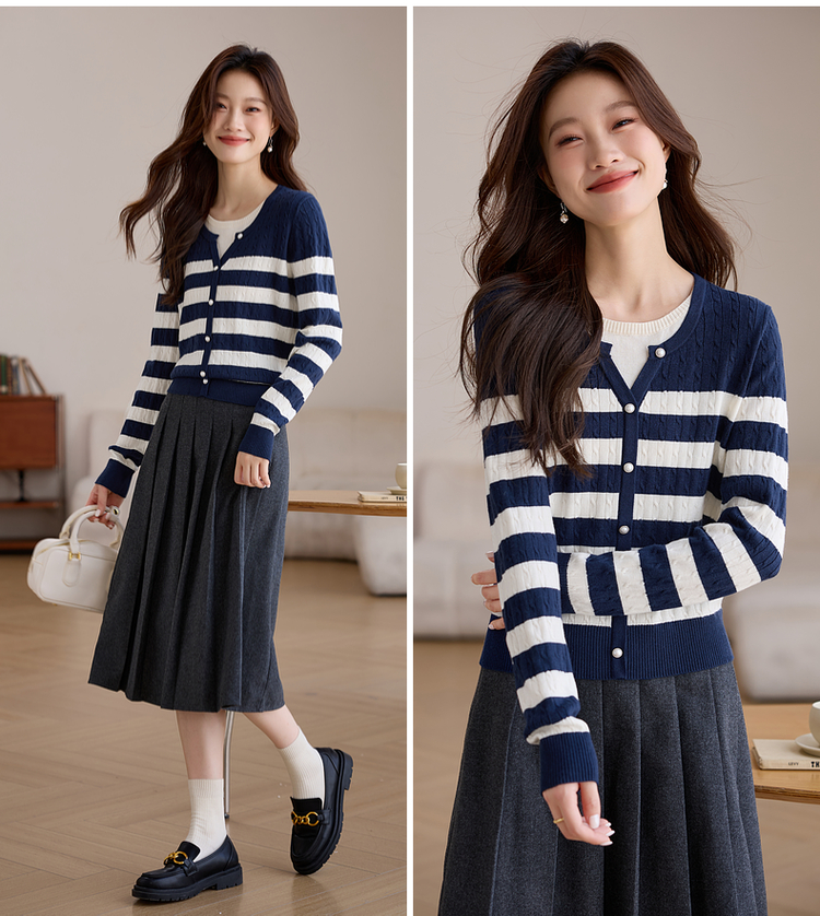 【69元福袋,不支持退换】熙世界2025秋冬款女装高级感气质长袖撞色条纹假两件针织衫毛衣