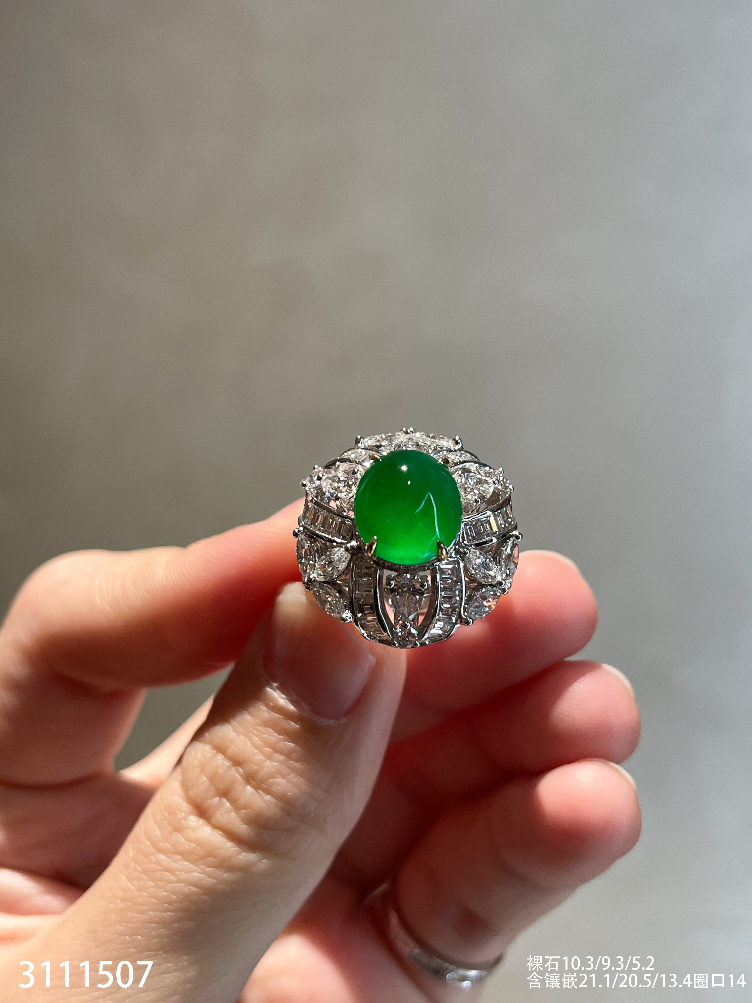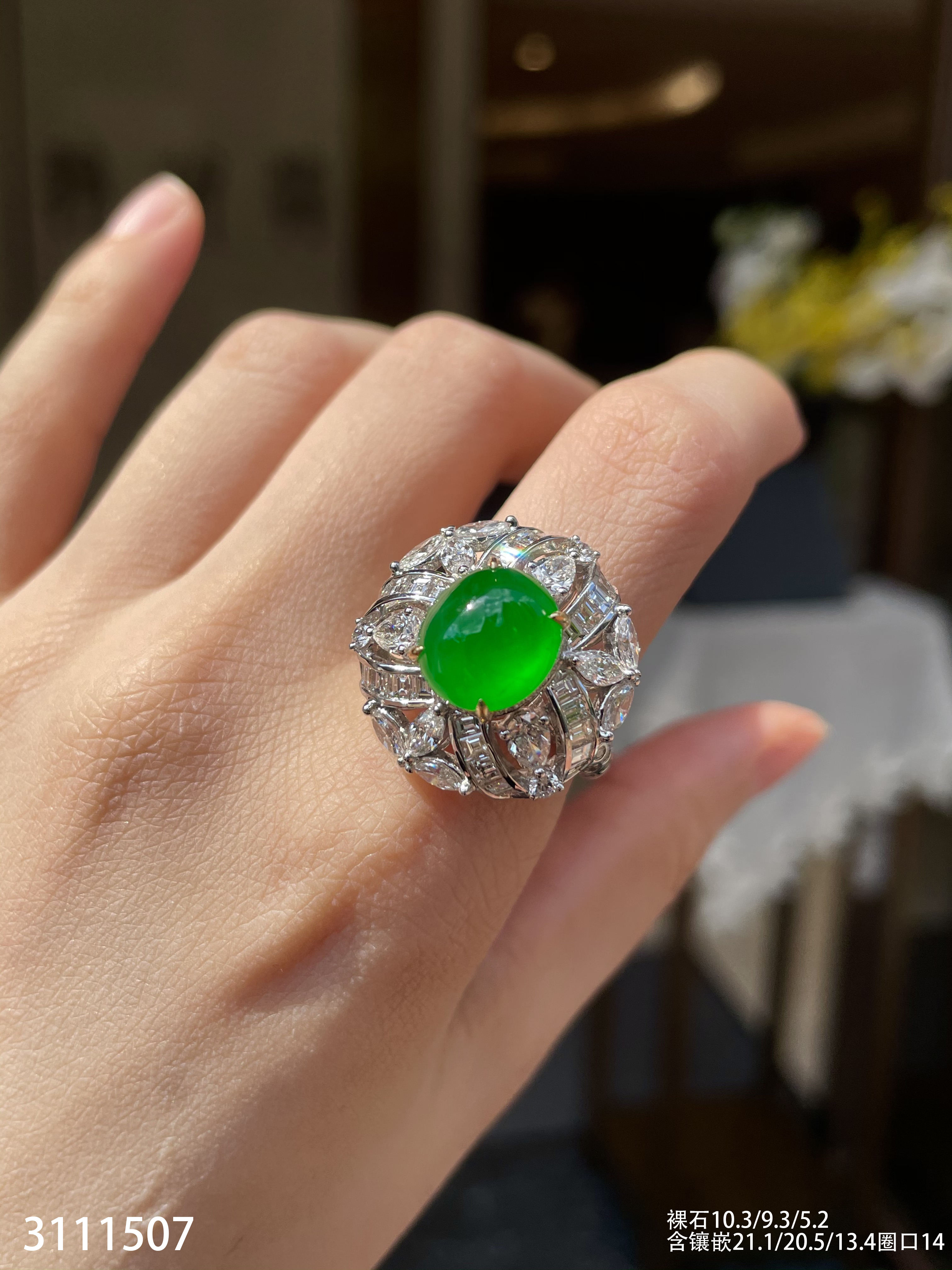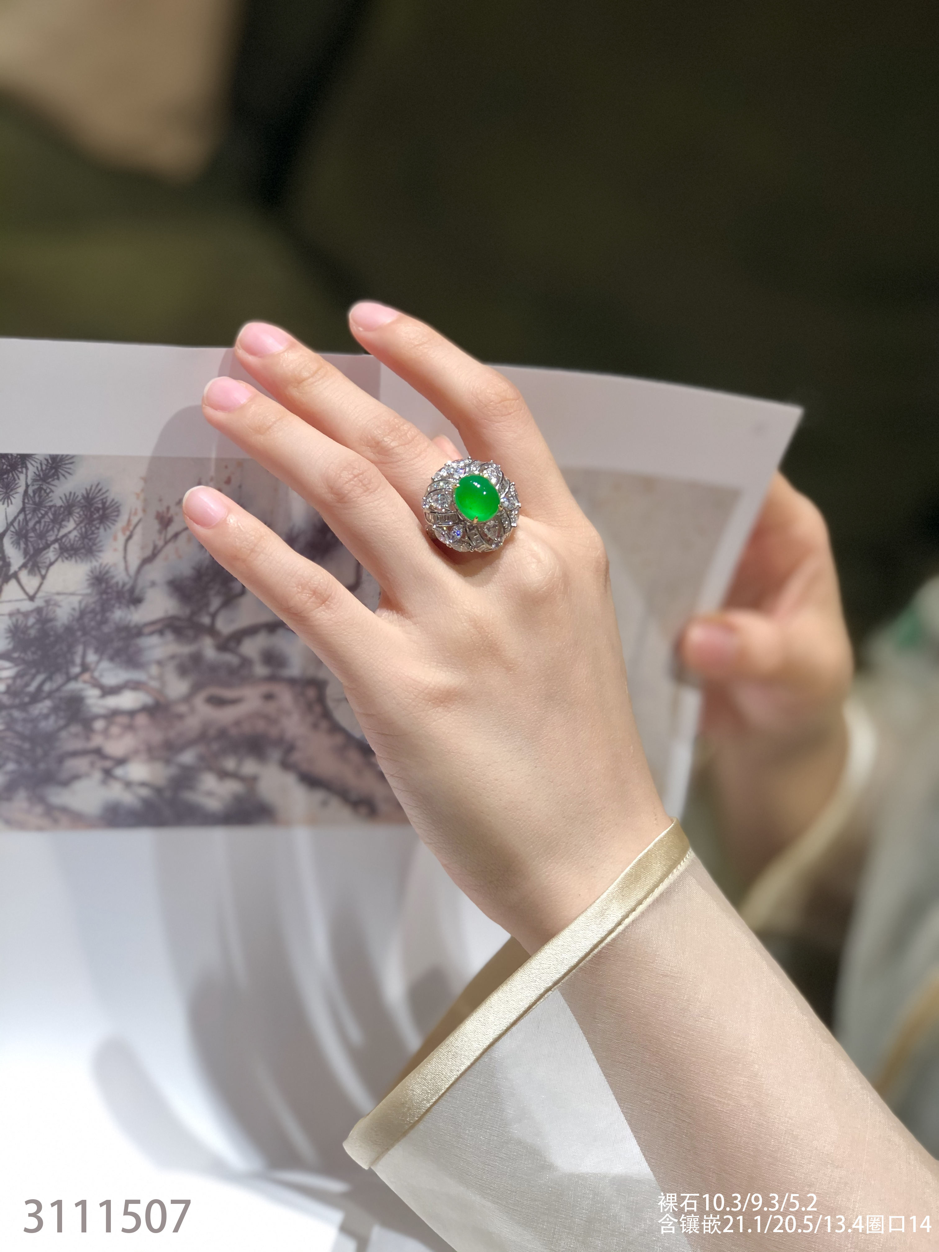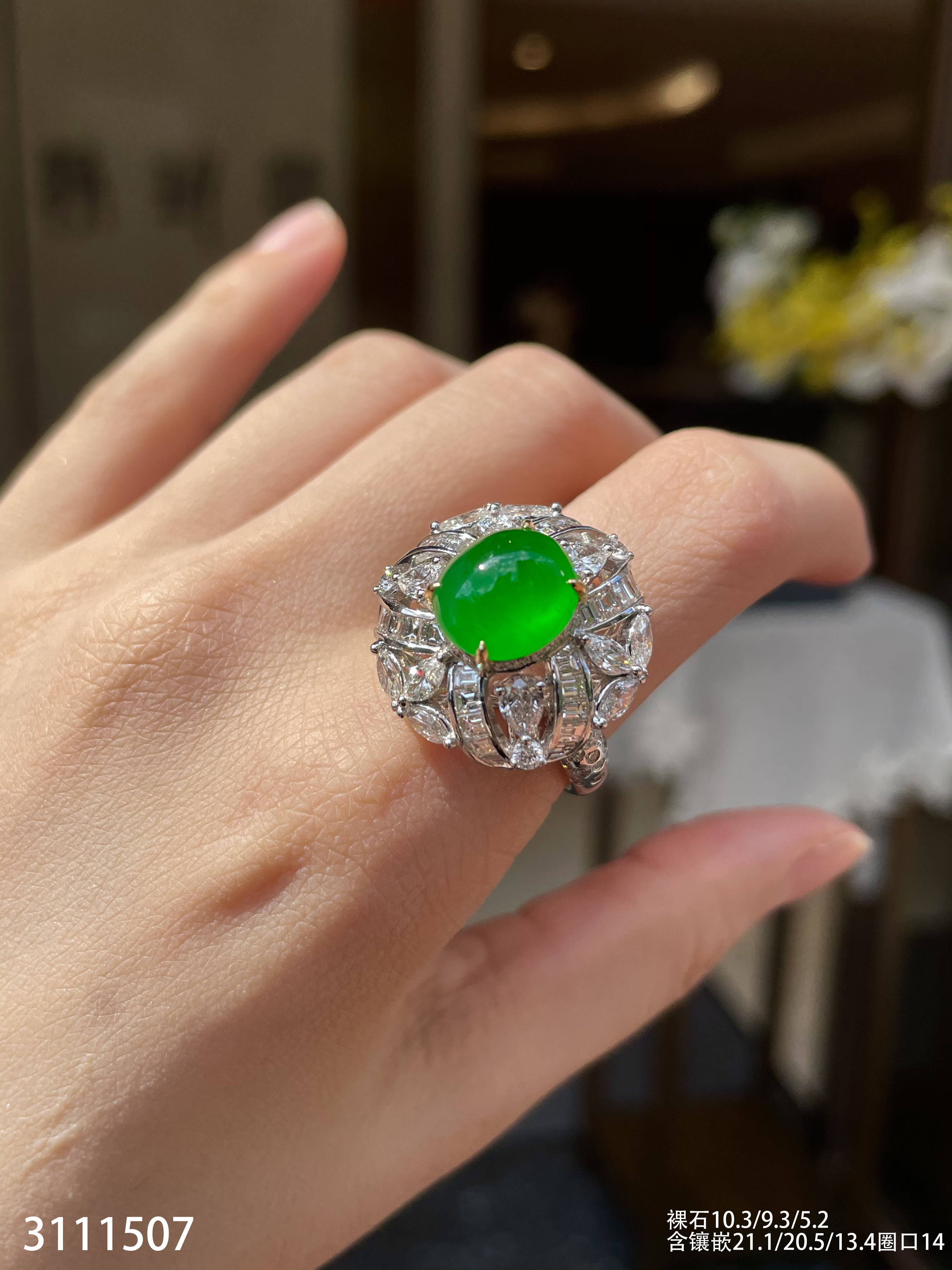 3111507,老坑玻璃艳绿蛋面戒指。具体价格微信咨询