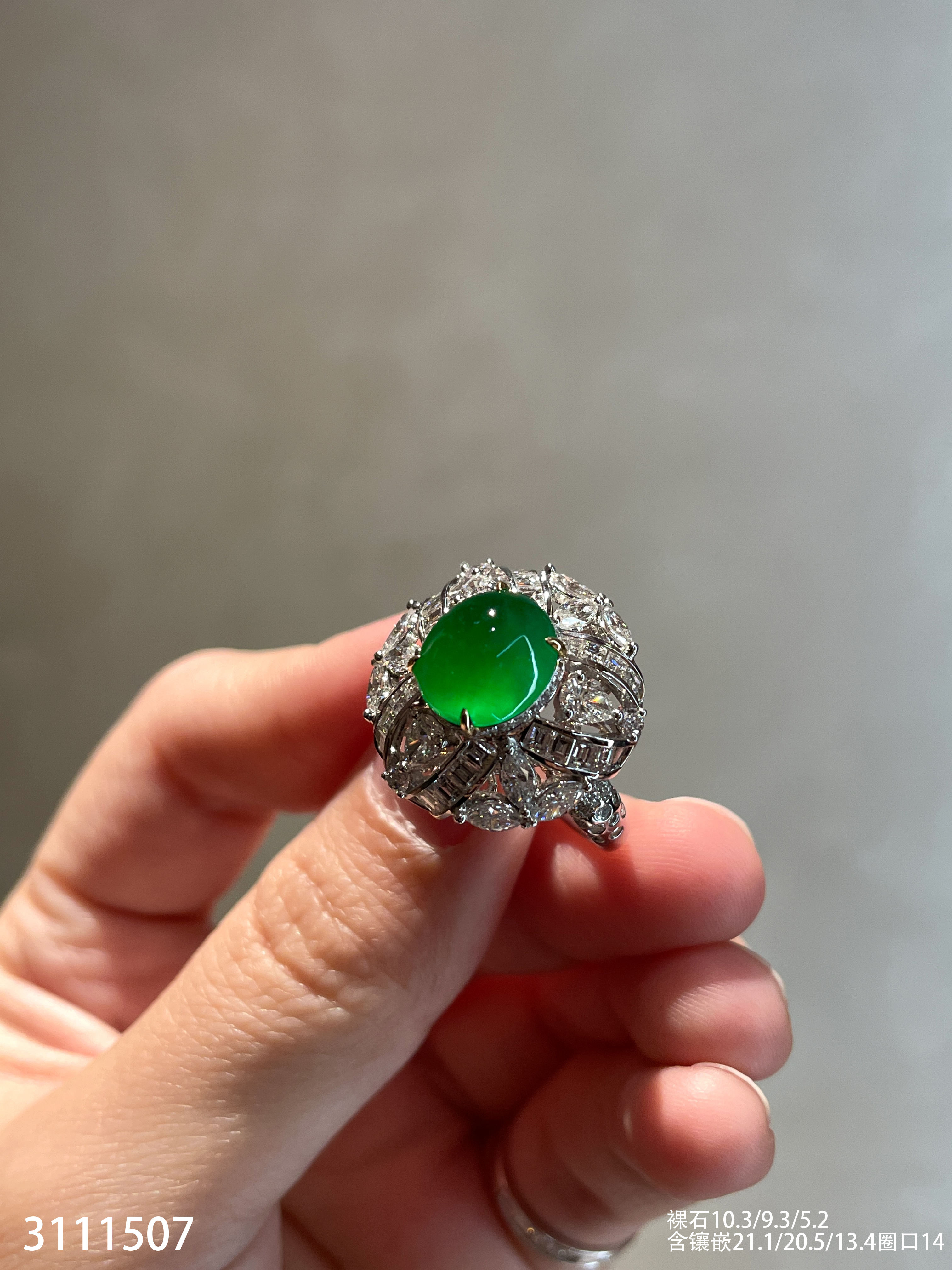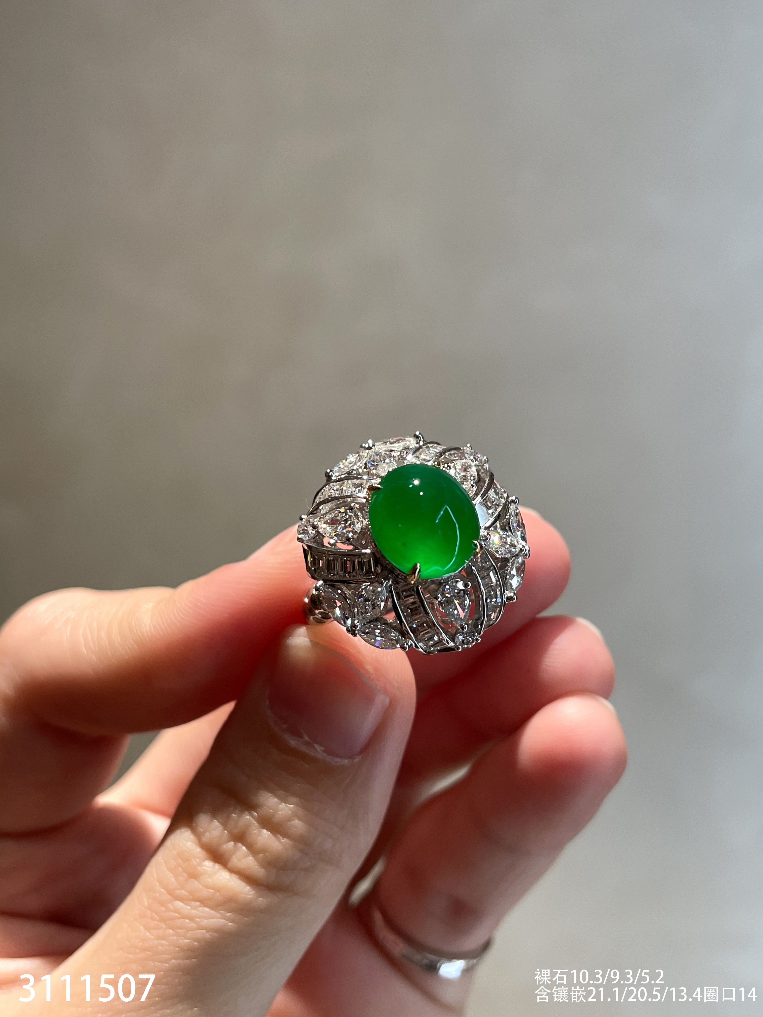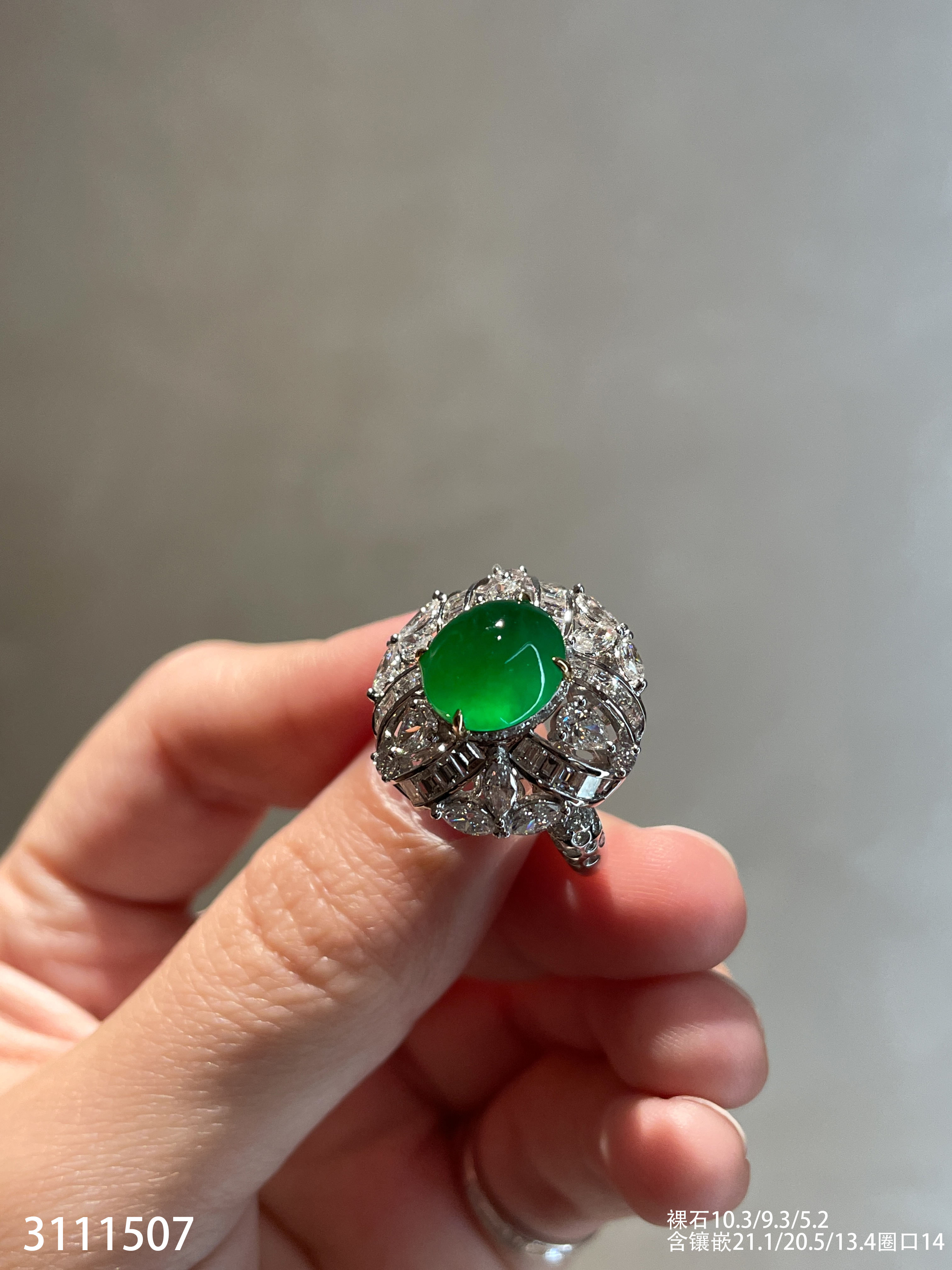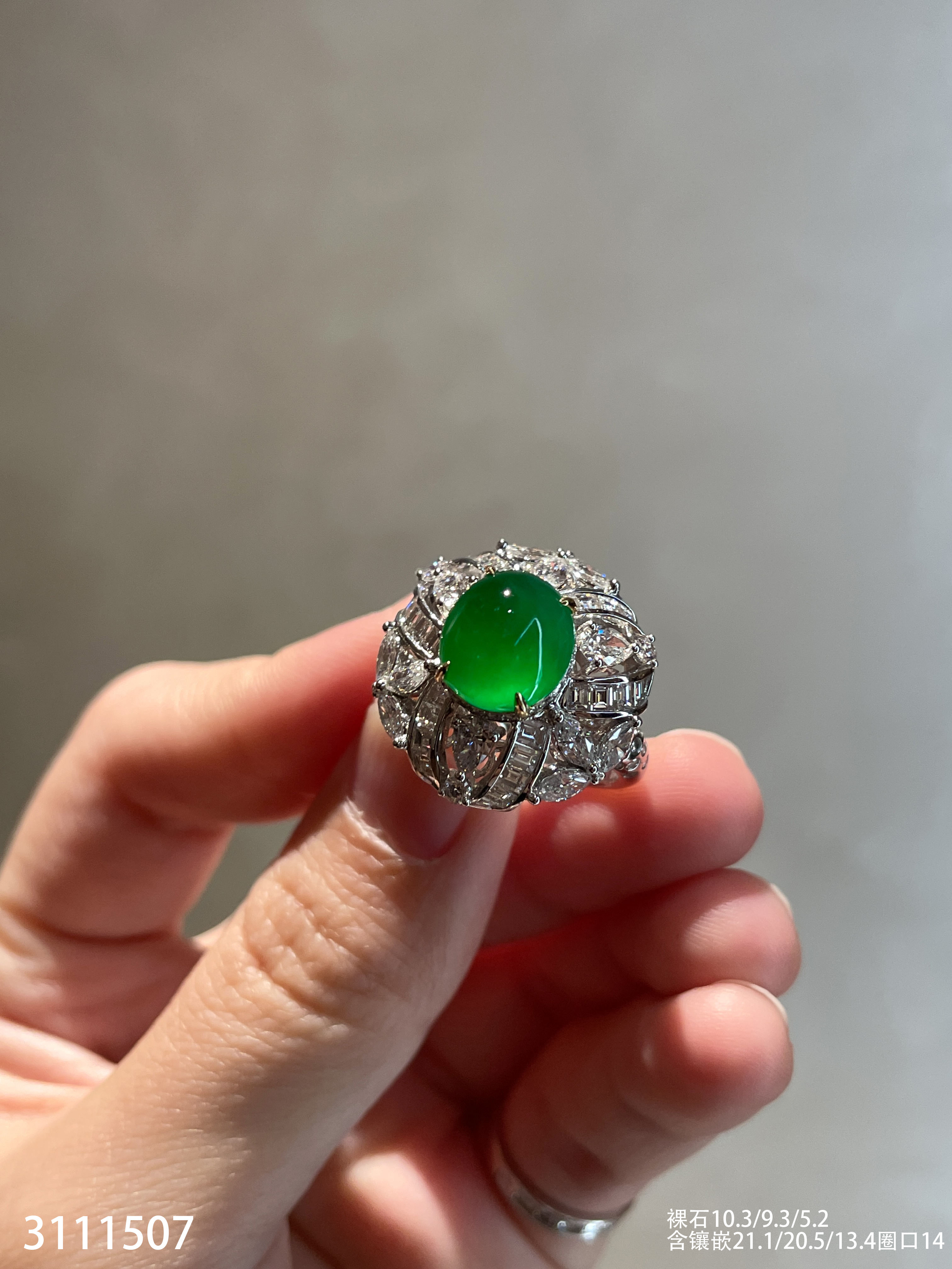 3111507,老坑玻璃艳绿蛋面戒指。具体价格微信咨询