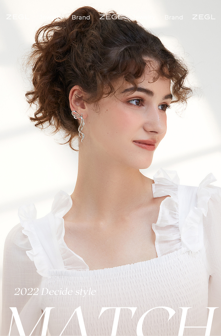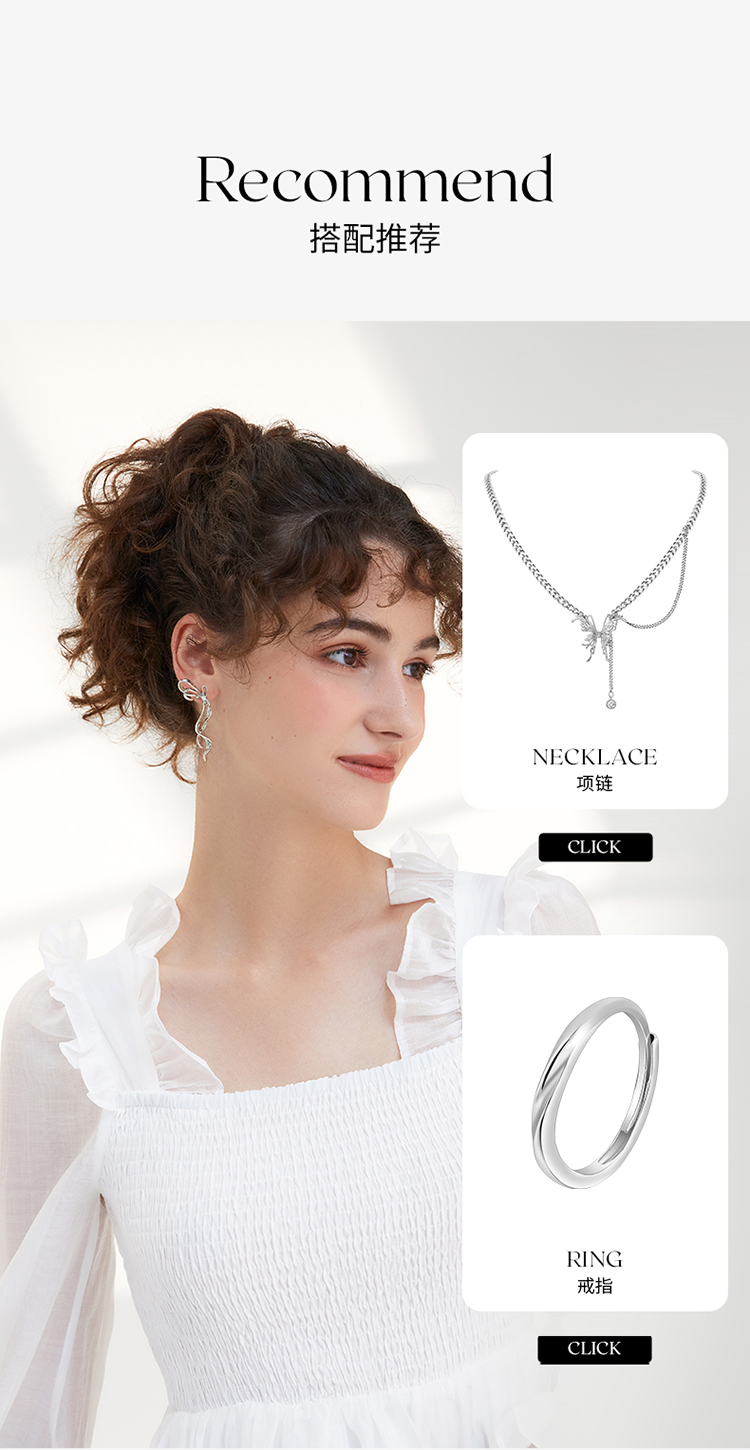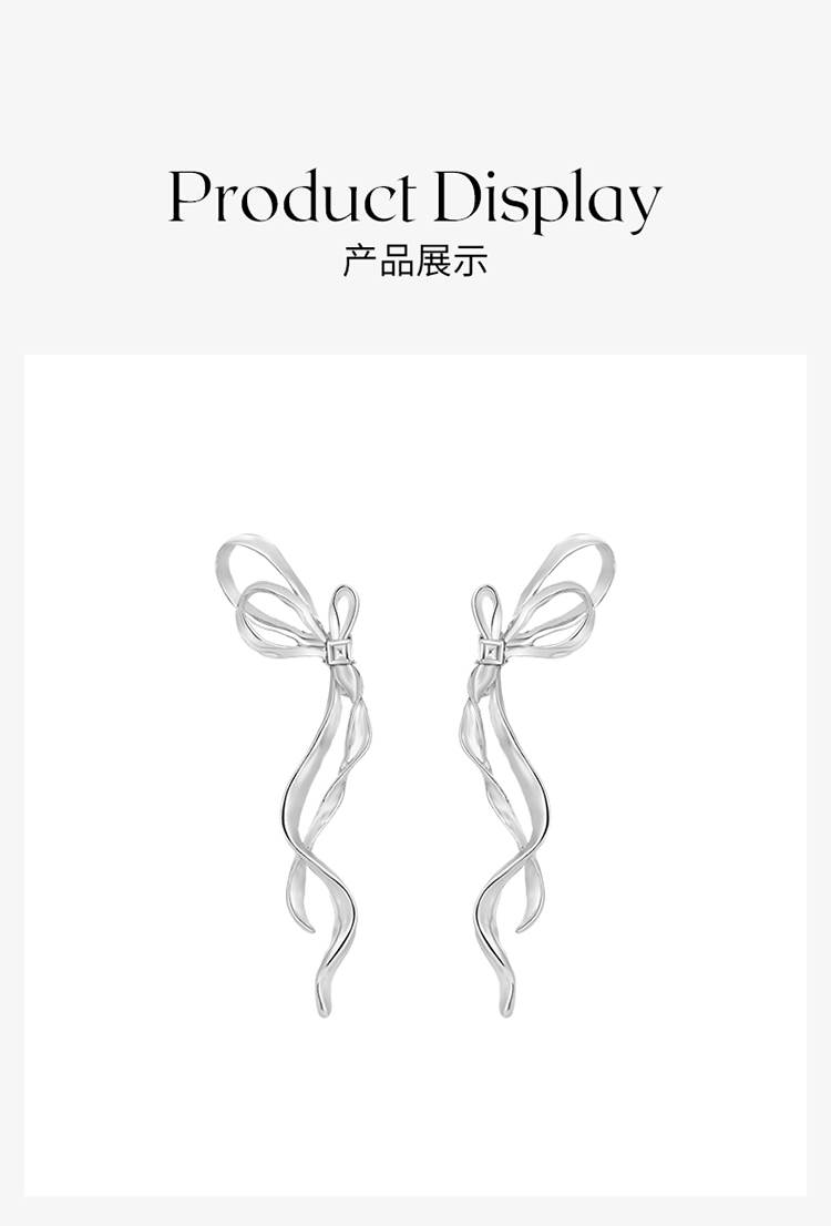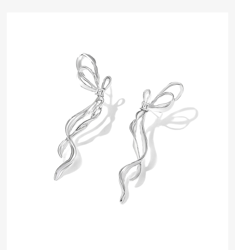 ZEGL蝴蝶结波浪长款耳环女轻奢小众设计感耳钉925银针夏季耳饰品