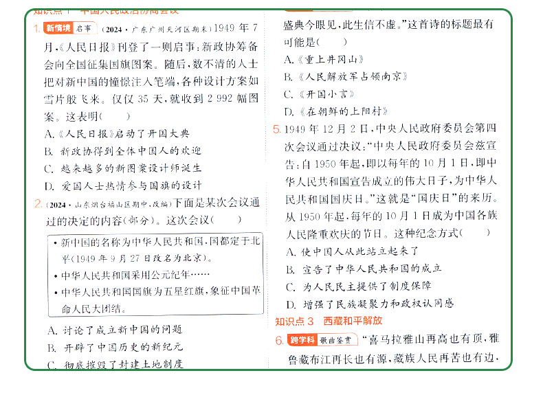 2025年春【人教版】八年级下册历史 实验班提优训练