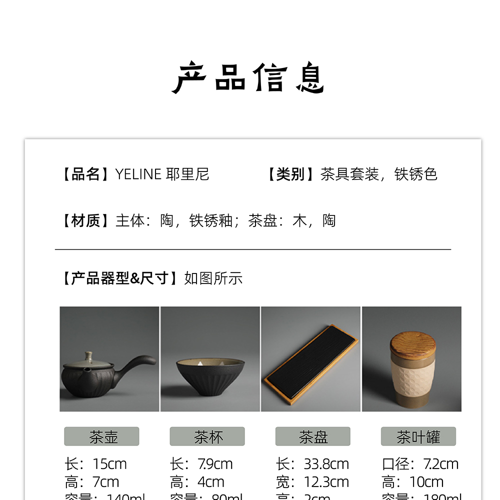 YELINE耶里尼茶具套装 铁锈色