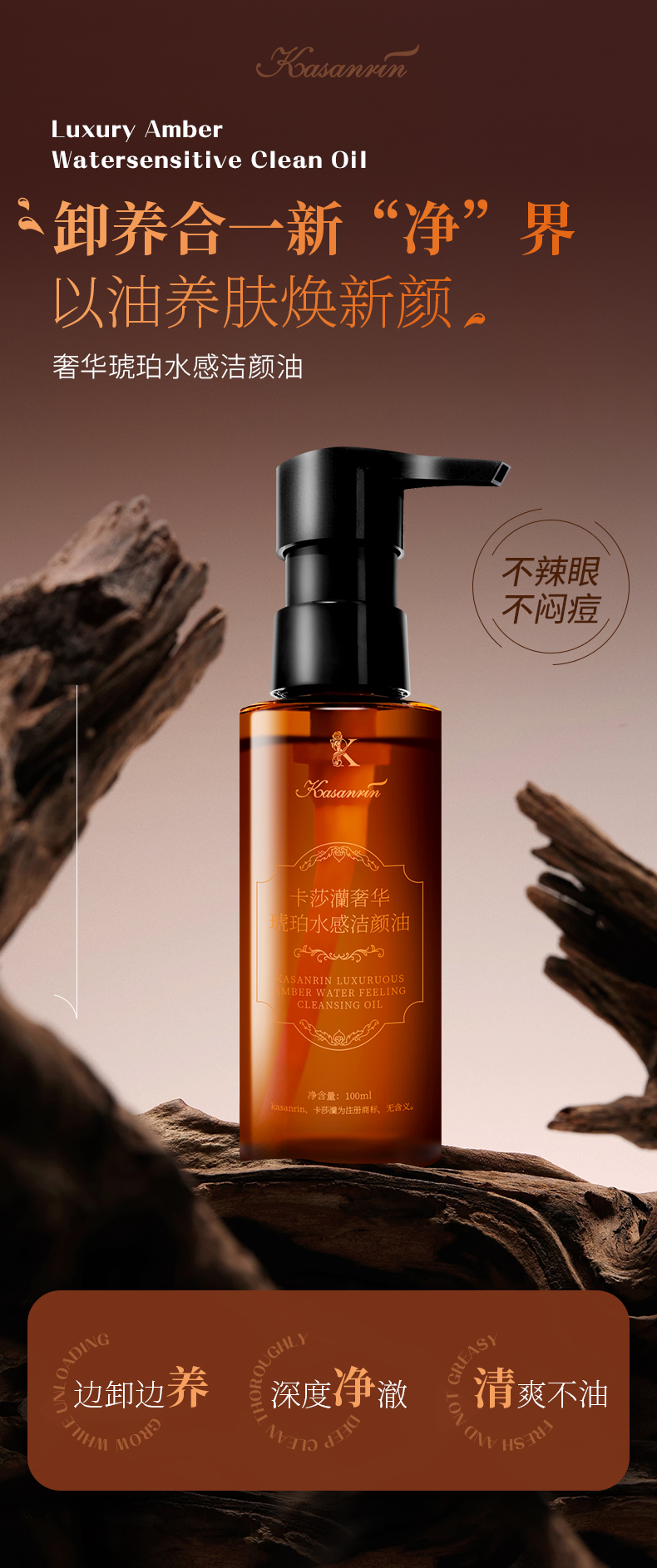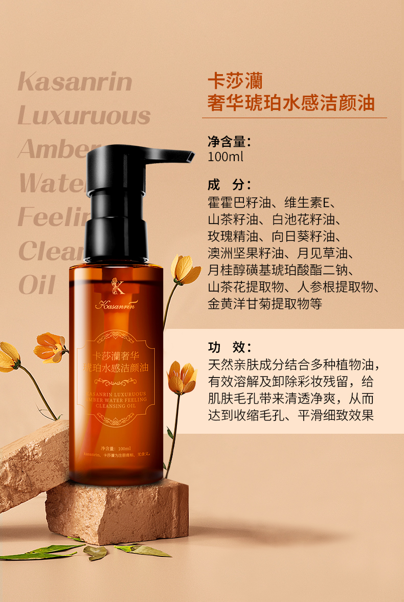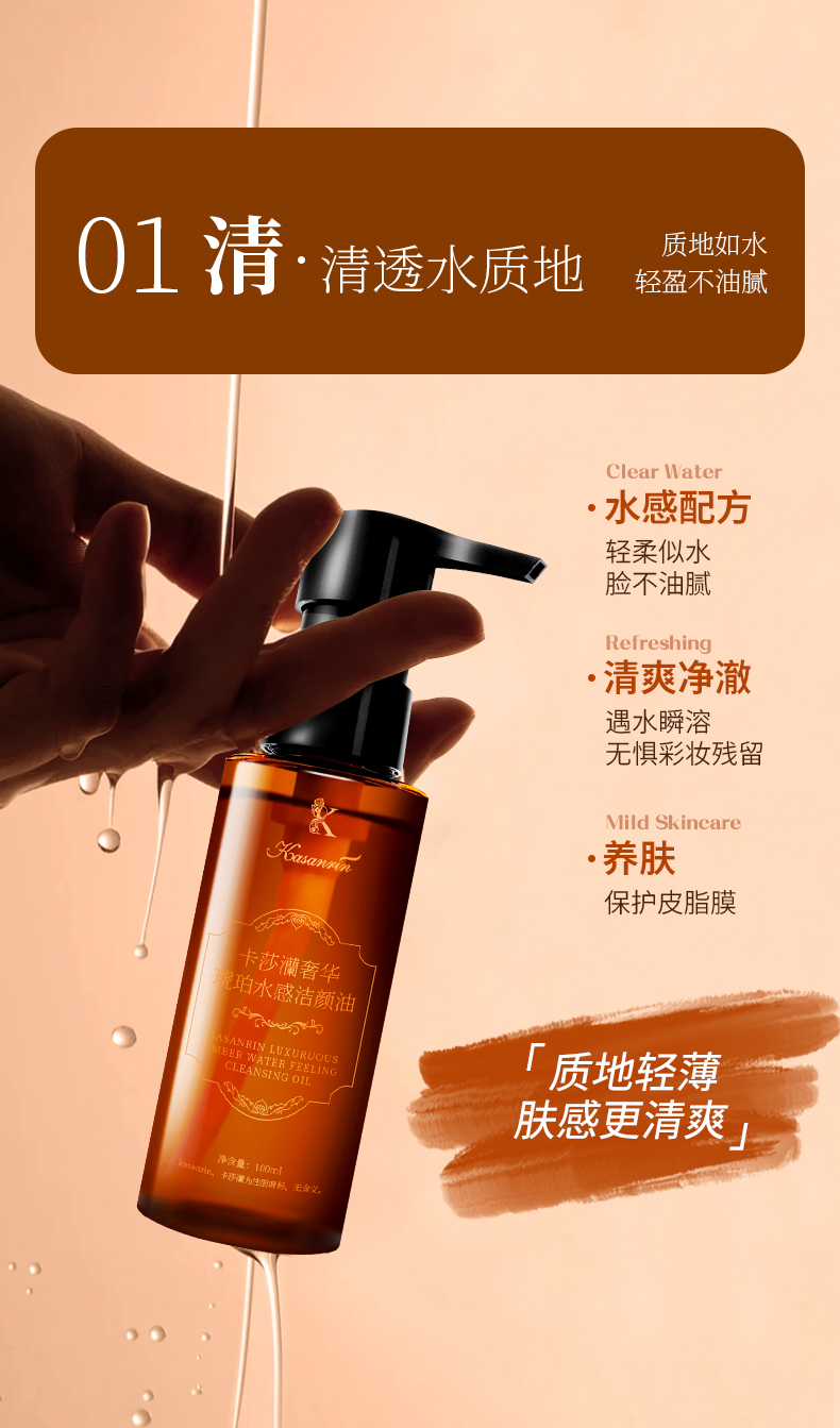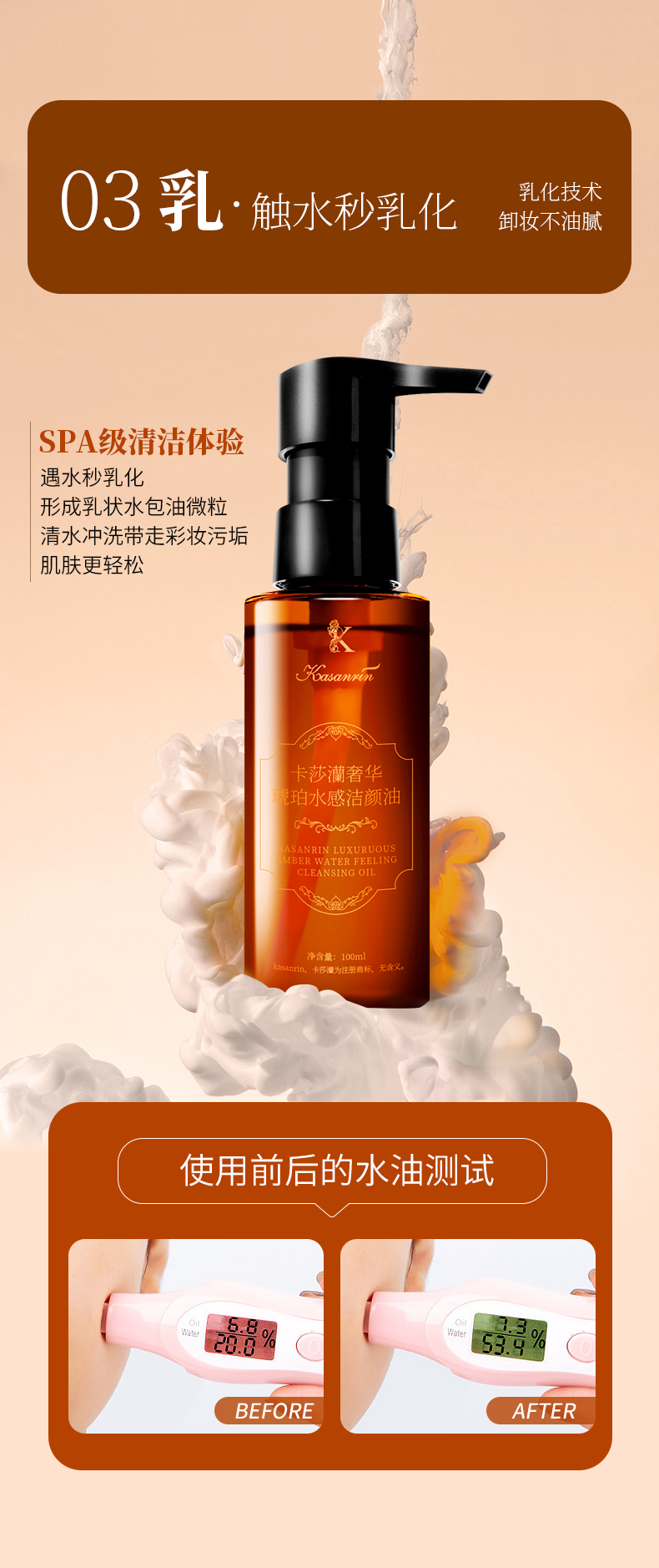 卡莎灡奢华琥珀水感洁颜油,卸妆,水感以油卸妆。