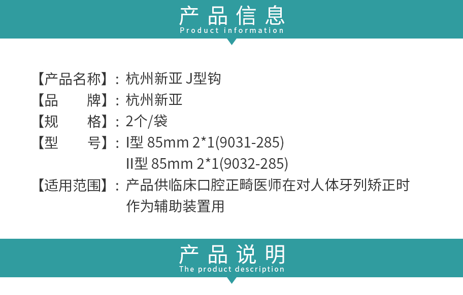 口外正畸牵引装置(新亚 J型钩 2*1) 商品缩略图0