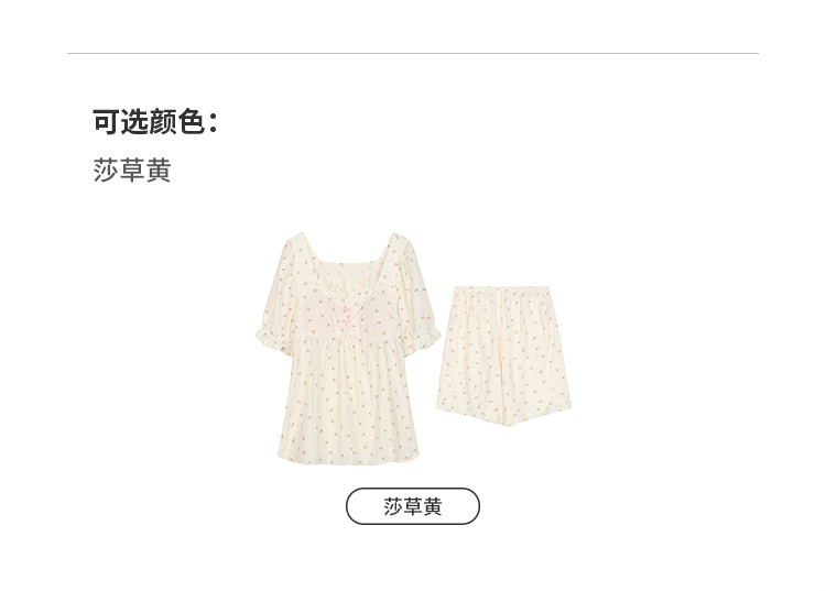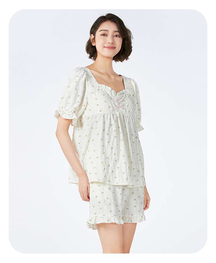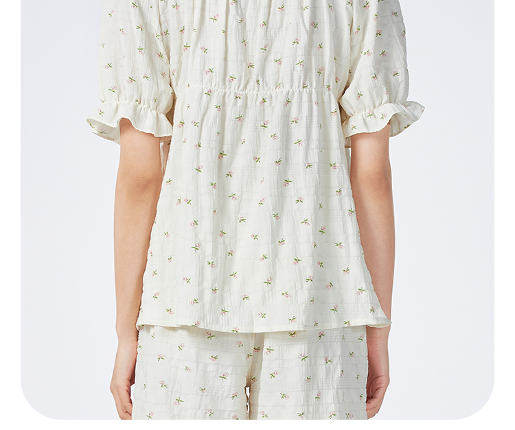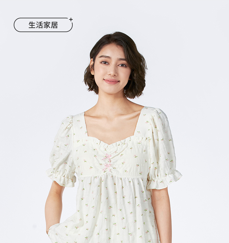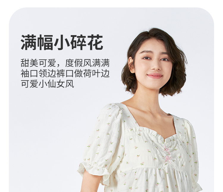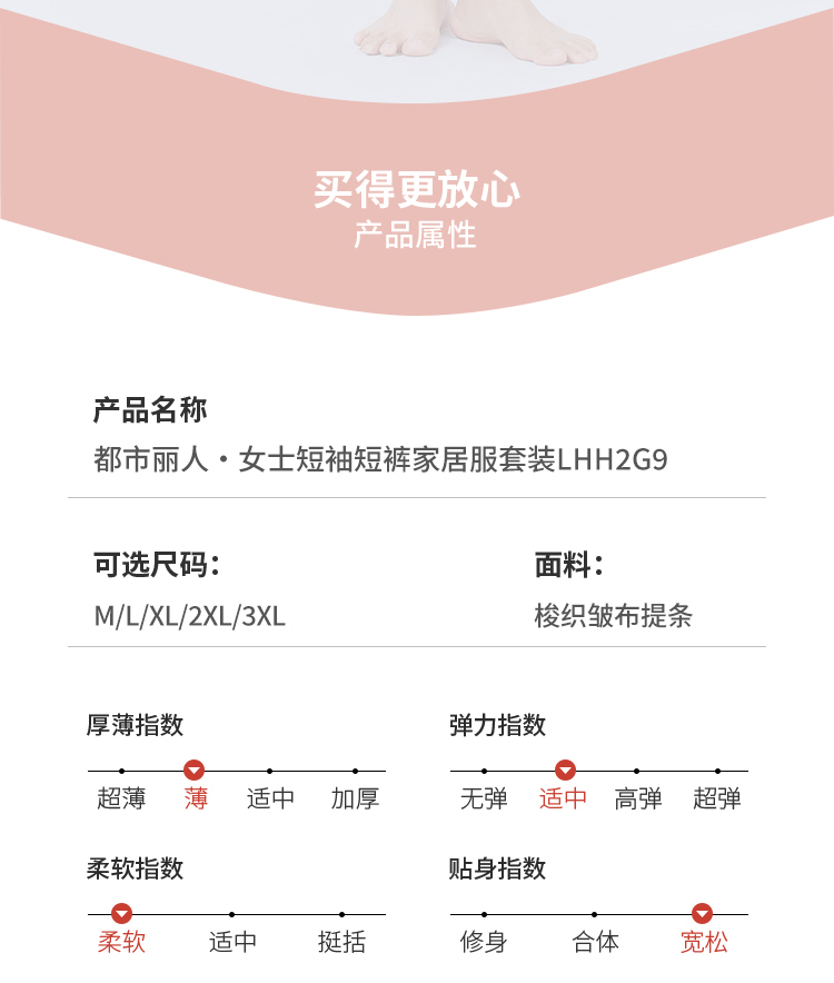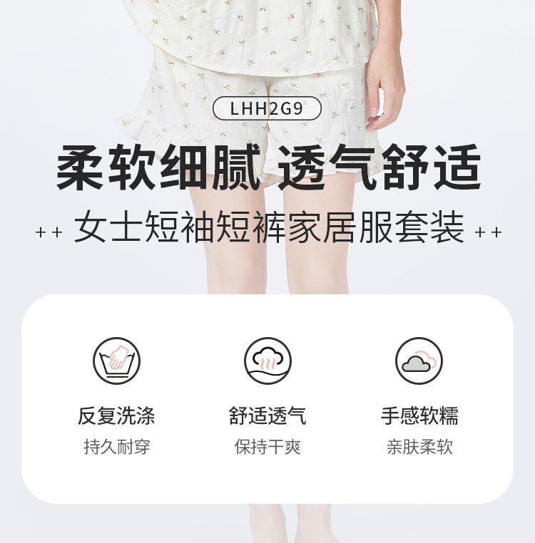 都市丽人女士软绵绵短袖套装薄梭织皱布提条生活家居短袖类LHH2G9