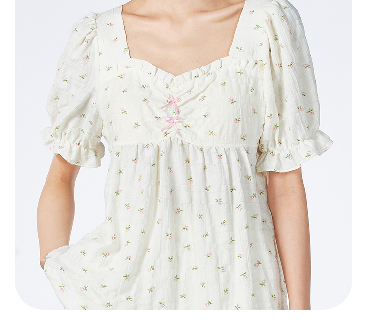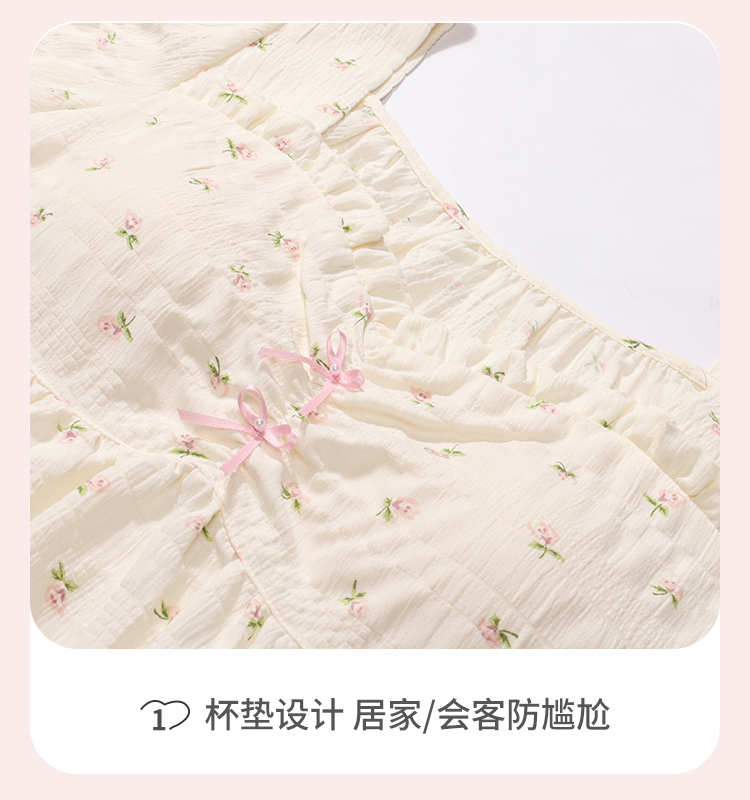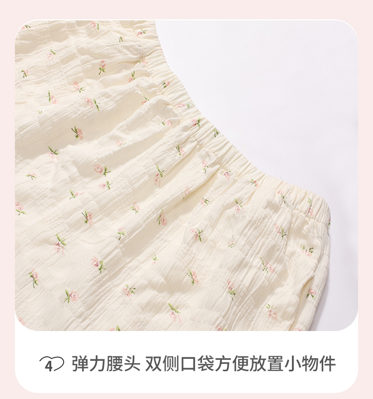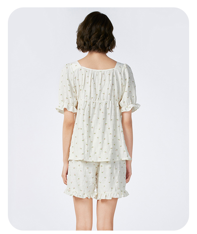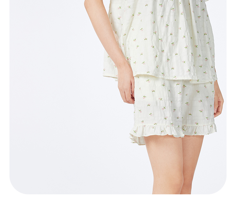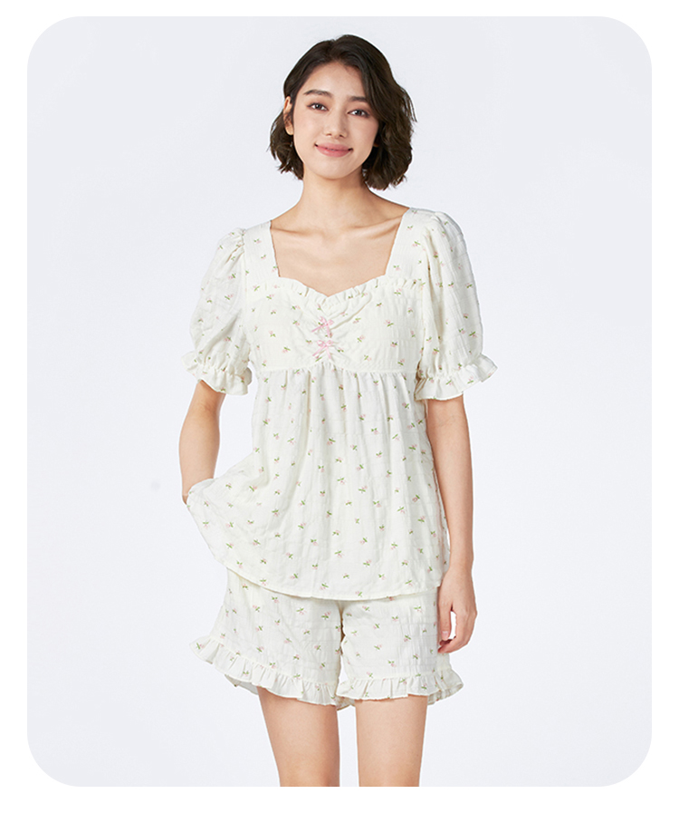 都市丽人女士软绵绵短袖套装薄梭织皱布提条生活家居短袖类LHH2G9