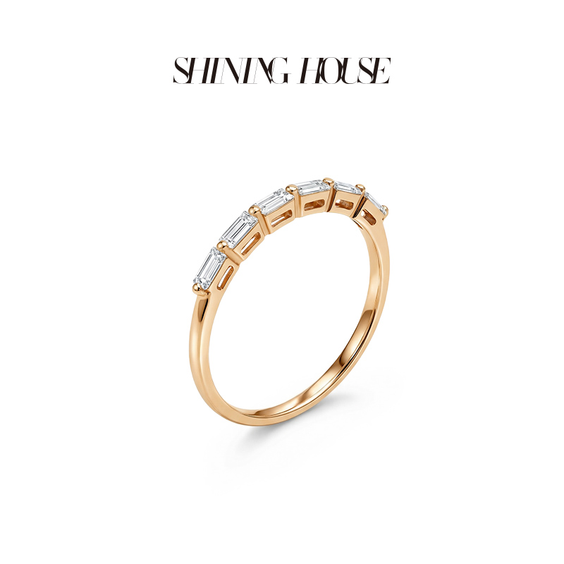 ShiningHouse[培育] 18k金钻石戒指 排钻戒指人工真钻人造钻石K金戒指设计感简约钻石戒指悦己送礼臻选【此商品不支持7天无理由退货退款】预计3日发货
