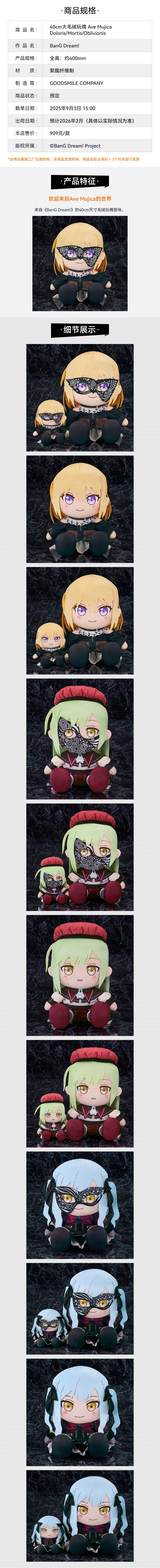 【GSC补款】40cm大毛绒玩偶 Ave Mujica Doloris/Mortis/Oblivionis BanG Dream!