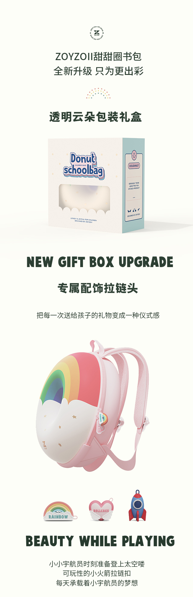 3-5岁 | Zoyzoii 甜甜圈书包系列 彩虹女孩双肩包超萌可爱背包男孩子 3-5岁