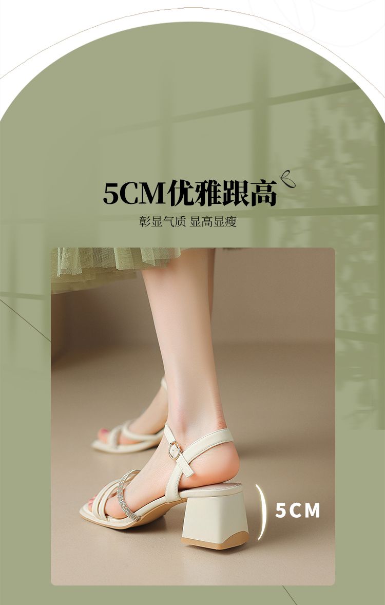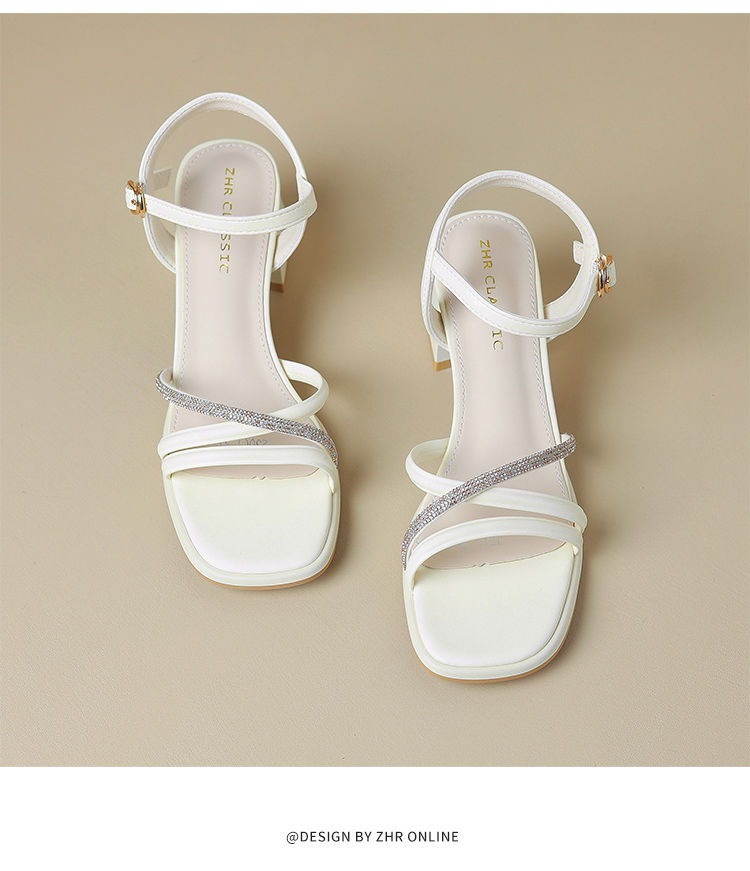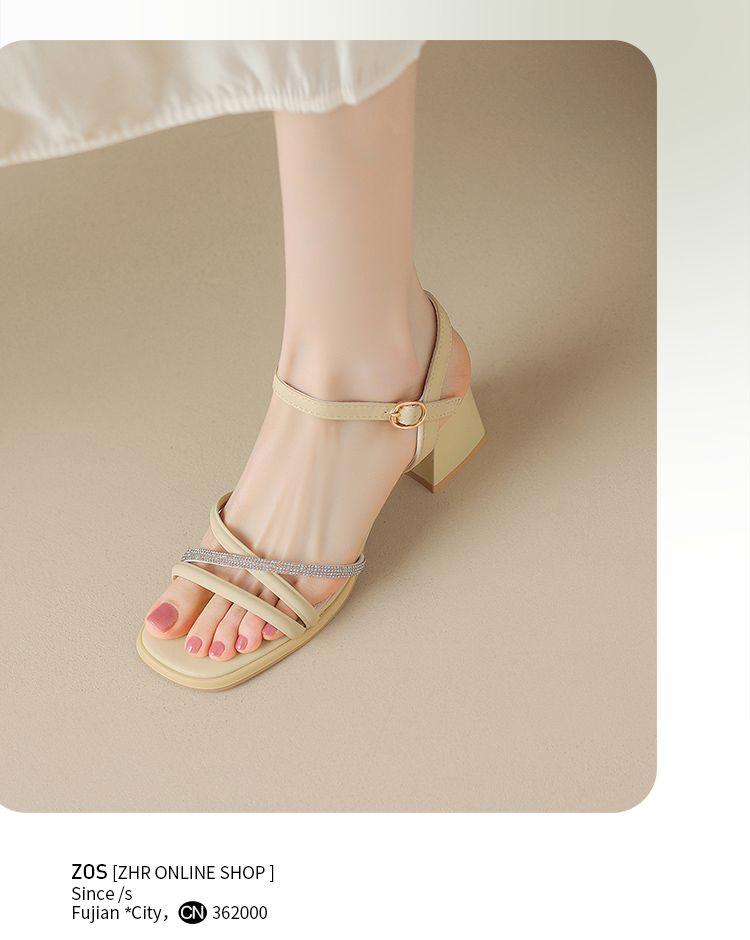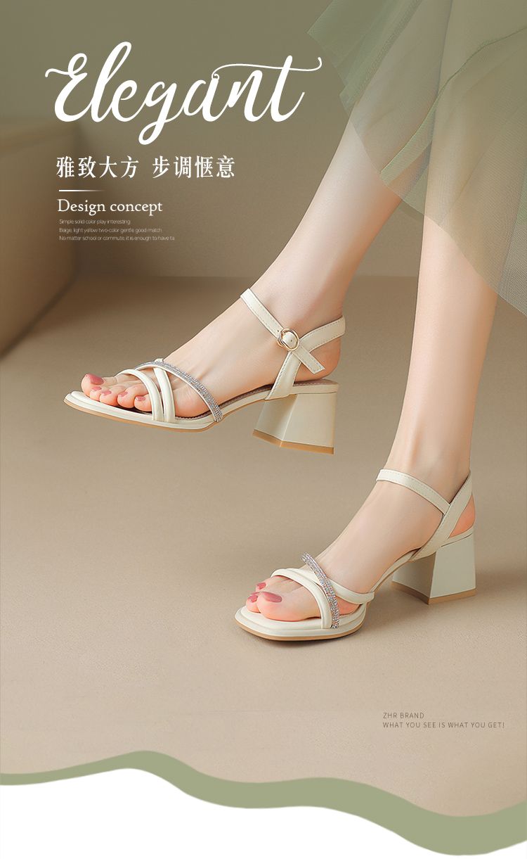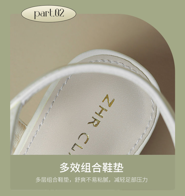 ZHR则则法式一字带粗跟凉鞋2024新款时尚百搭仙女气质女鞋ins简约