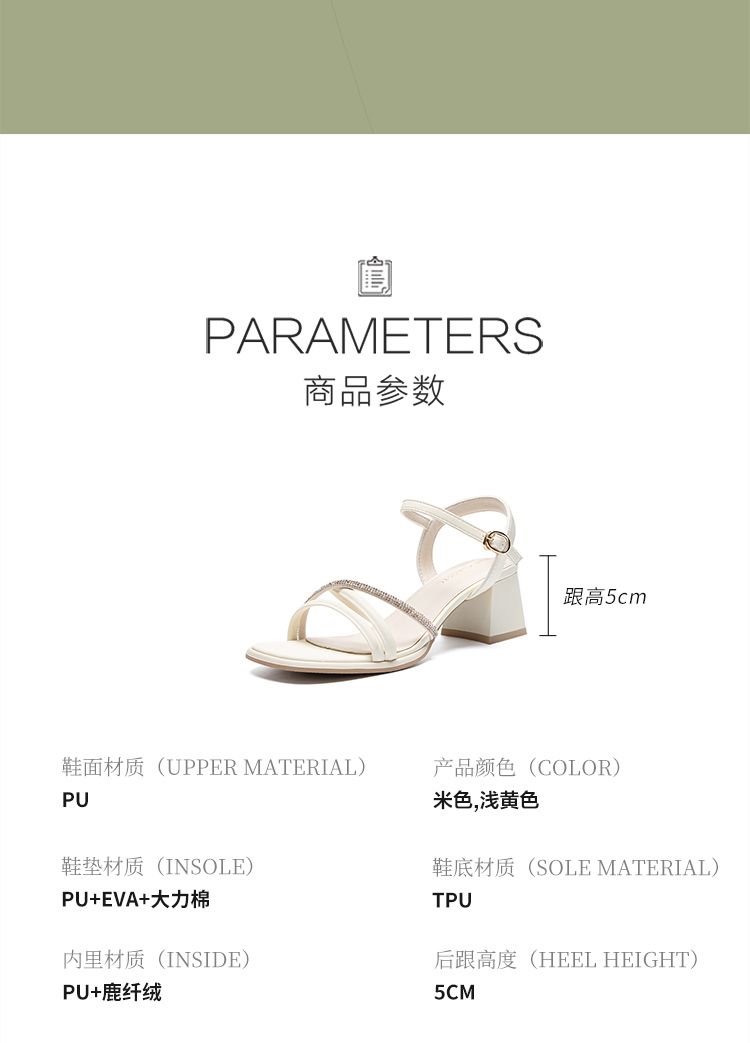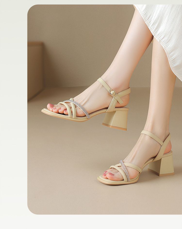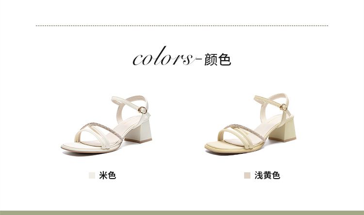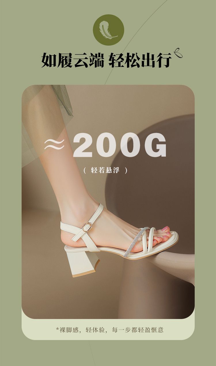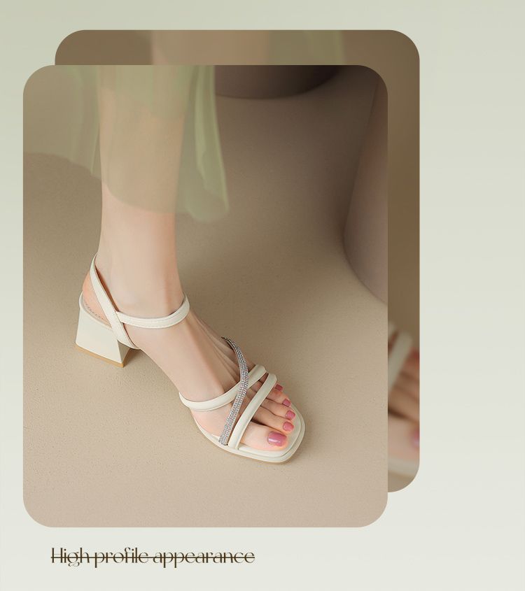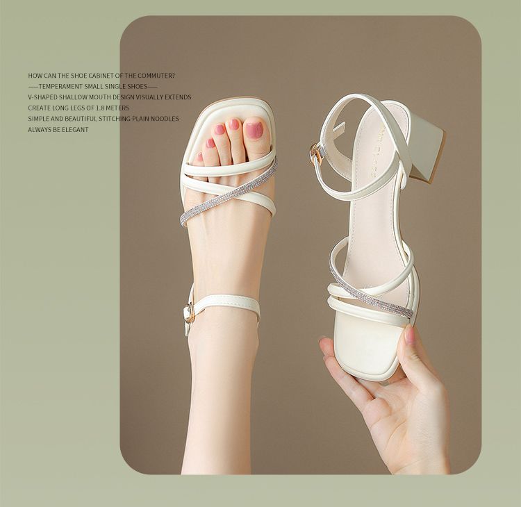 ZHR则则法式一字带粗跟凉鞋2024新款时尚百搭仙女气质女鞋ins简约