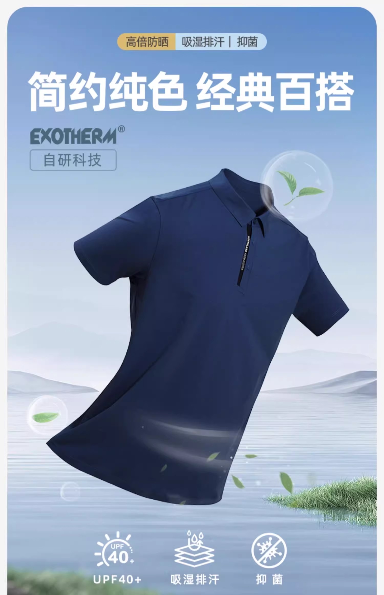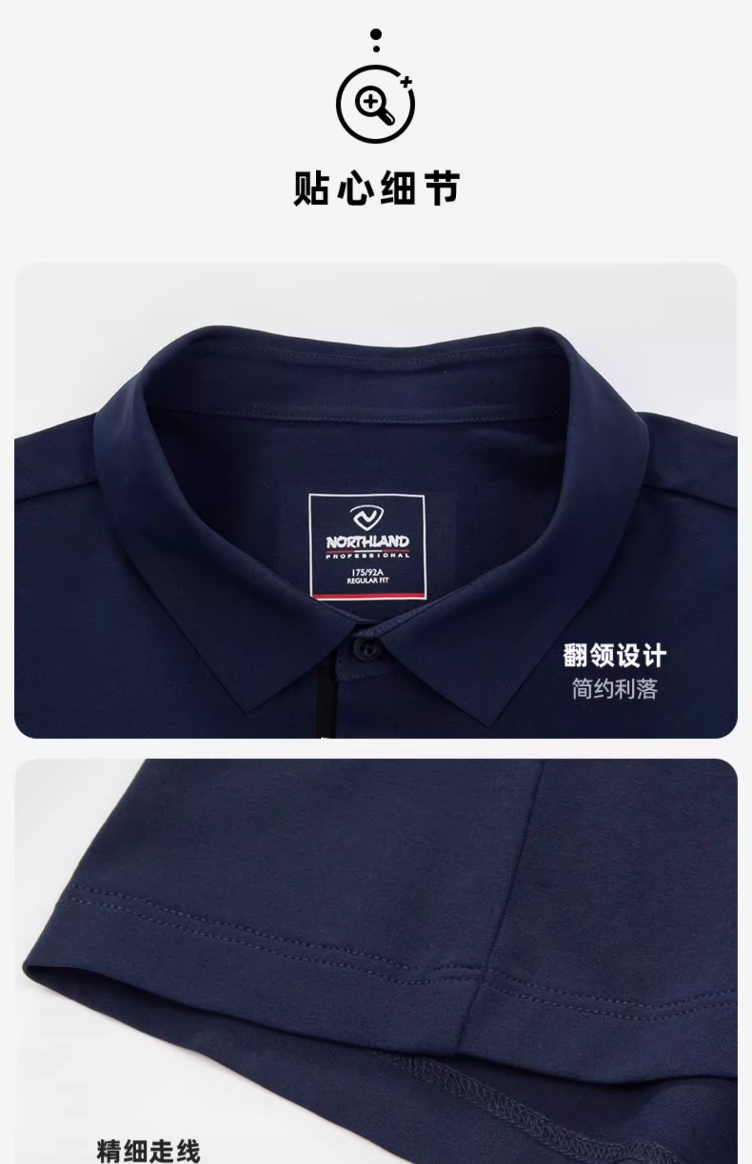 诺诗兰春夏翻领短袖T恤男户外运动防晒抑菌透气半袖峡泽男式翻领短袖T恤NTSEH5204D