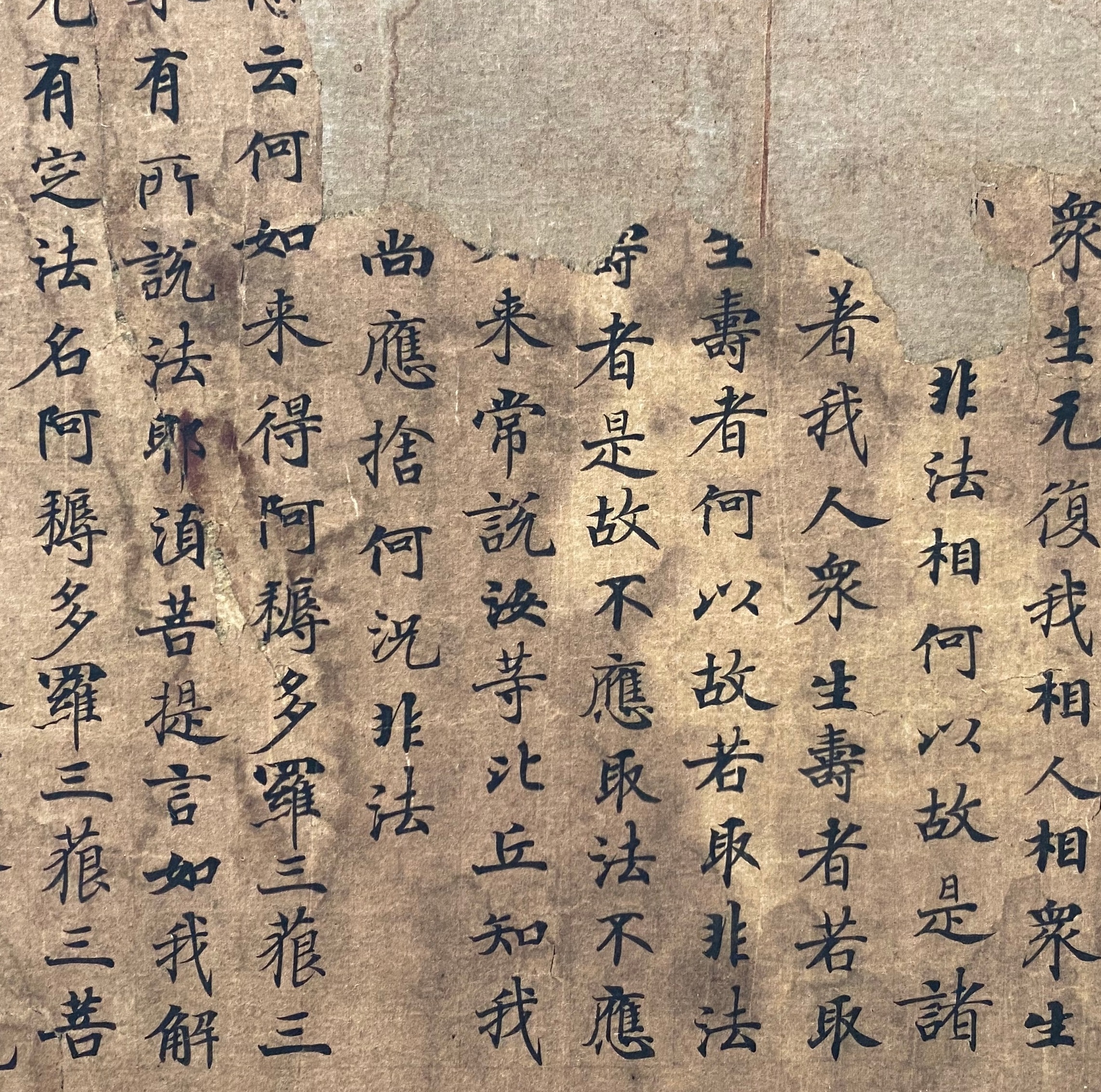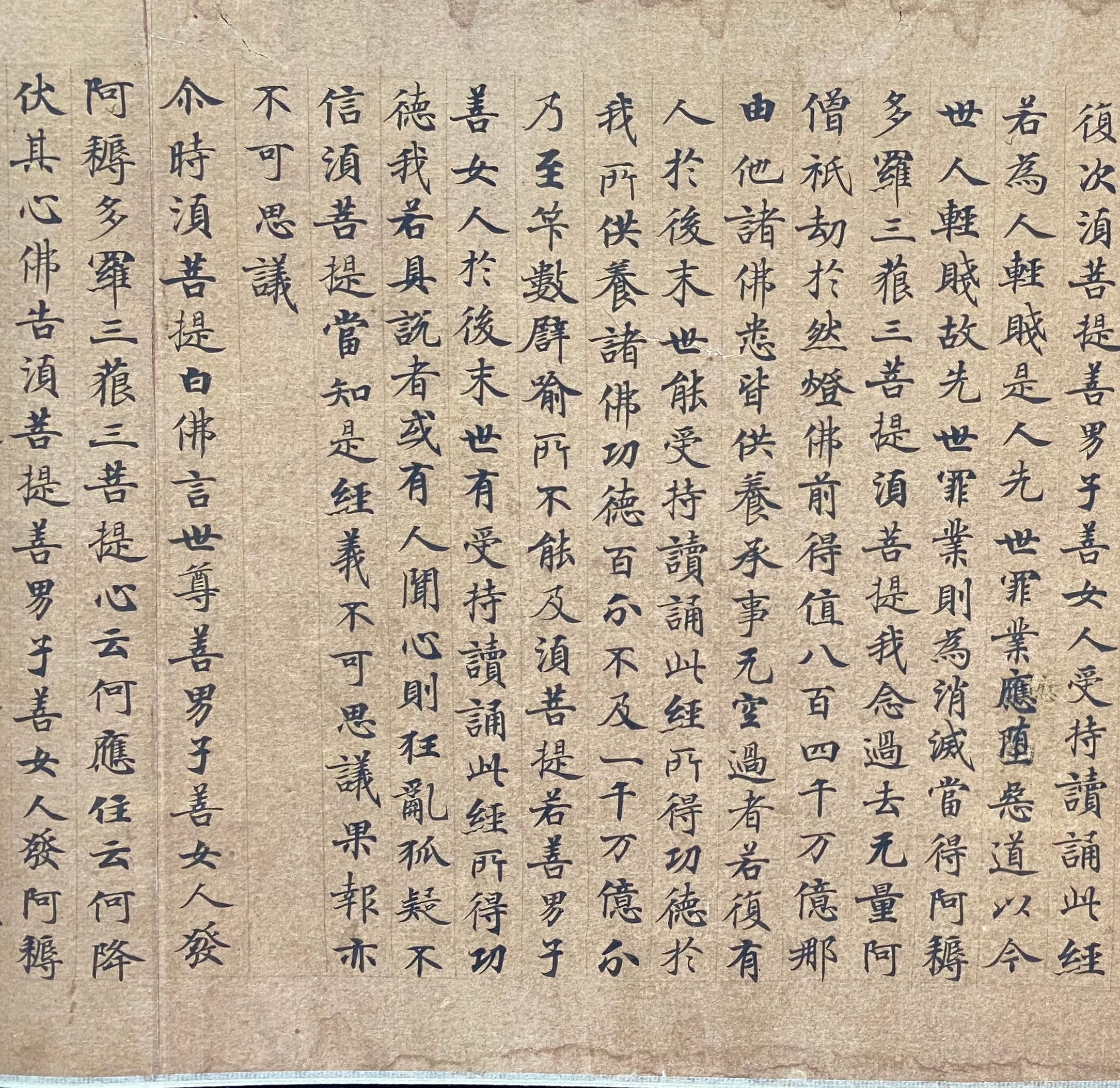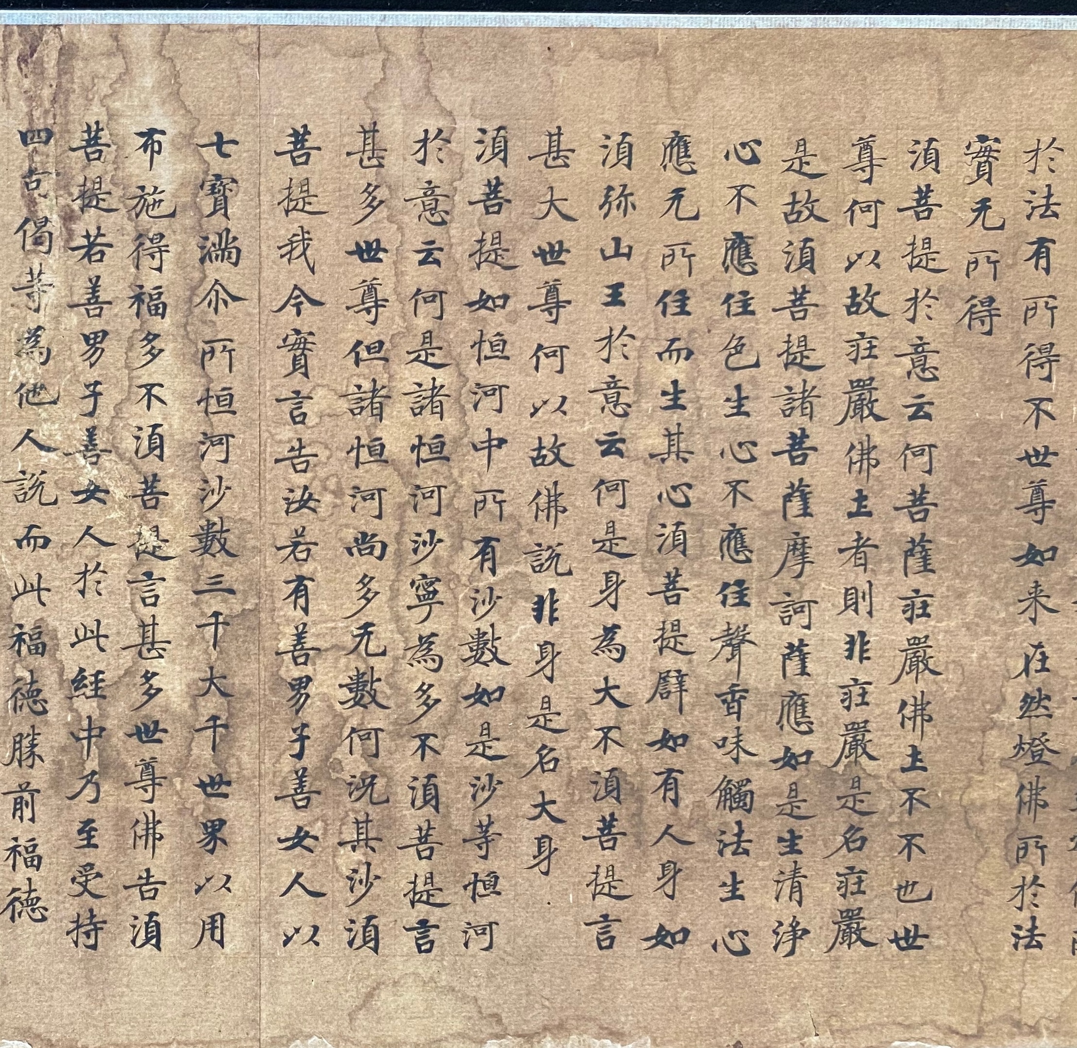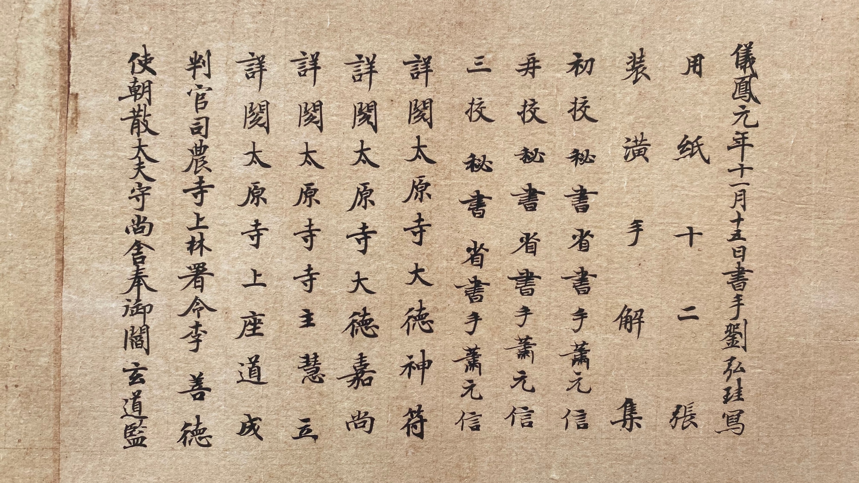 敦煌写经-金刚般若波罗蜜经卷,刘弘珪书,唐朝仪凤元年手稿,中国国家图书馆藏敦煌卷轴。