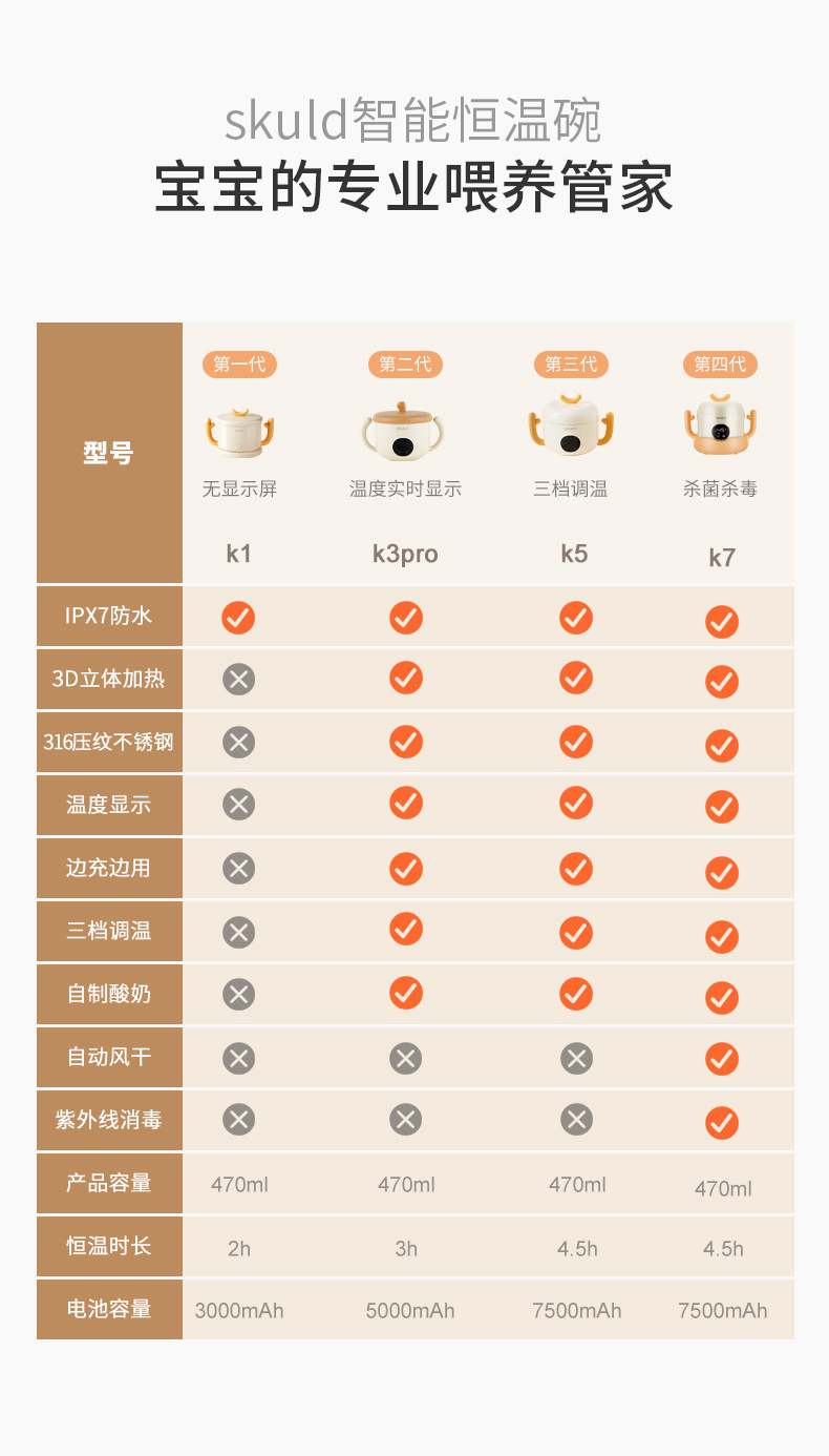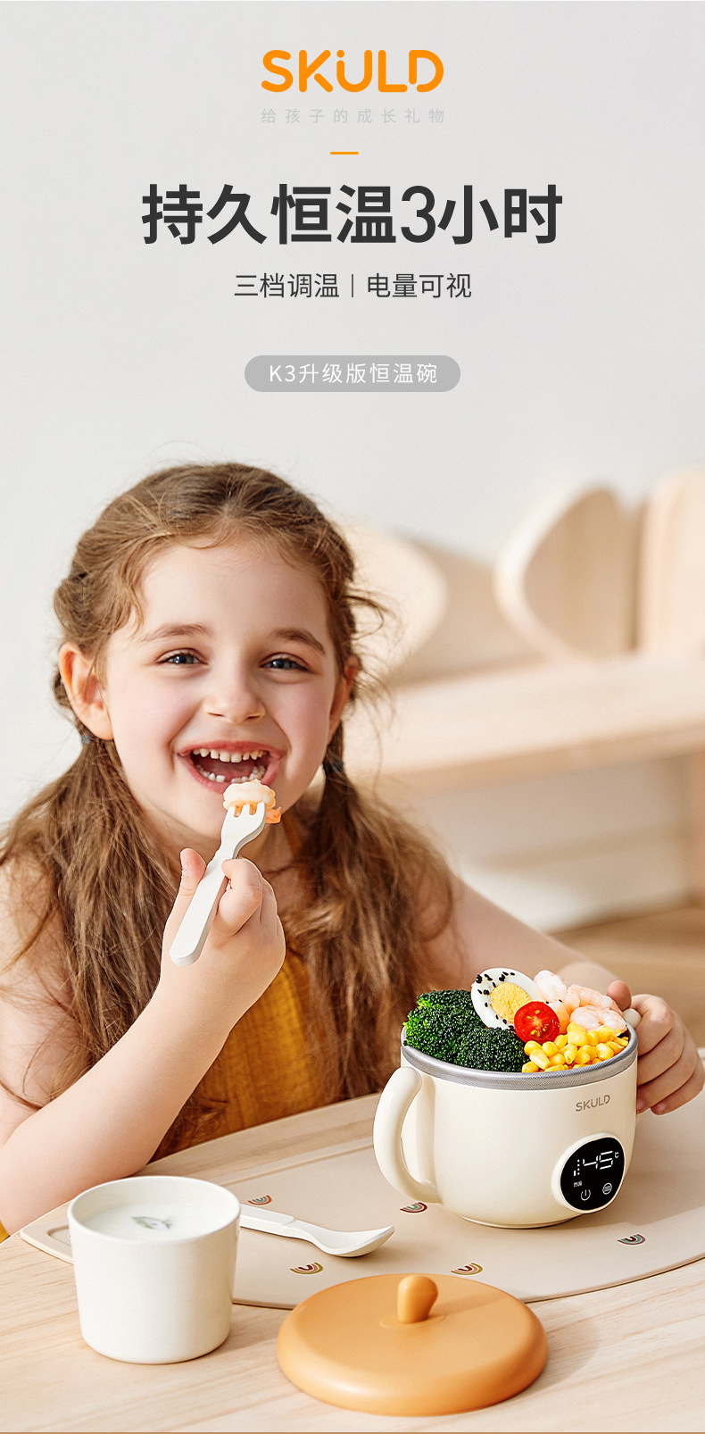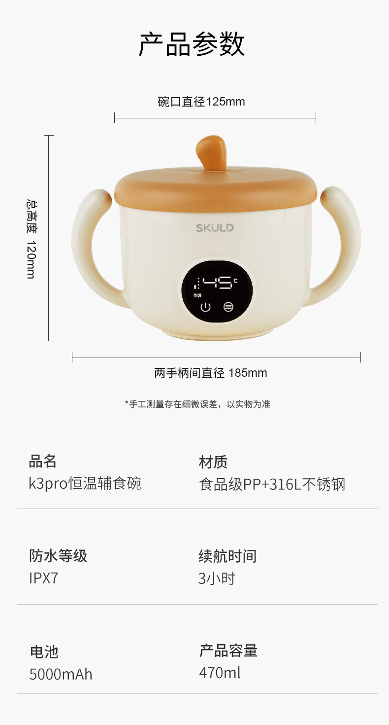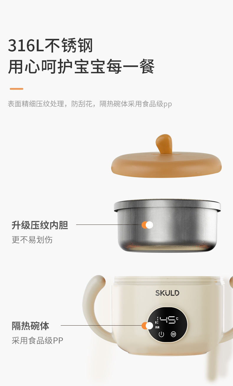 【免注水恒温碗】SKULD儿童恒温碗K3pro时蔻316不锈钢宝宝辅食碗婴幼儿非注水恒温碗防烫防摔餐具保温碗