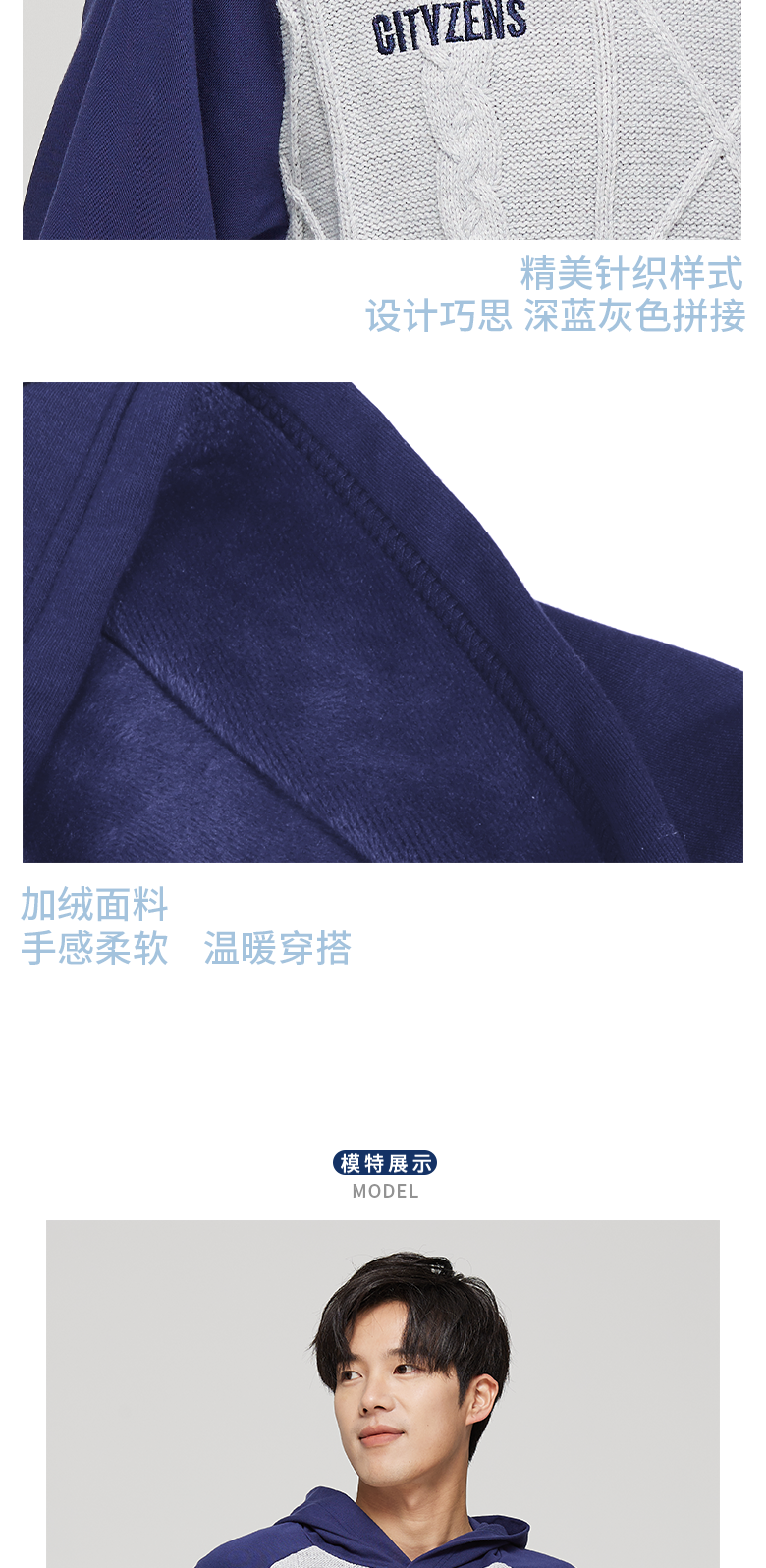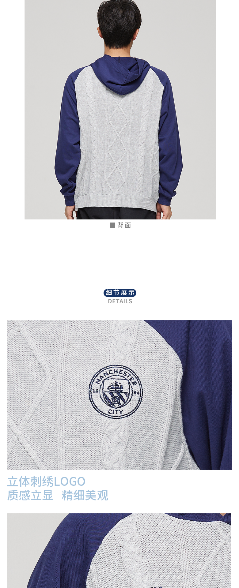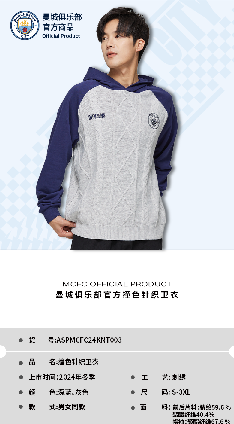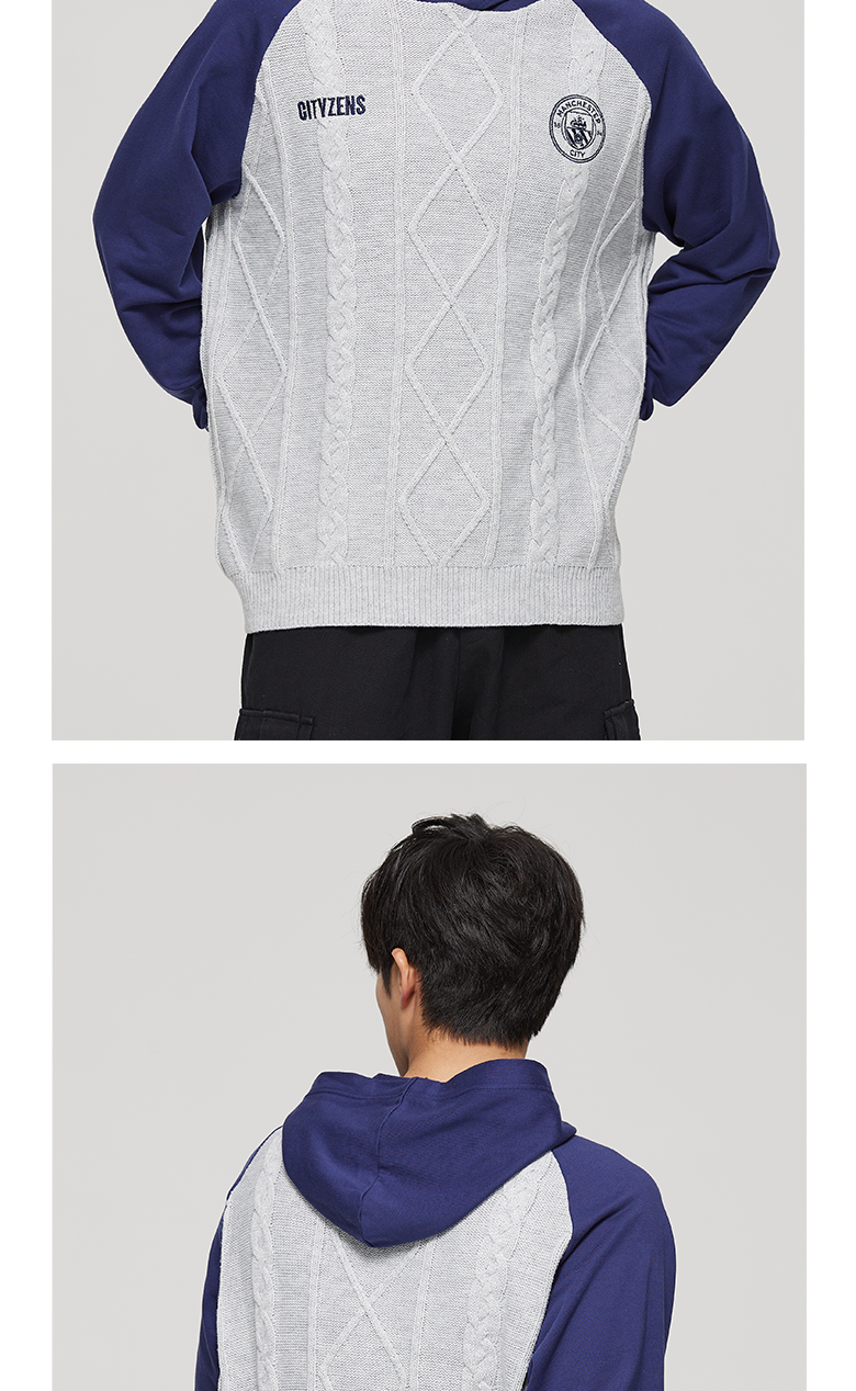 【官方正版】曼城俱乐部 | 撞色针织卫衣足球迷秋冬连帽衫保暖
