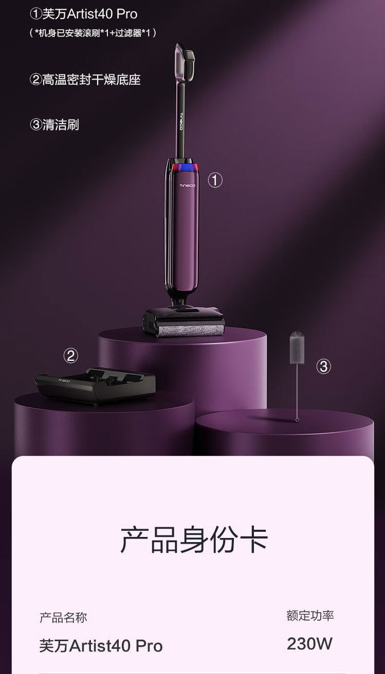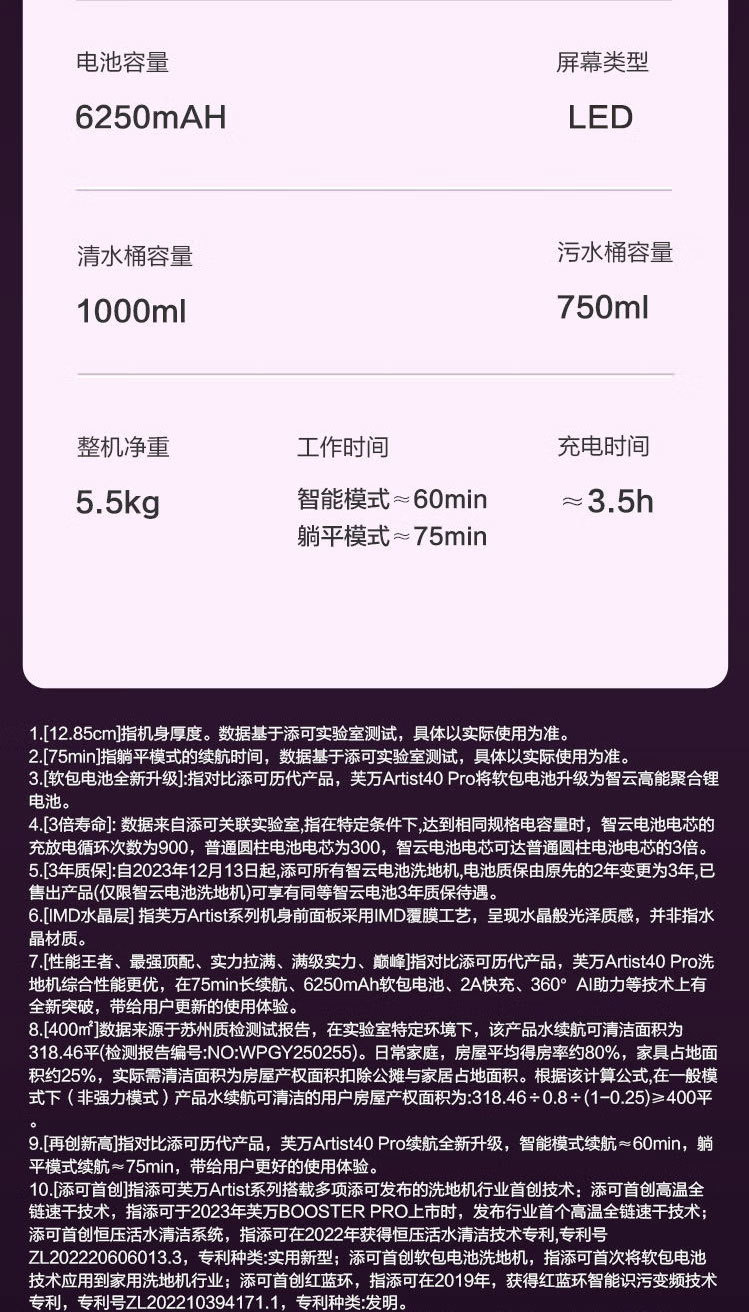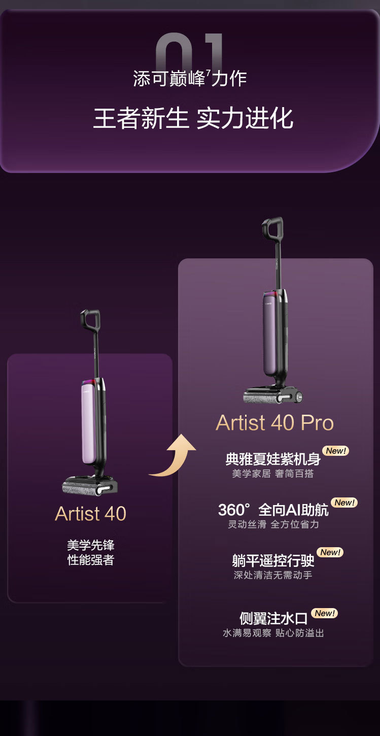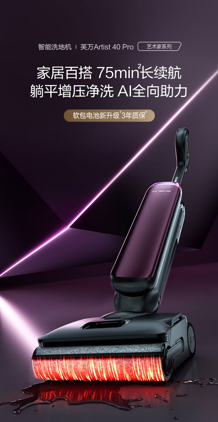 添可洗地机芙万Artist 40Pro 360°全向AI助力75min续航躺平0缠毛