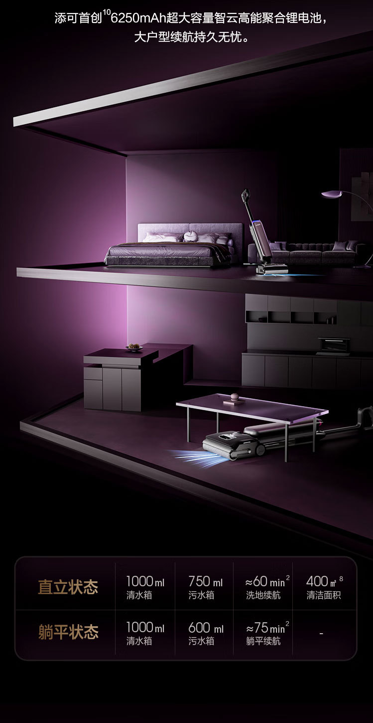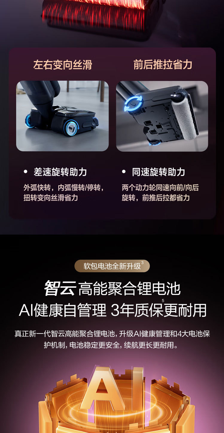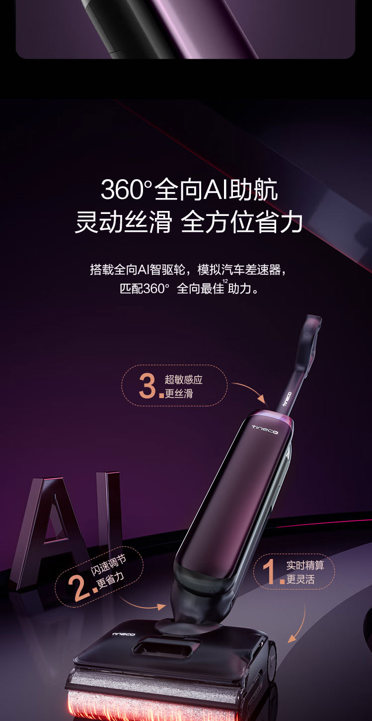 添可洗地机芙万Artist 40Pro 360°全向AI助力75min续航躺平0缠毛