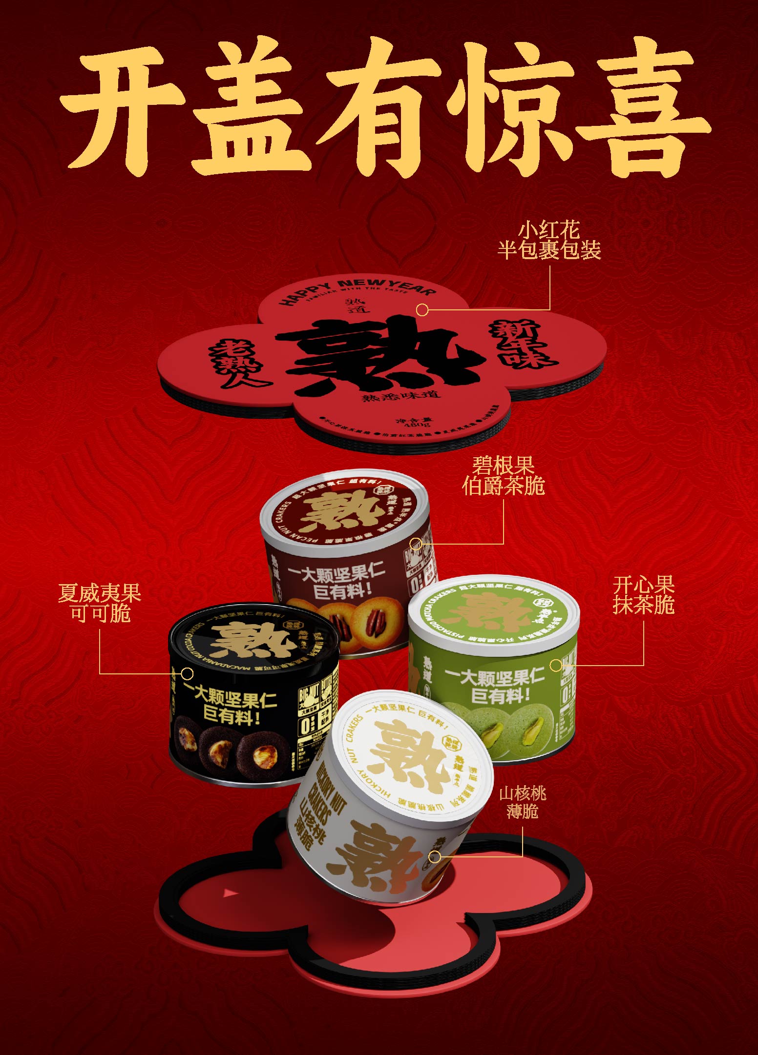 【熟半点坚果脆脆】 新年小红花礼盒 卖断货数十次的爆品小点心 配料表干净放心无香精/色素/防腐剂