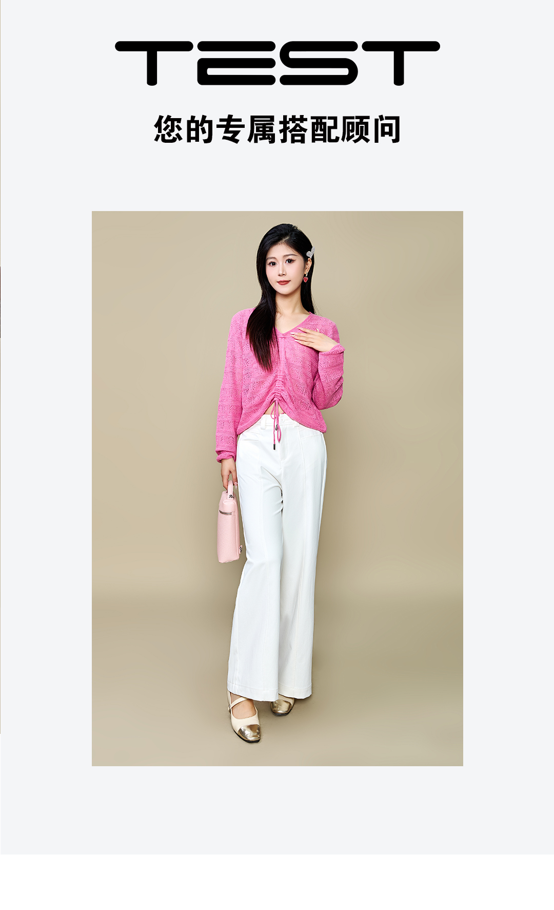 秋上新抽绳设计 V 领长袖宽松版型针织衫1253101
