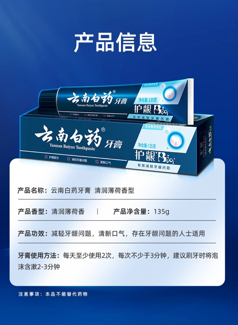 【白药精选】云南白药护龈BIO牙膏135g生物活性肽守护口腔健康减轻牙龈问题清新口气