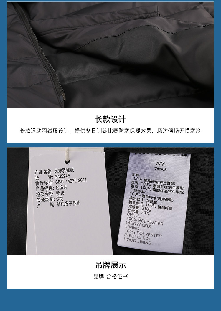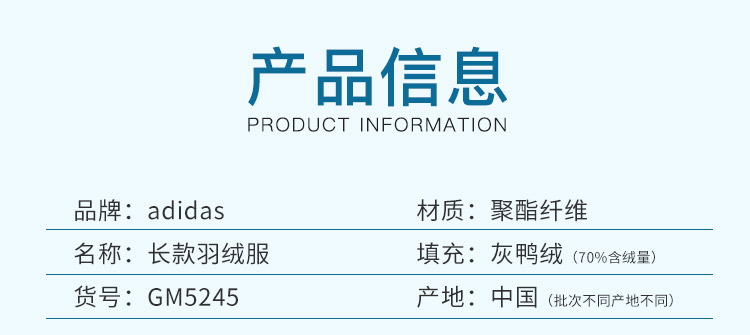 【3套以上,每满200减20】ADIDAS/阿迪达斯2020新款组队长款羽绒服GM5245