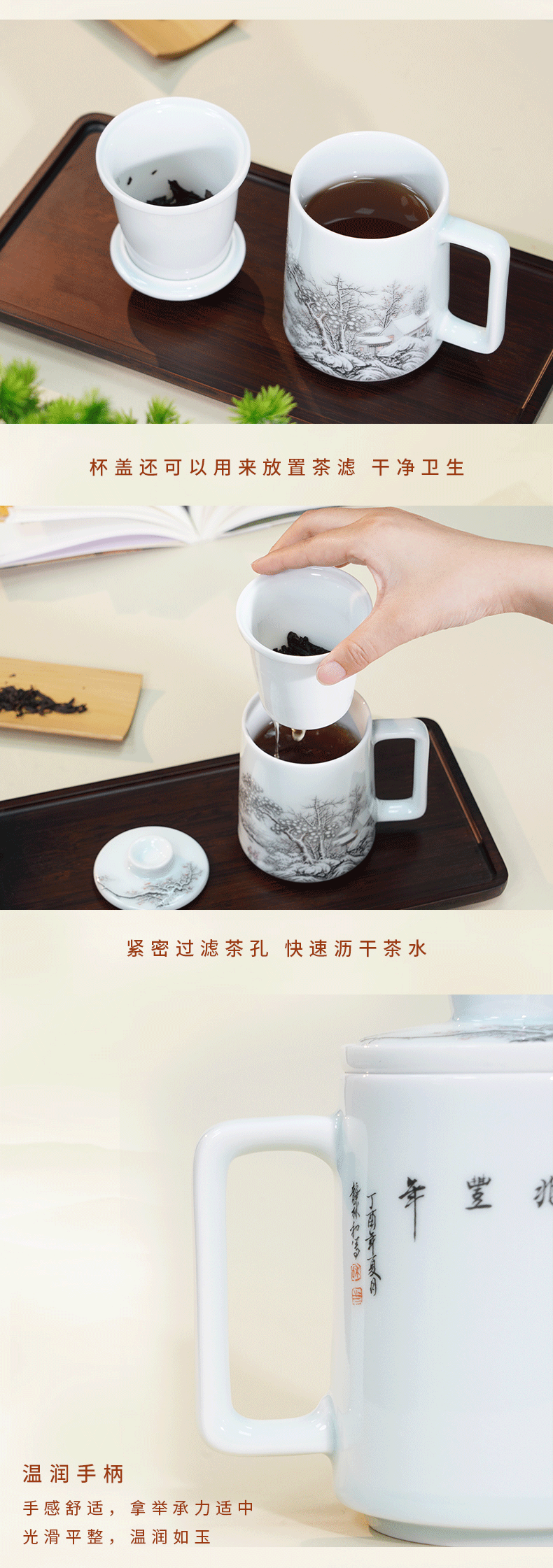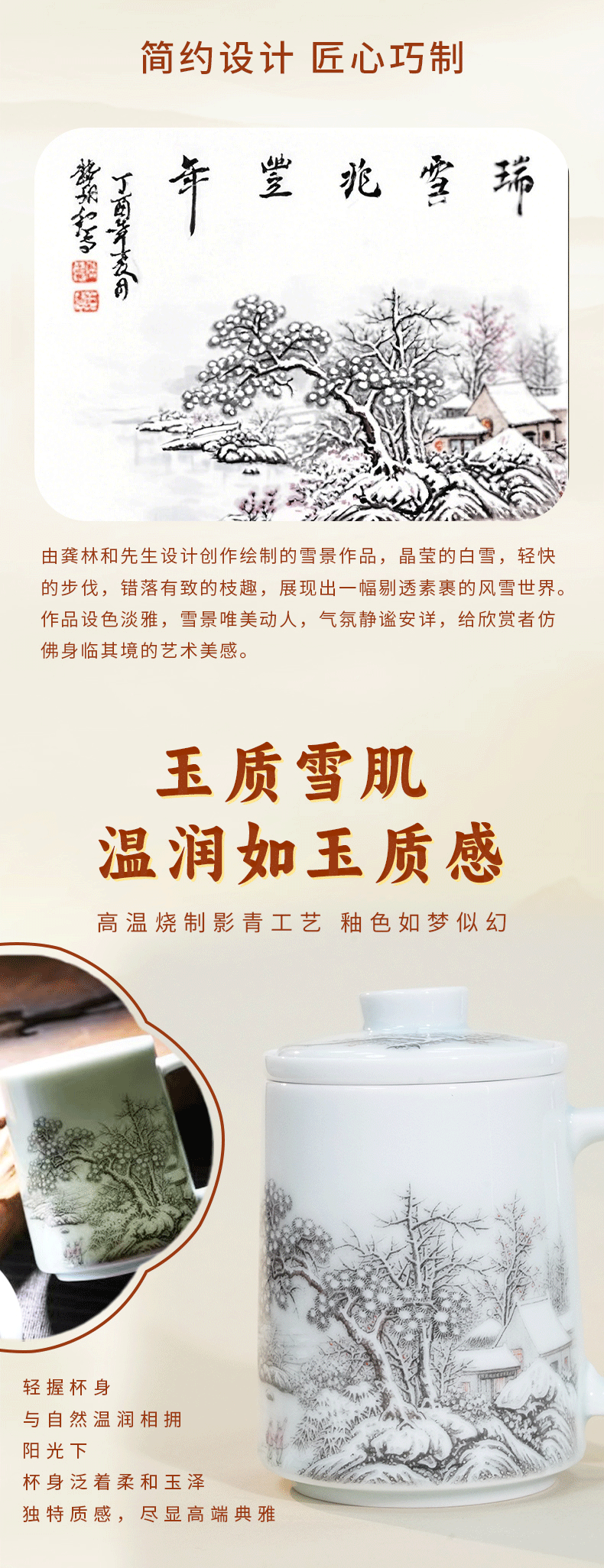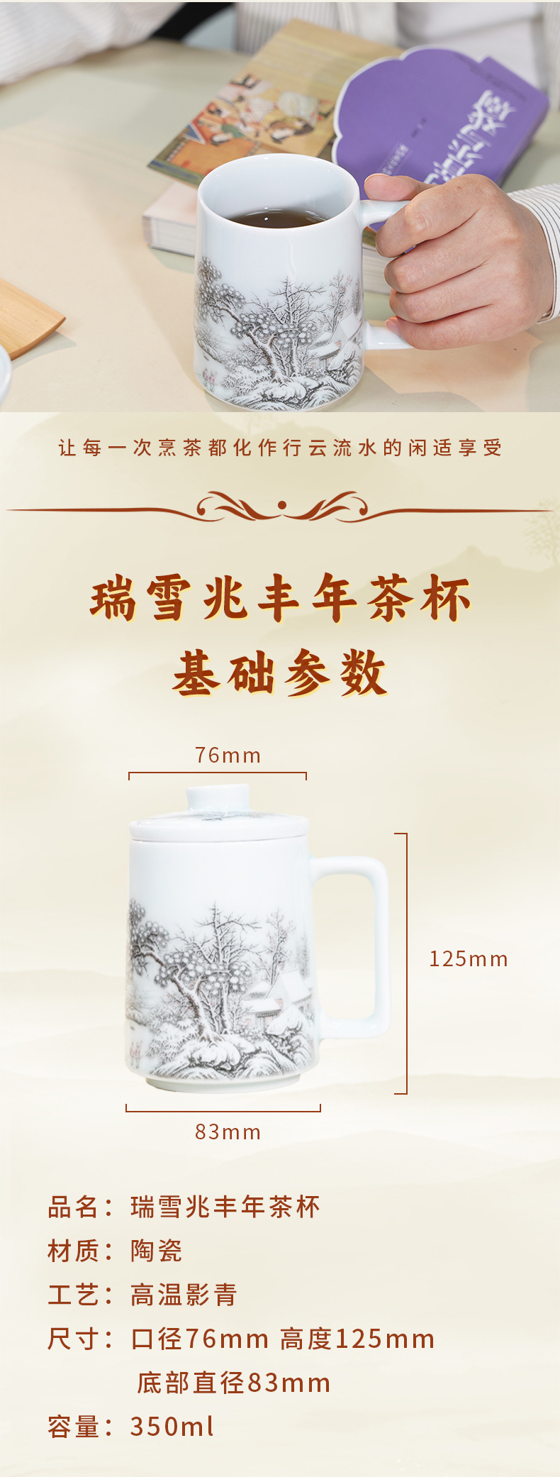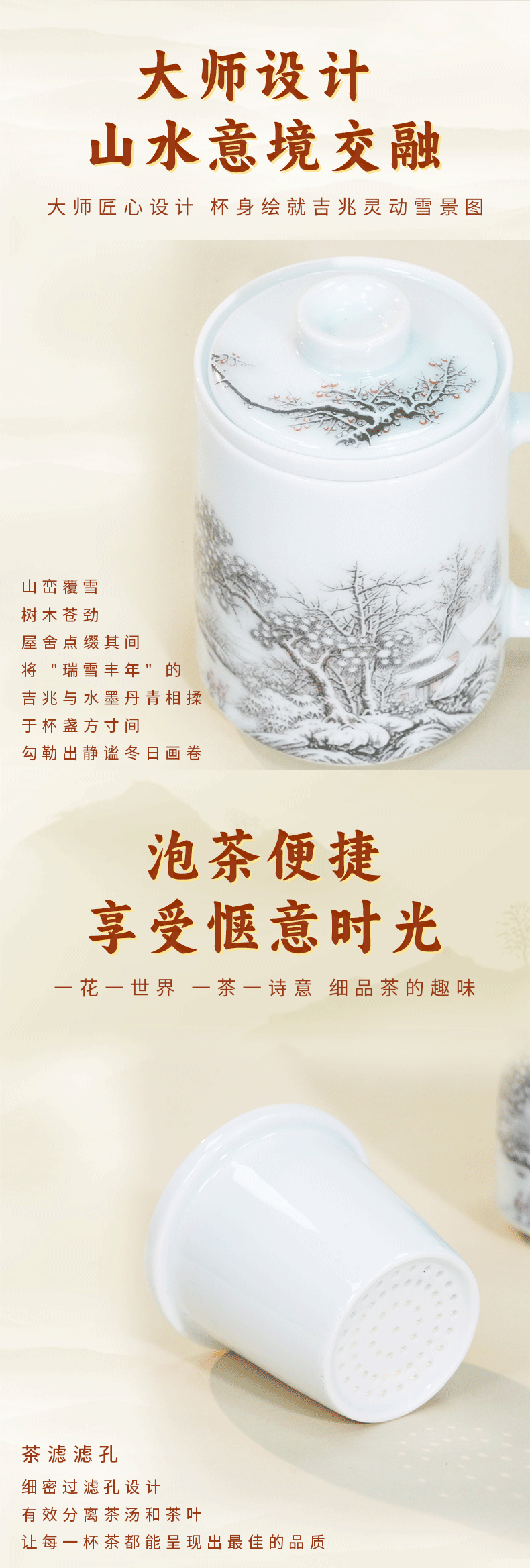 昌南大师景德镇陶瓷《瑞雪兆丰年》茶水分离杯