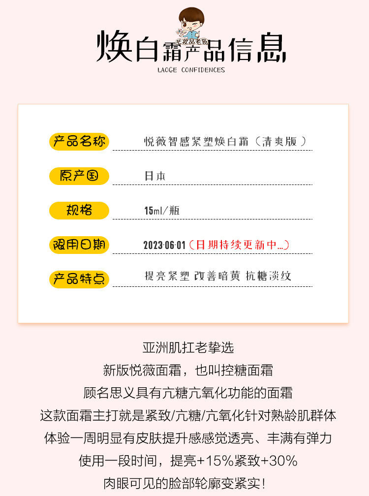 【爆款超低价预售 急单慎拍】资生堂悦薇智感焕白霜15ml控糖面霜补水紧致初抗老抗糖中小样
