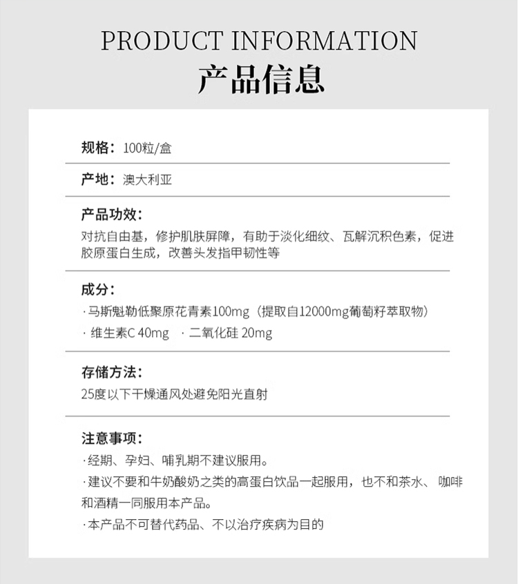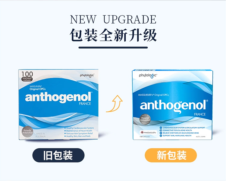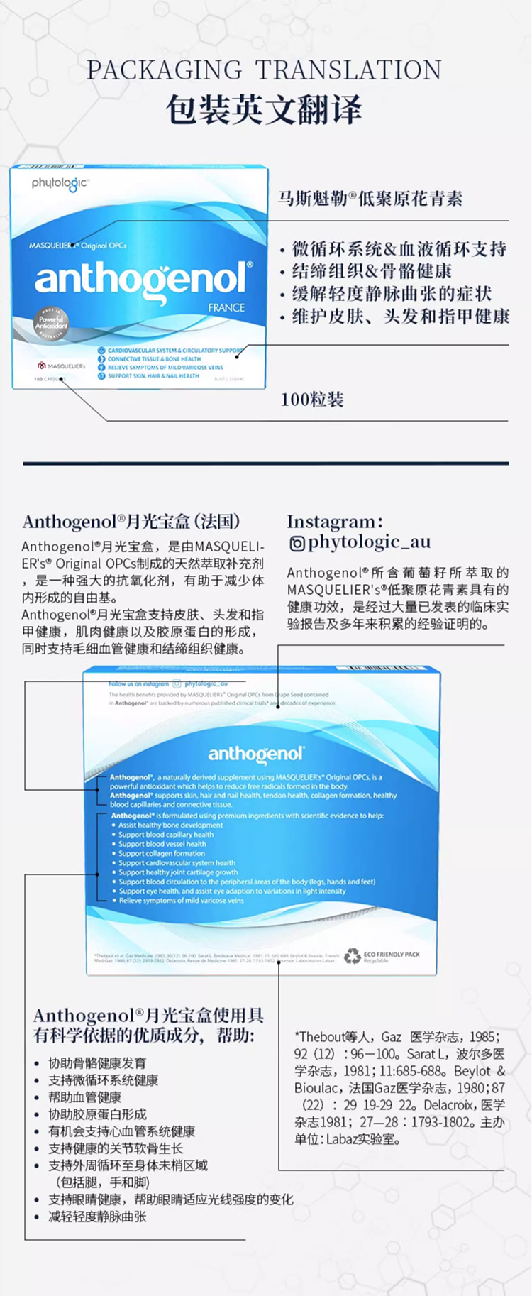 澳洲月光宝盒Anthogenol葡萄籽胶囊花青素氧化还原紧致100粒
