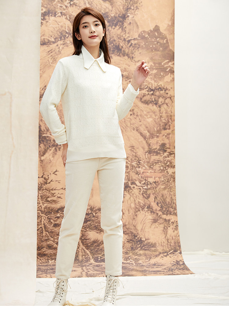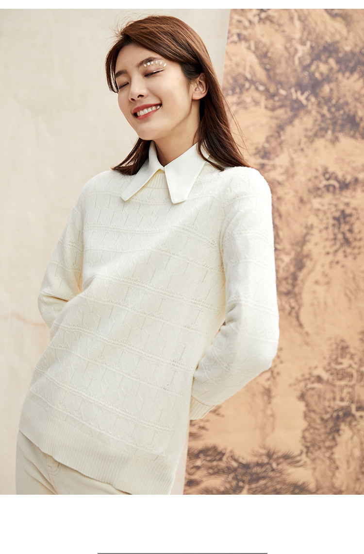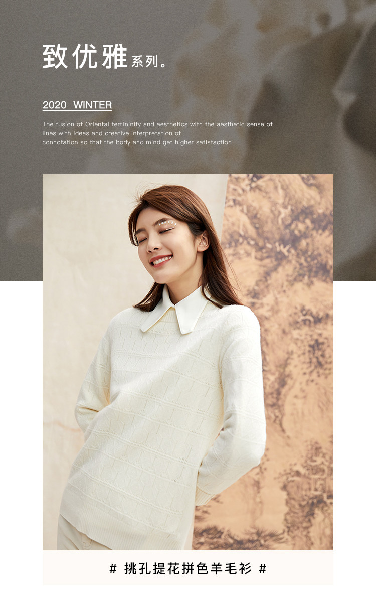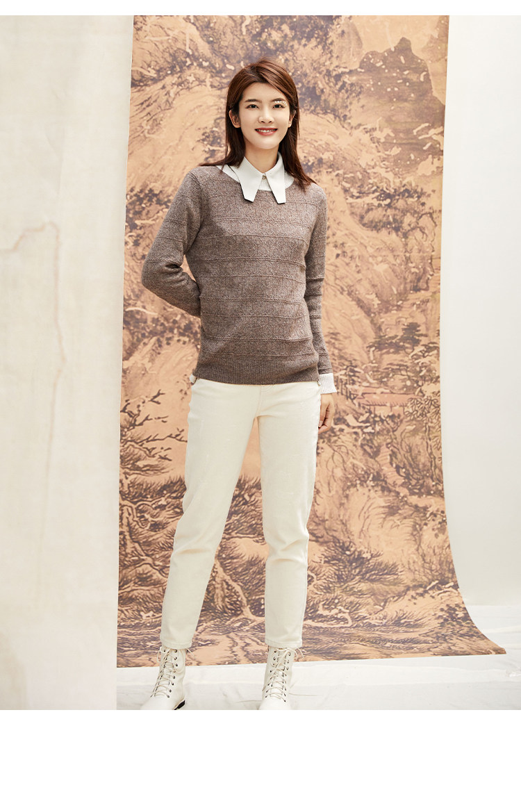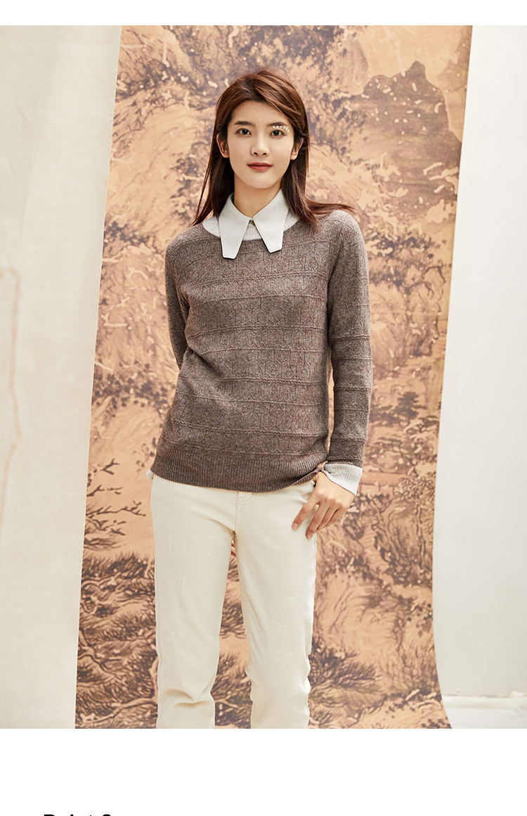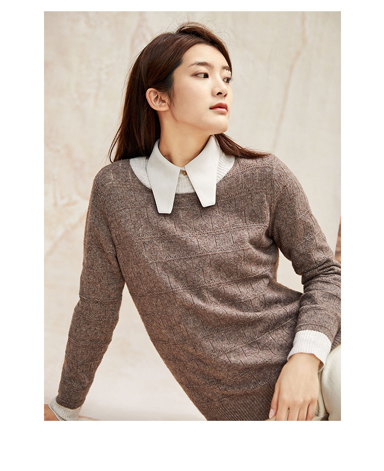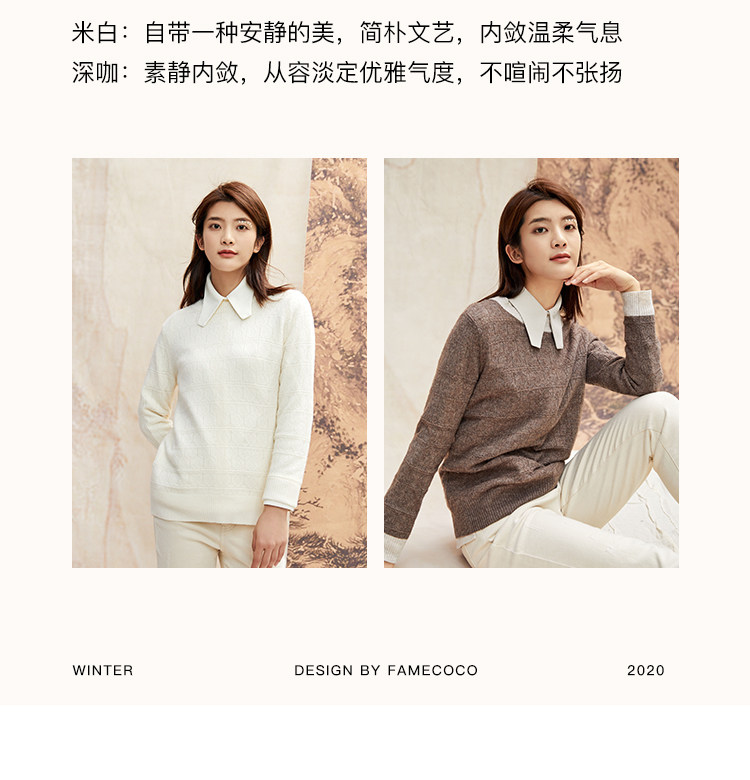 Famecoco范可儿复古毛衣女秋冬外穿森系套头针织衫F208DB017