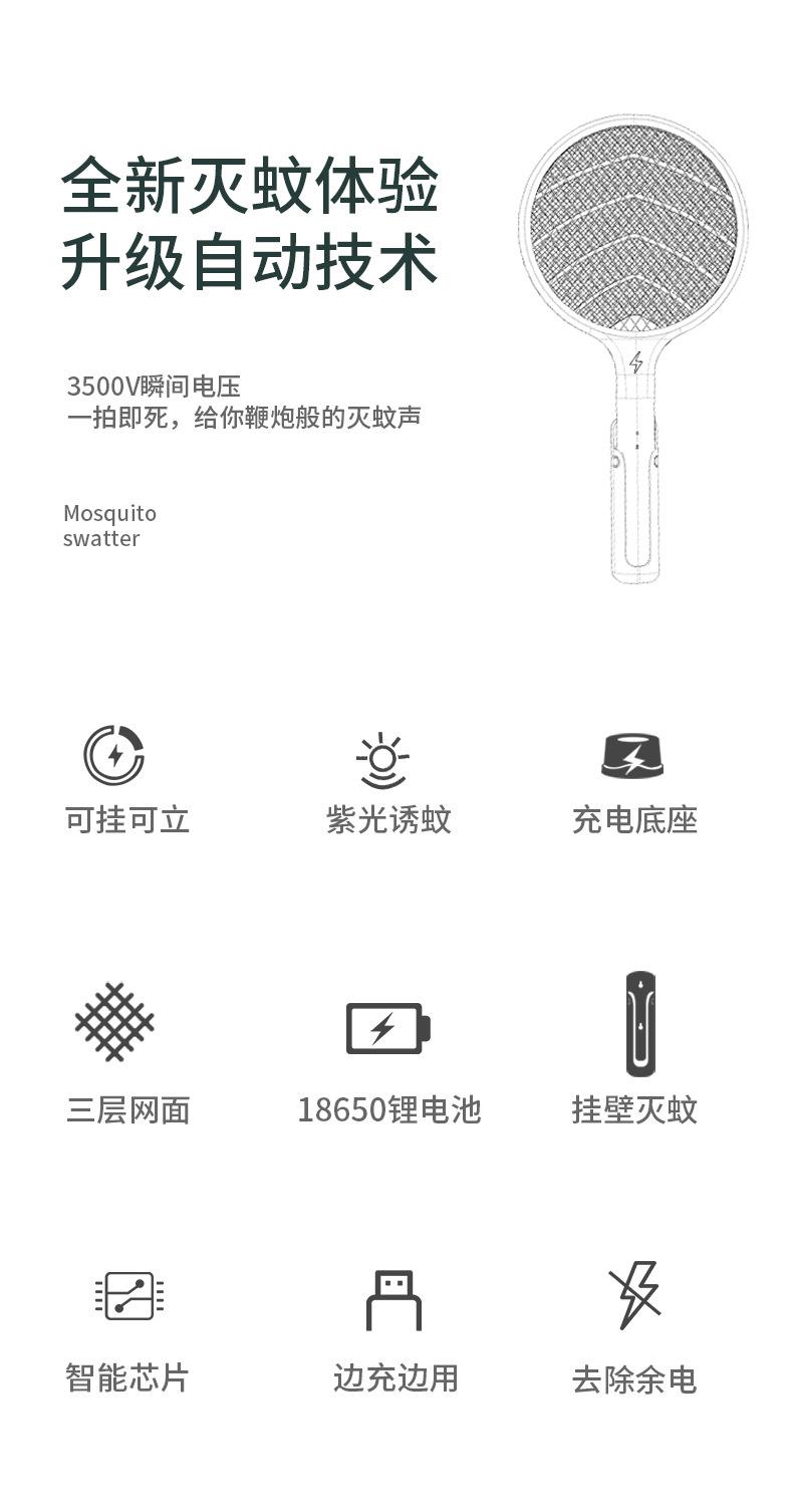 新款鸟笼灭蚊灯电击式灭蚊拍二合一充电家用电蚊拍驱蚊器驱蚊液机