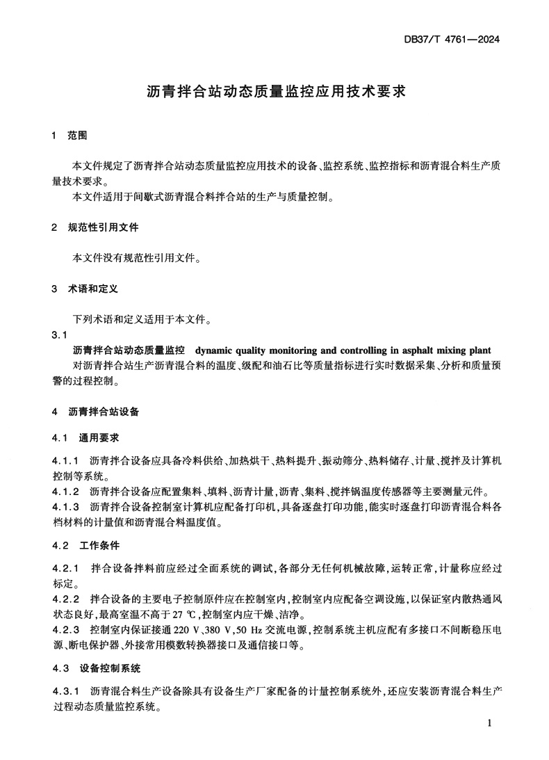 沥青拌合站动态质量监控应用技术要求