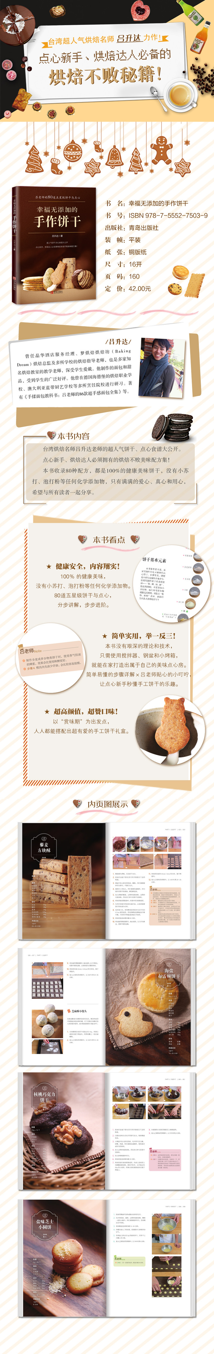 本书没有艰深的理论和技术,只有美味健康和幸福烘焙。制作饼干时,我们不能想着如果失败了怎么办?而是要想想家人吃到饼干时的笑容!