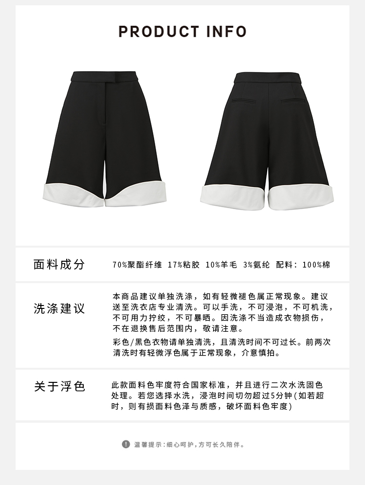 HIDEMI 黑白拼接双面极简设计感宽腿短裤