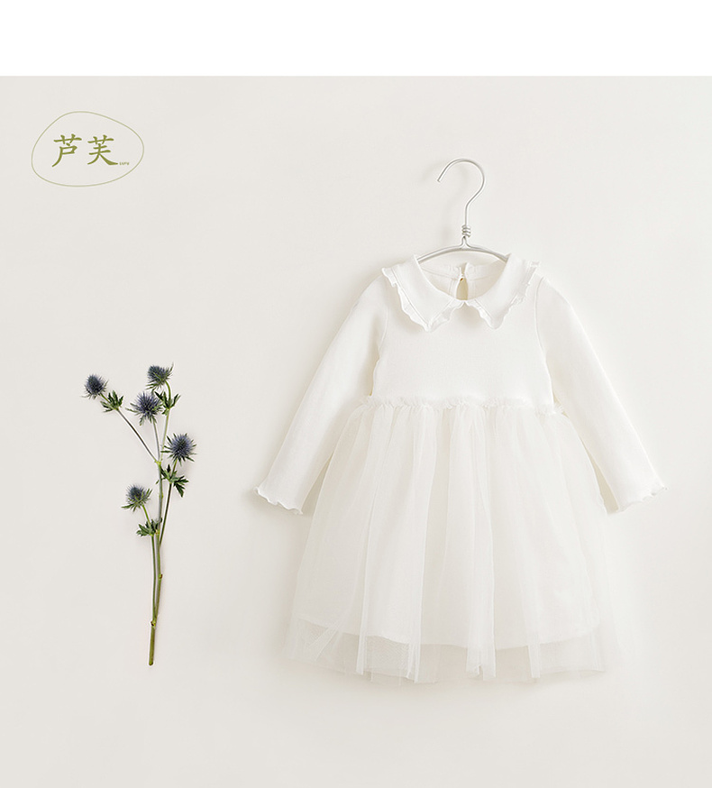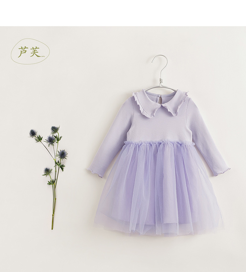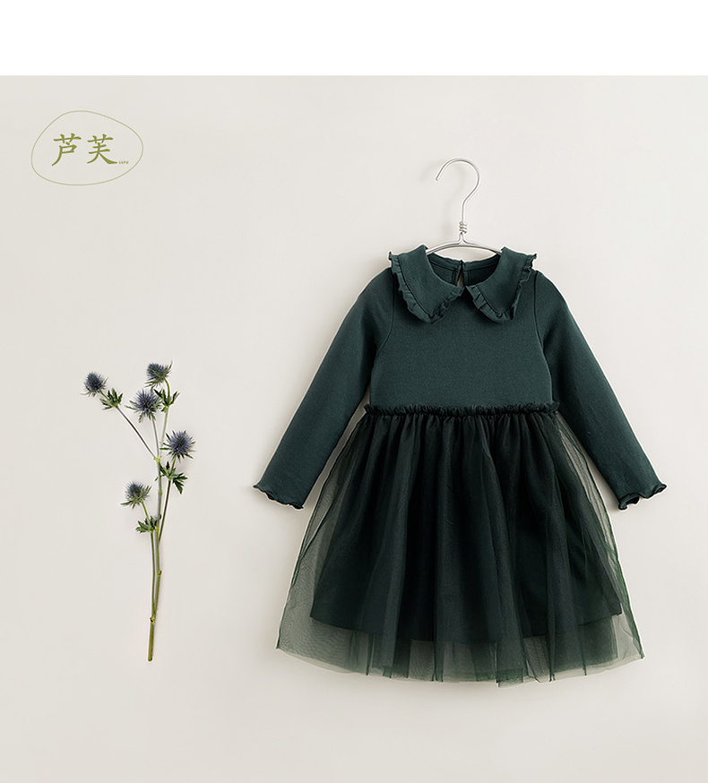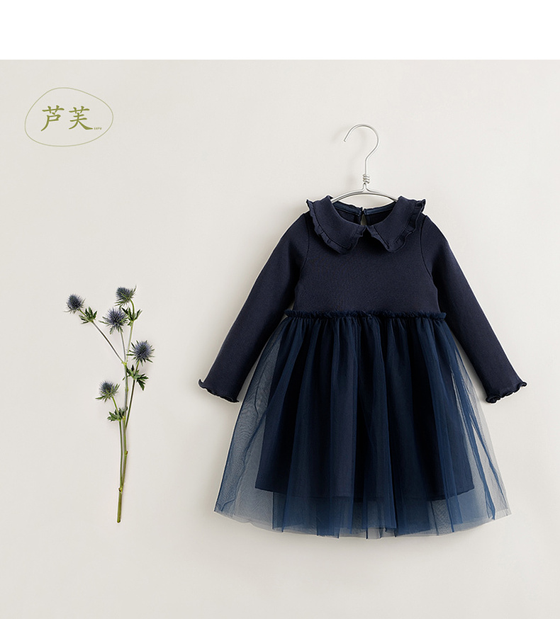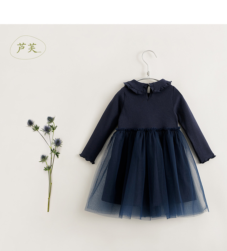 【马克珍妮 芦芙】秋装新款 花边翻领拼接网纱连衣裙231702