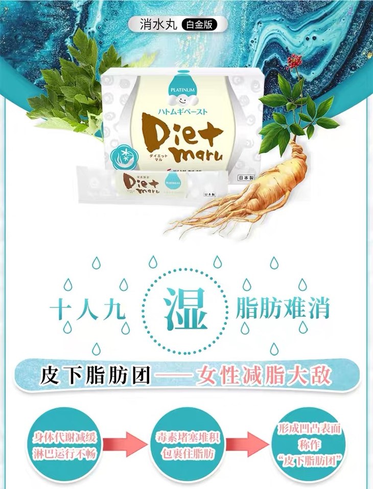 日本Dietmaru消水丸白金版 去水肿腿脸部神器薏苡仁进口 荣进制药