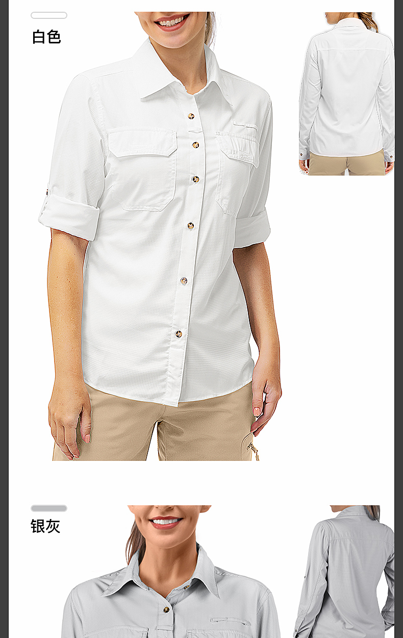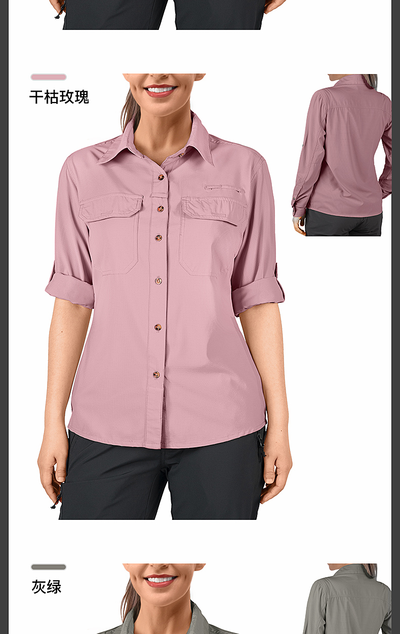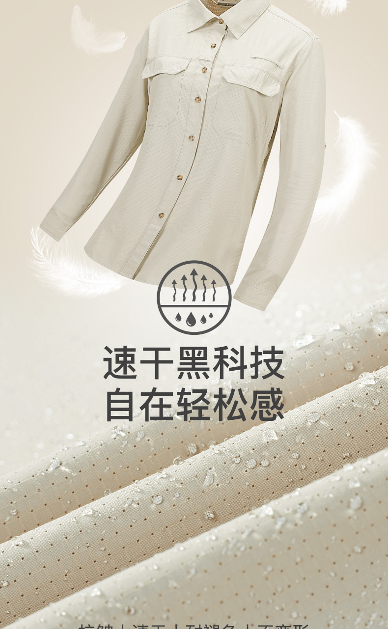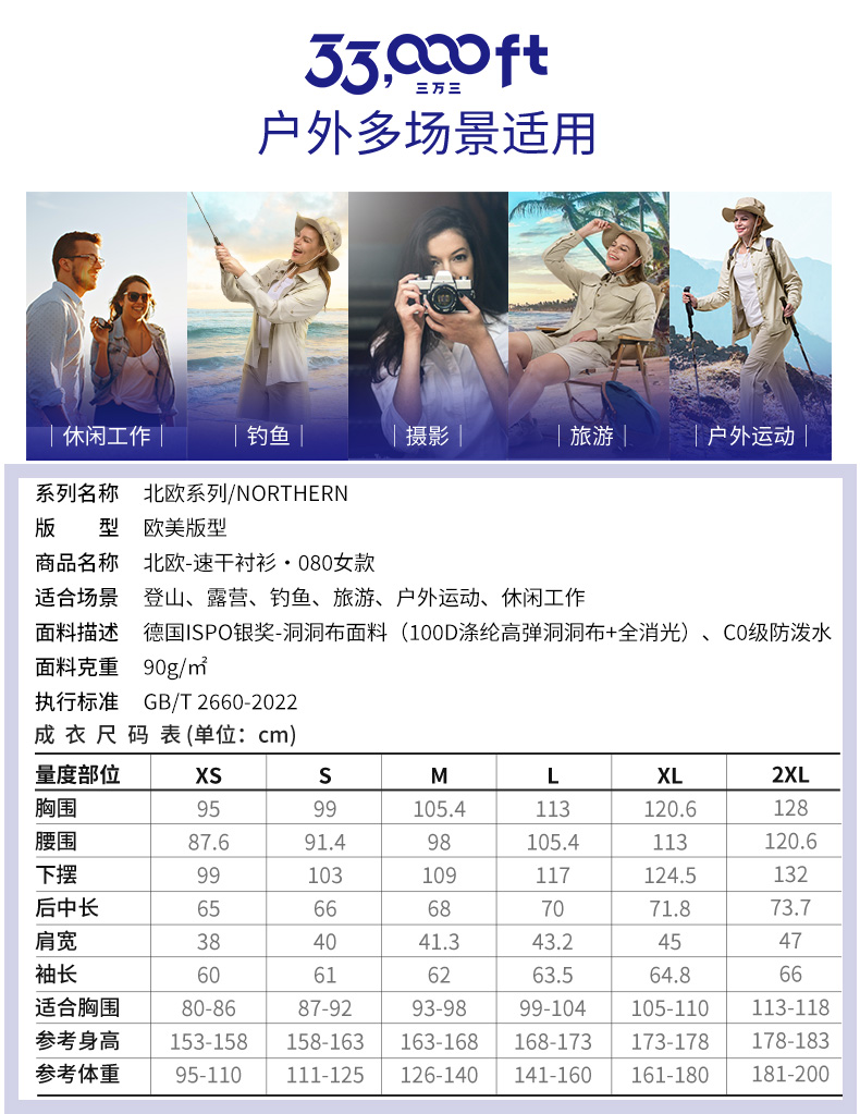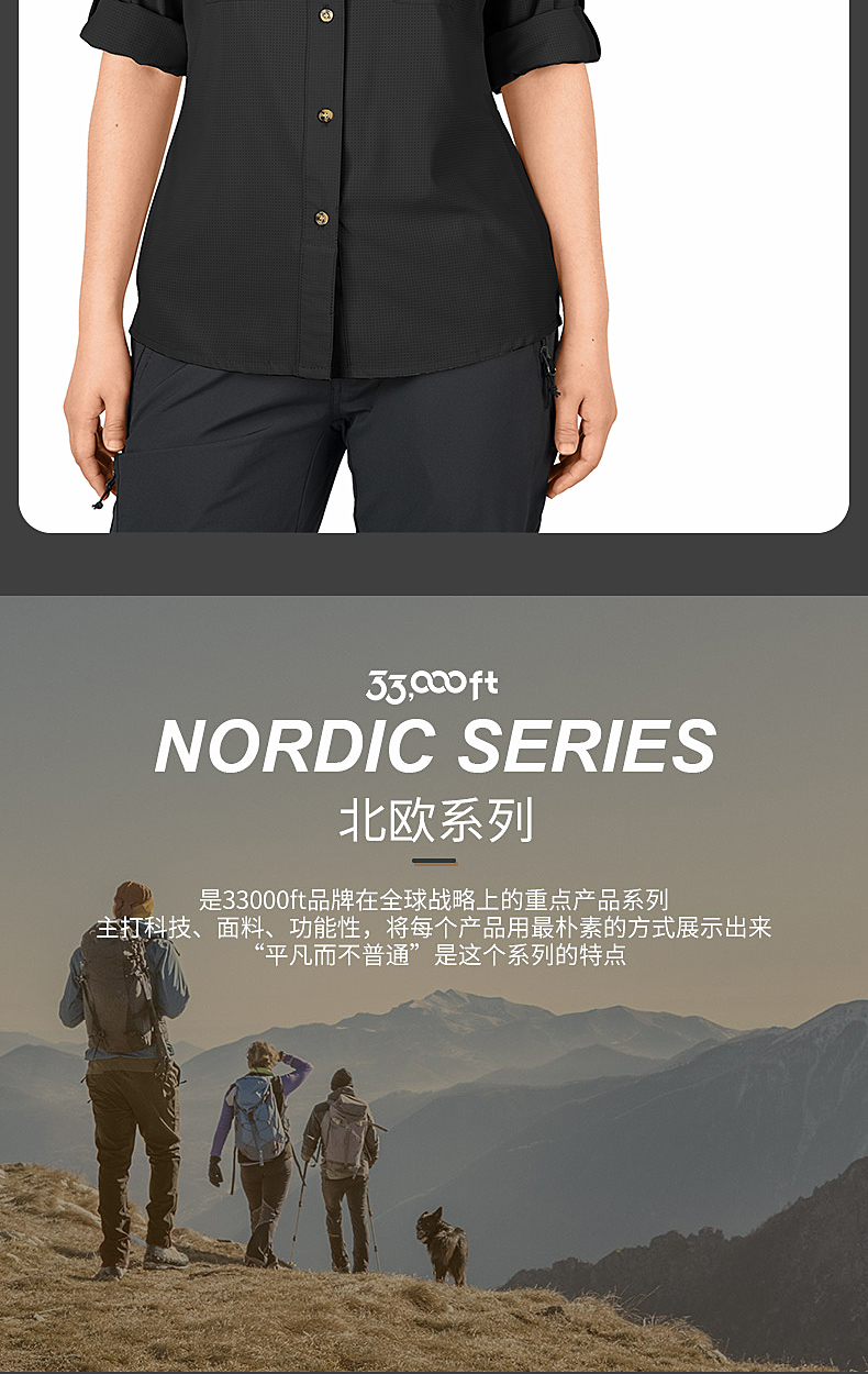 33000ft北欧户外速干衬衫女高透气徒步登山夏季长袖衬衣凉感大码