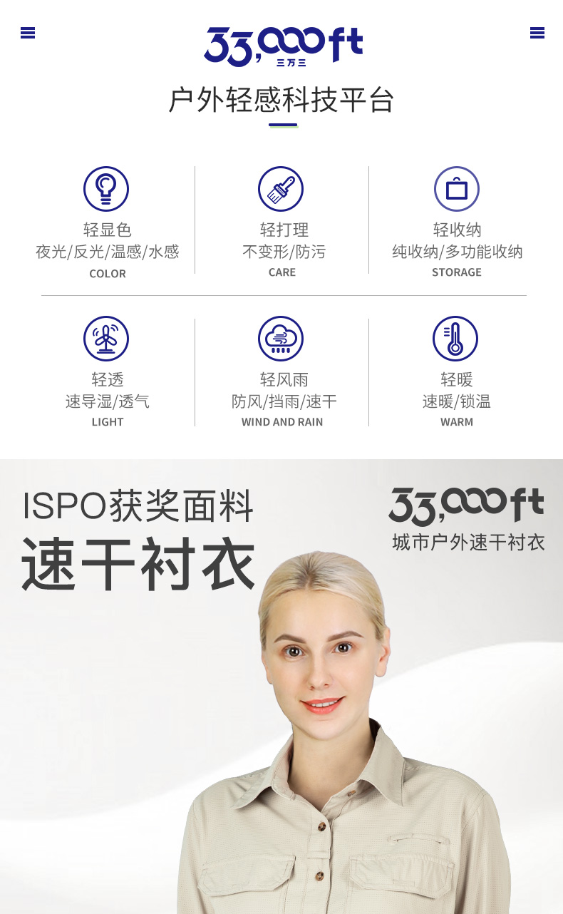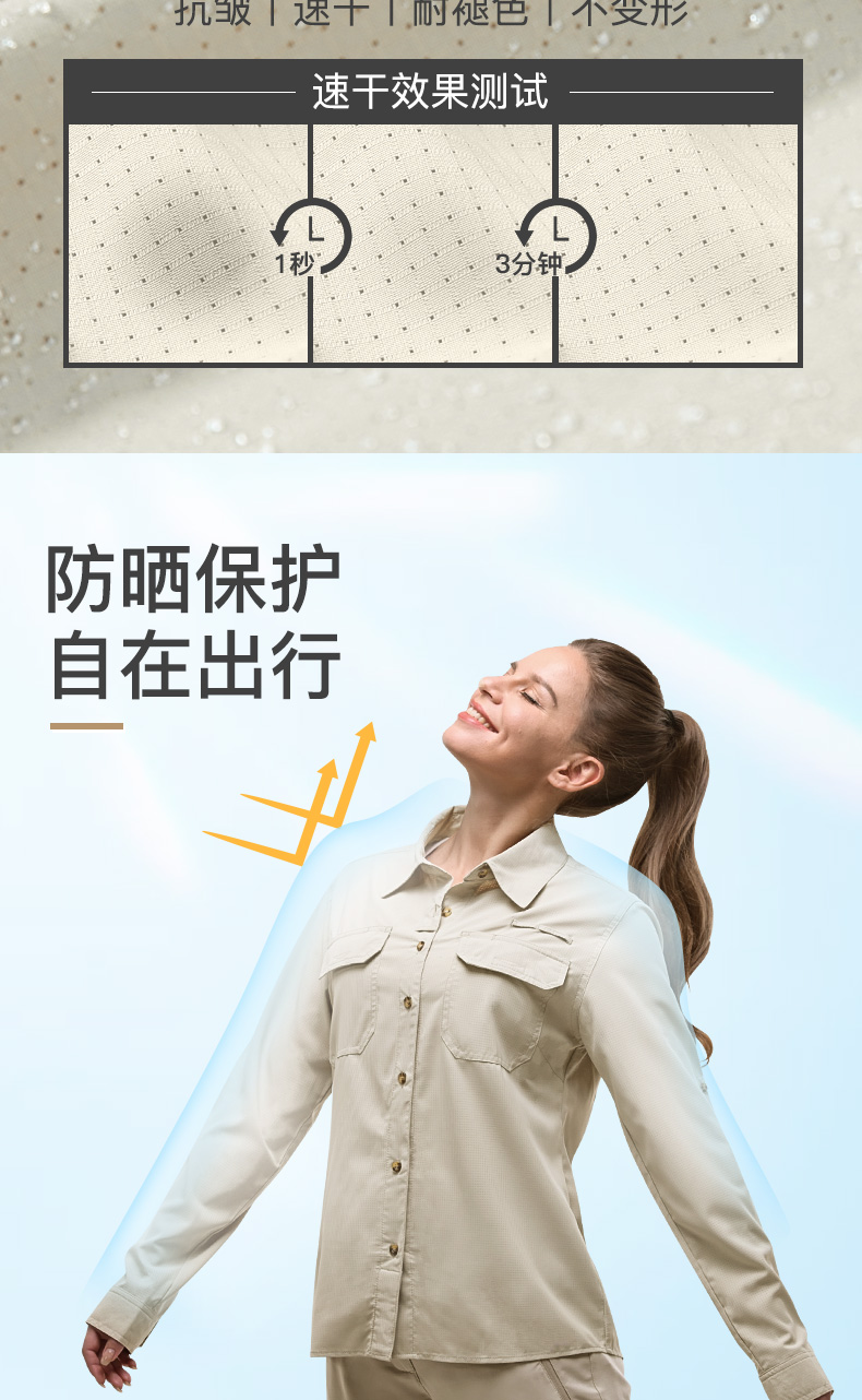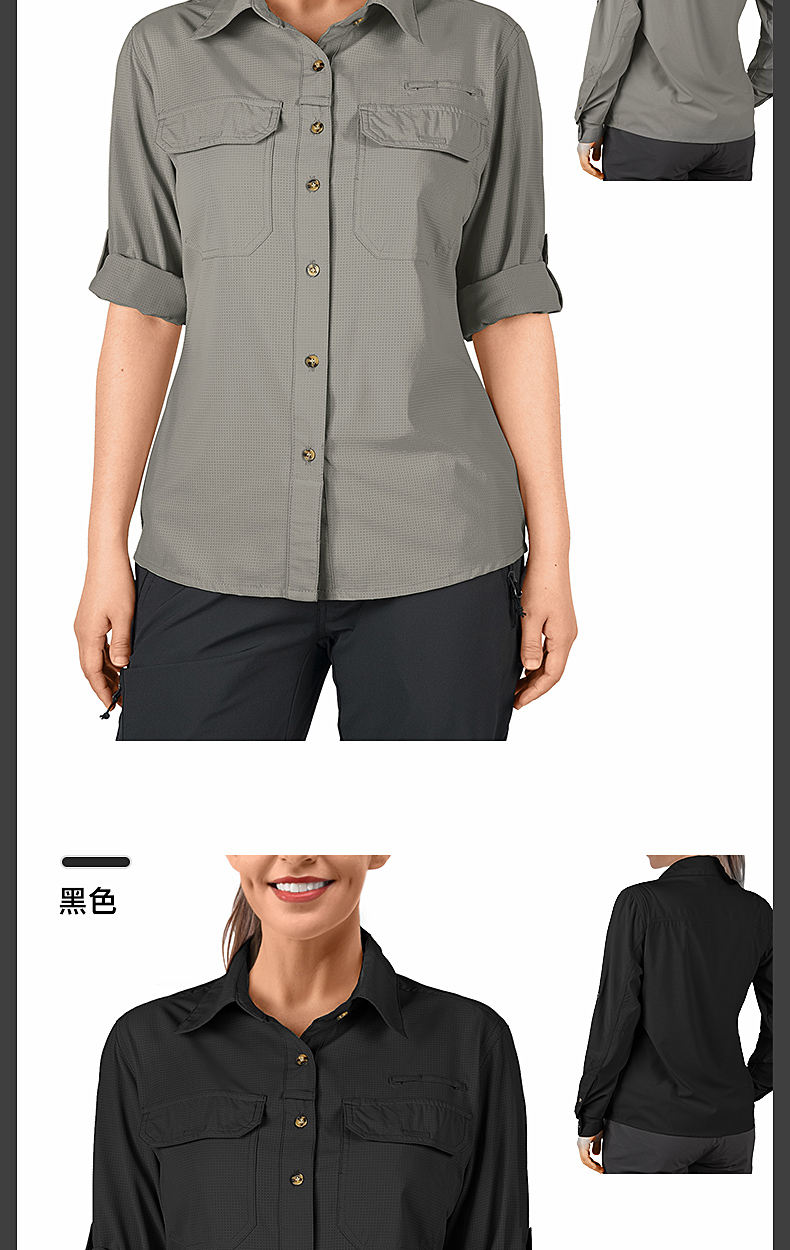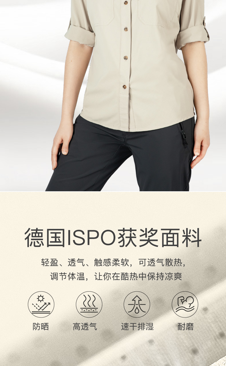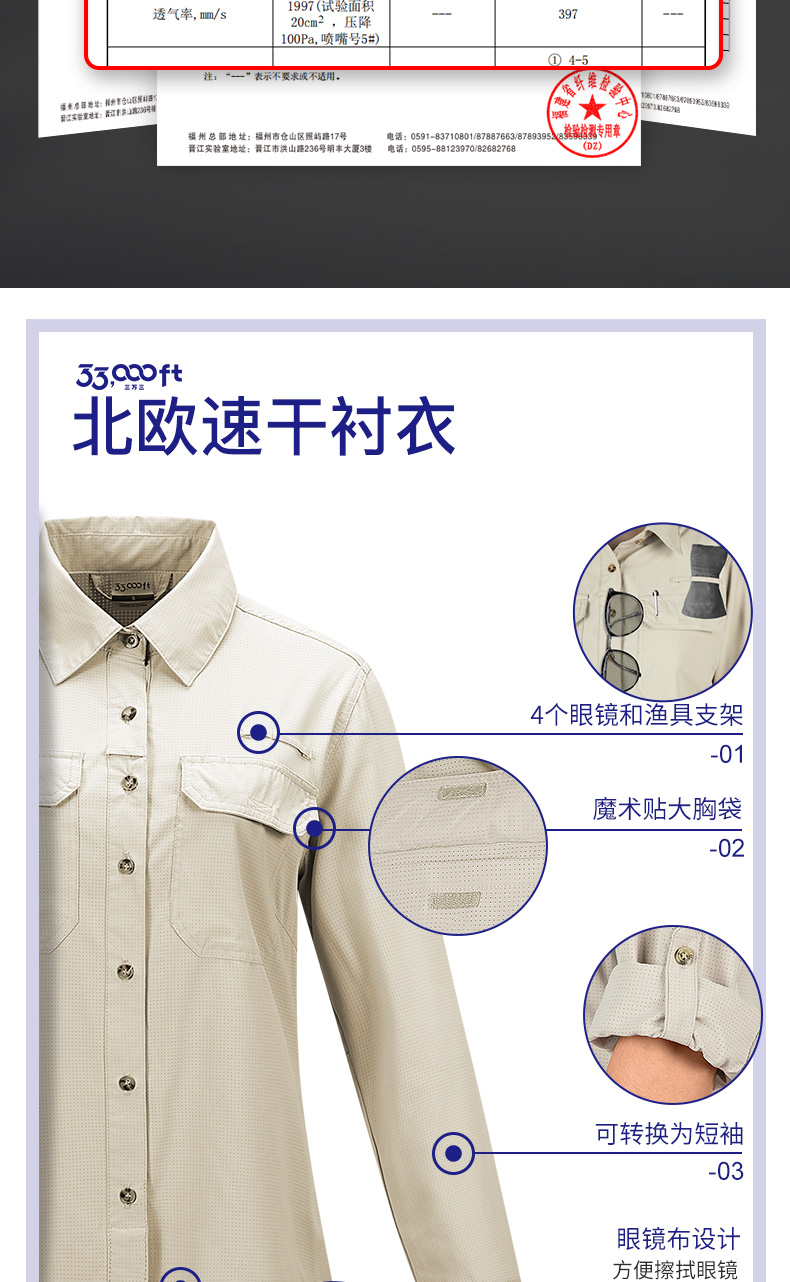 33000ft北欧户外速干衬衫女高透气徒步登山夏季长袖衬衣凉感大码