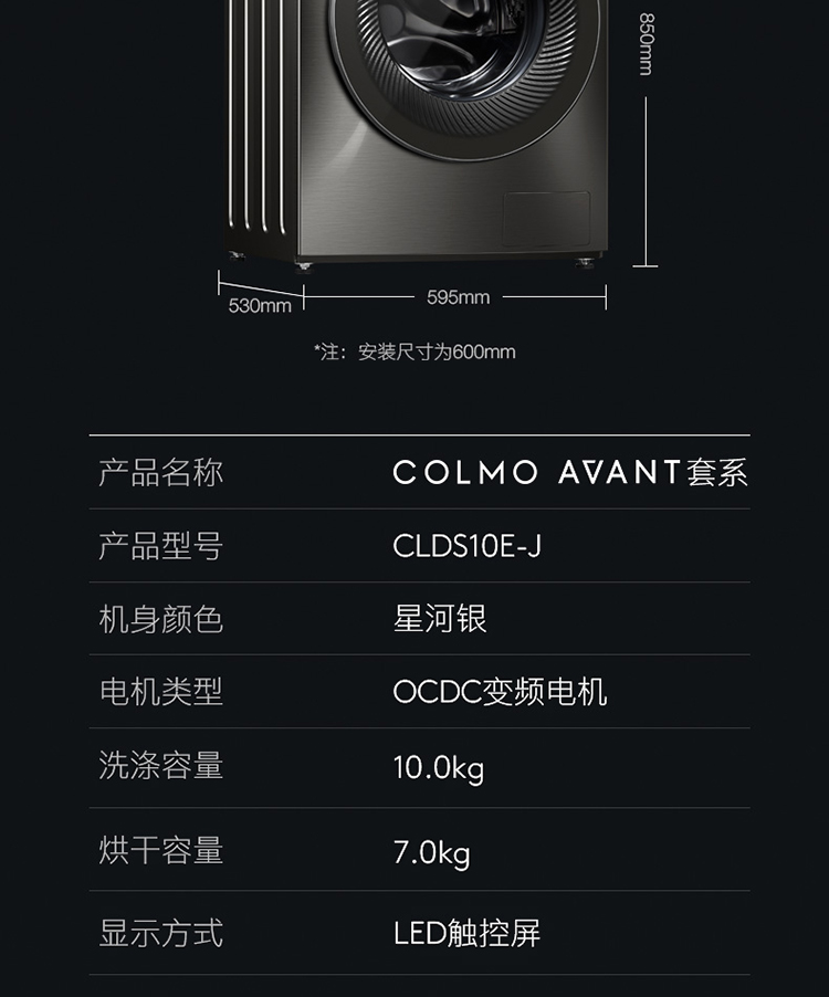 COLMO 滚筒洗衣机全自动 洗烘一体机 10公斤大容量 AI鸿蒙双智控 智投放 智能家电 晖月系列 CLDS10E-J