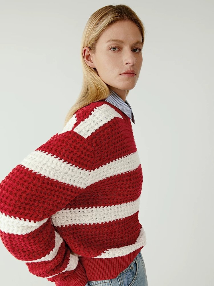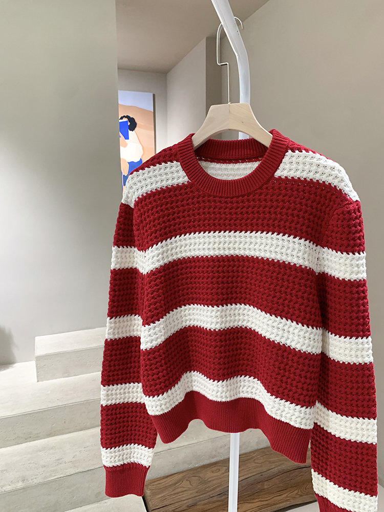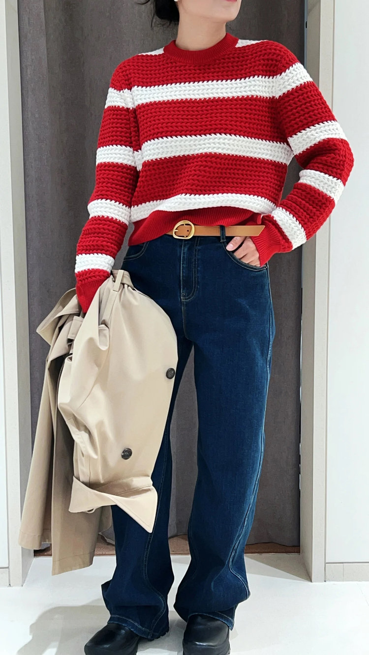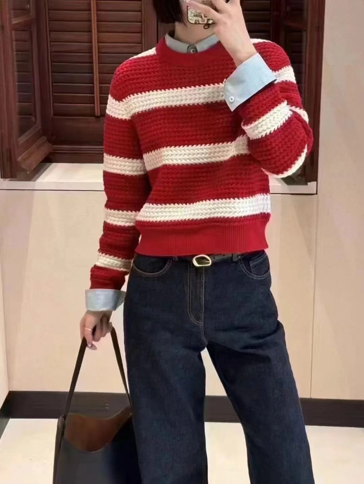 【高品质私服】【IC棉羊绒条纹套头针织衫】利落线条勾勒慵懒随性的廓形,自带复古法式风情G1268-CC【无标出货 介意慎拍】