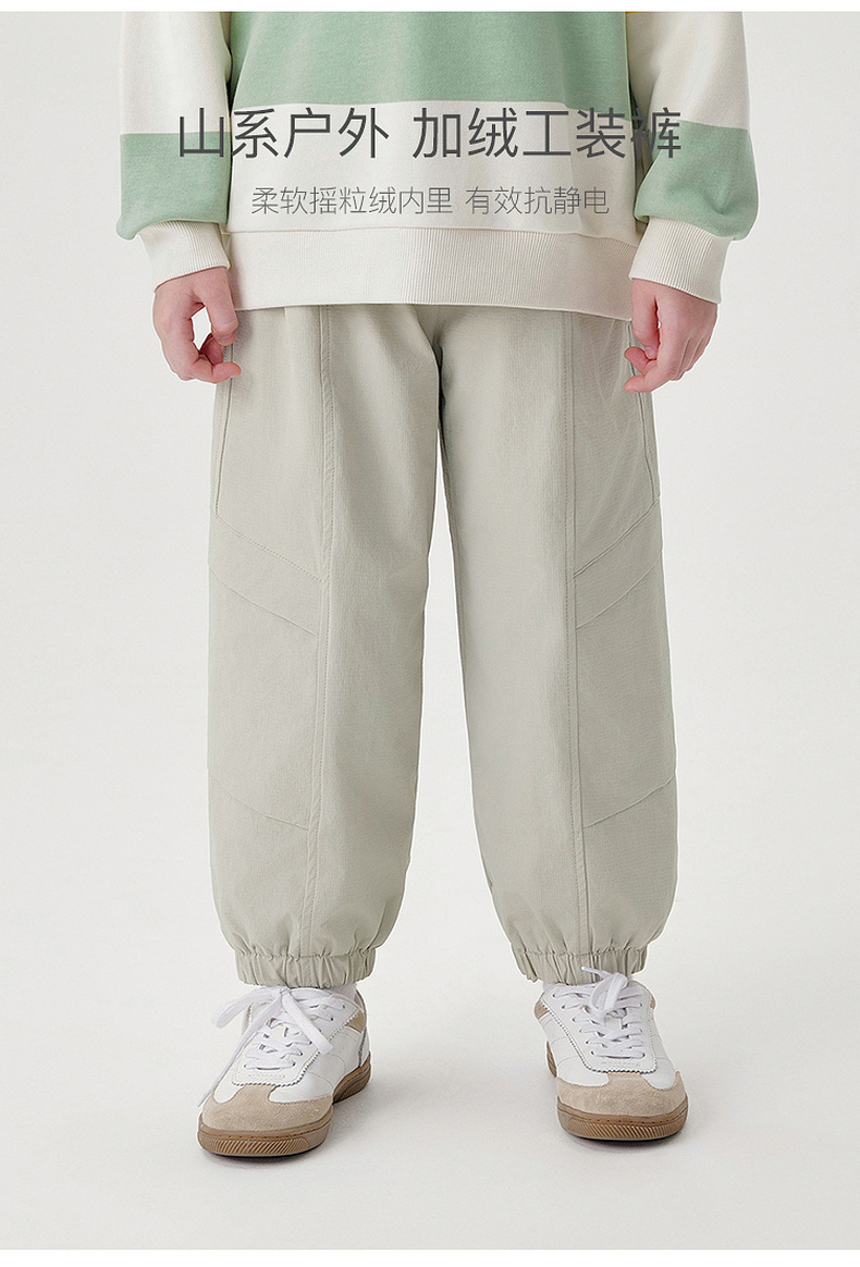 马克珍妮男童拼接线条加绒工装裤2024年秋冬新款241251