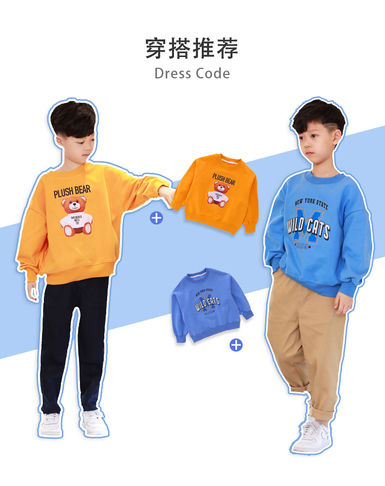 【特价清仓】龙之涵 中国风兔年圆领卫衣 中大童加绒保暖上衣 婴幼儿A类标准